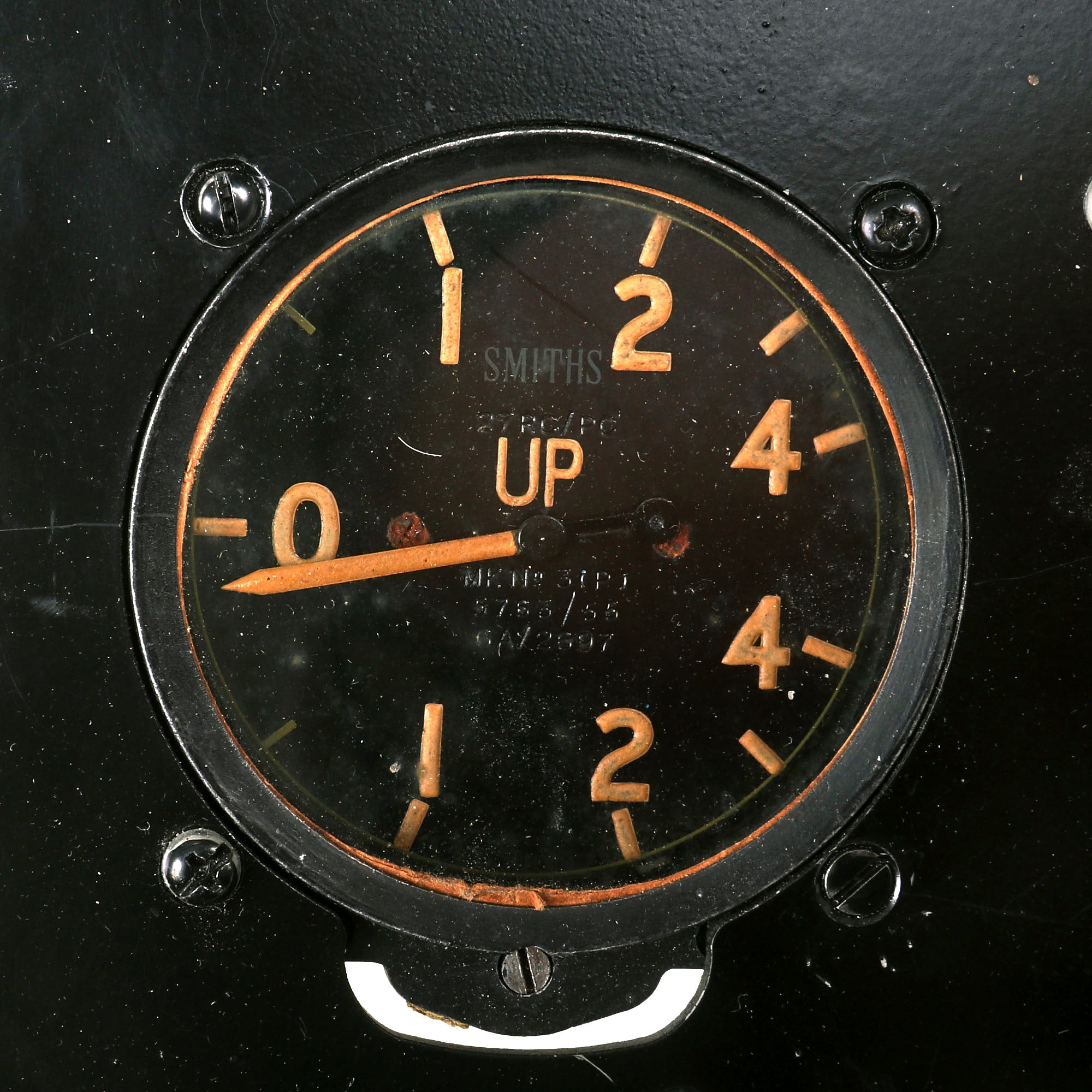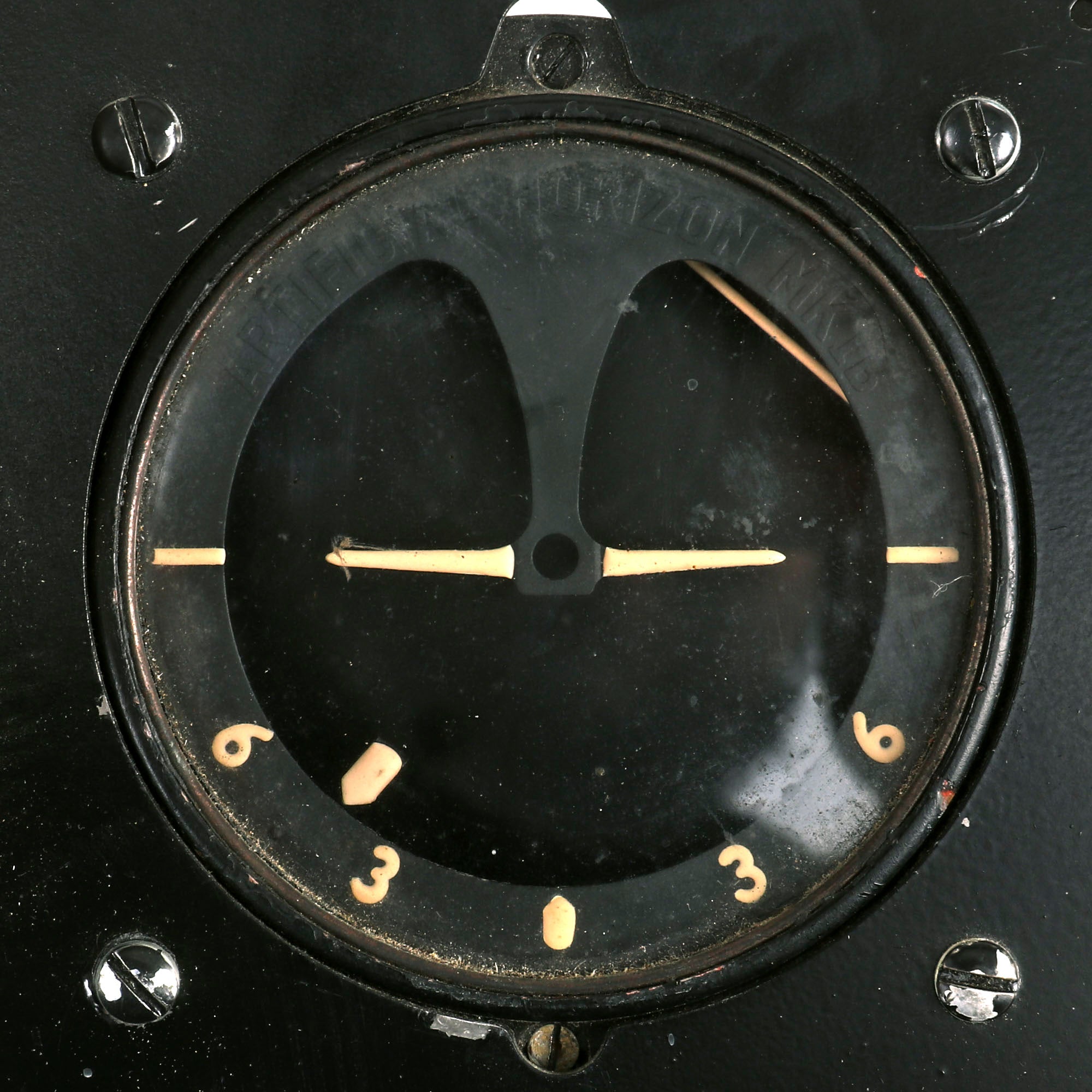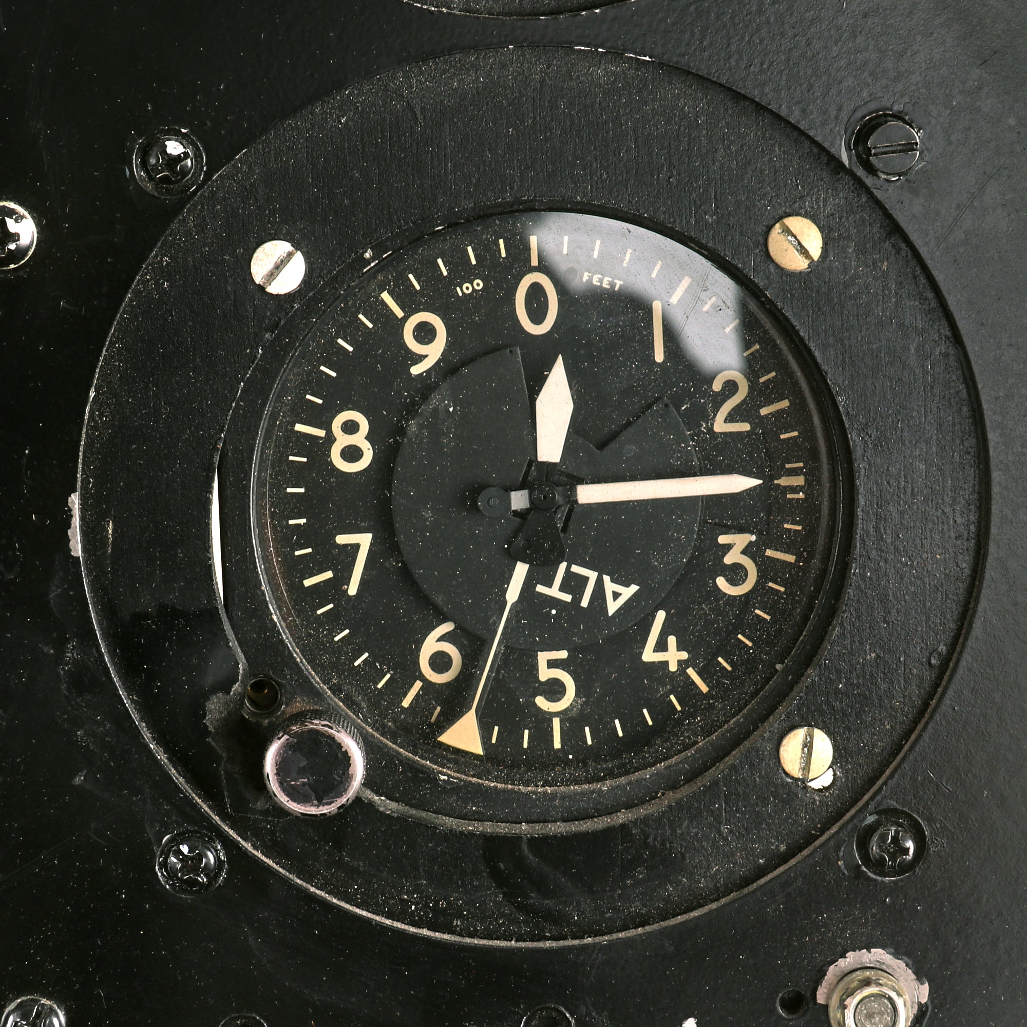 Original Item. Only One Available. This is a great panel mounted with six aircraft gauges, likely used during the Post-WWII era as a training aid. Each gauge has markings on the back with dates ranging from 1951-1953. Many of the gauges are British-made. The board measures 10¾ x 14”.