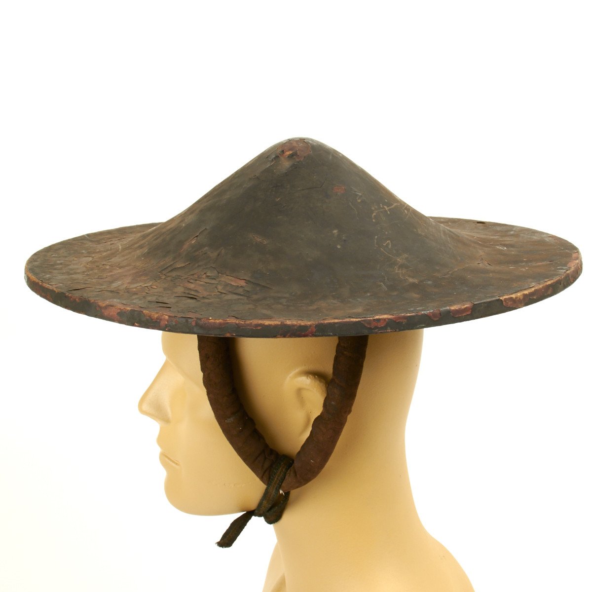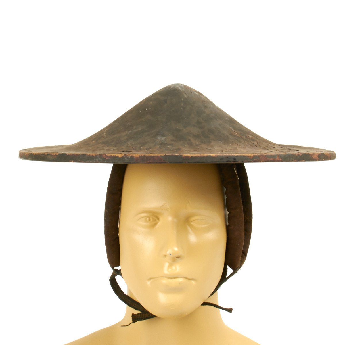 Original Item: Only One Available. This is a most unusual helmet that is known as a JINGASA translating to "War Hat" or "Military Hat" during the Edo period of 1700 to 1860. The Edo period was a time of relative peace so the earlier traditional massive KABUTO helmets used as part of a Samurai's armor were phased out and the Jingasa became quite popular.