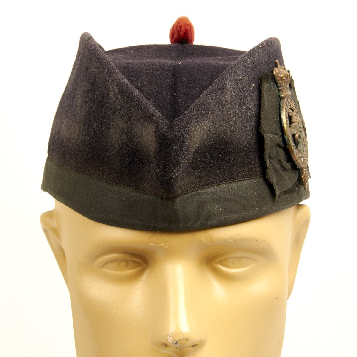 Original Item: Only One Available. Is this the real thing? We don’t know for sure but it is clearly a very old glengarry cap with red pom-pom remaining, almost drenched in history and quite filthy.