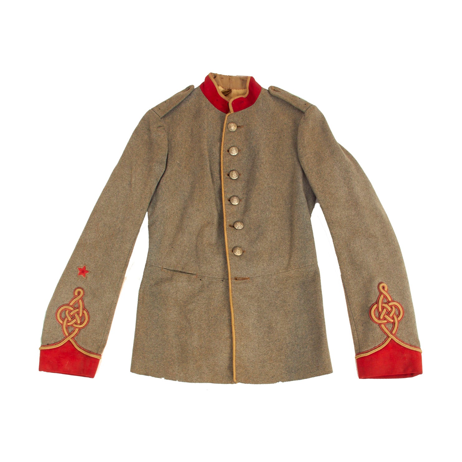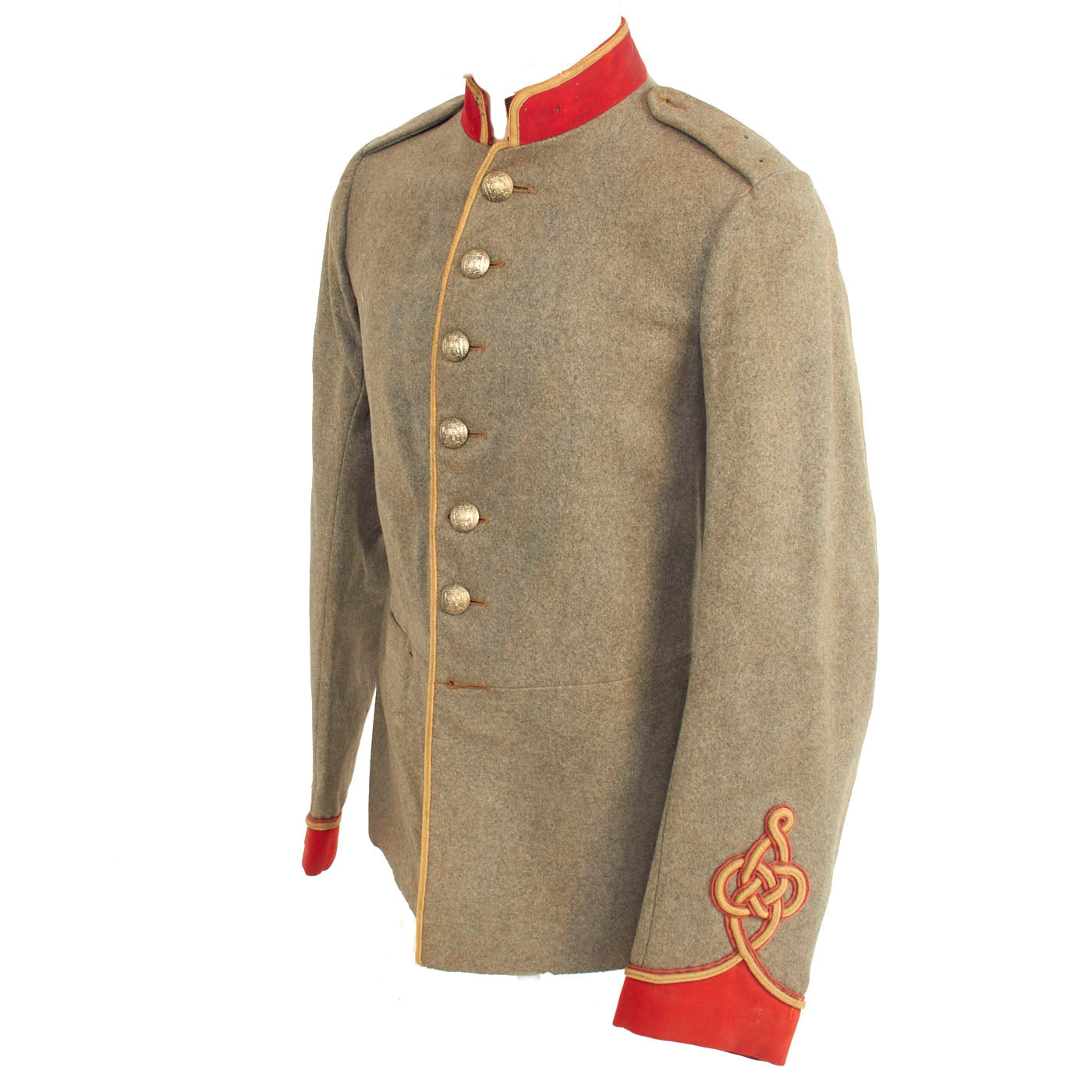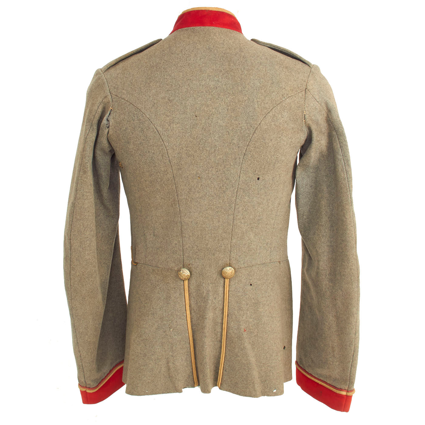Original Item: Only One Available. Original Pre-WWI British O.R.’s Uniform Coat from The Queen’s Westminster Guards. Constructed of a heavy grey serge wool, with an off white kersey lining, the coat is secured by six Queen’s Westminster Guards Service Buttons.