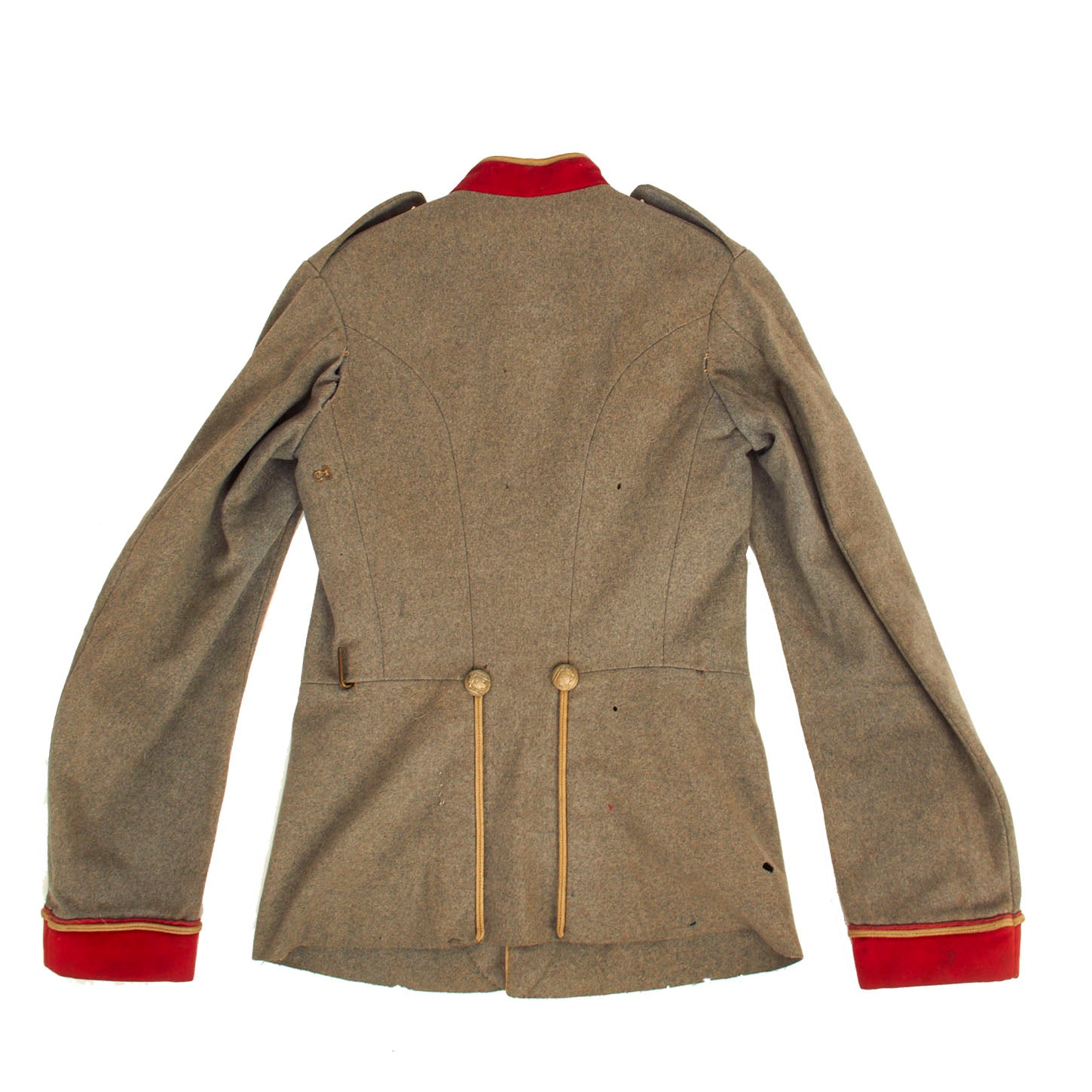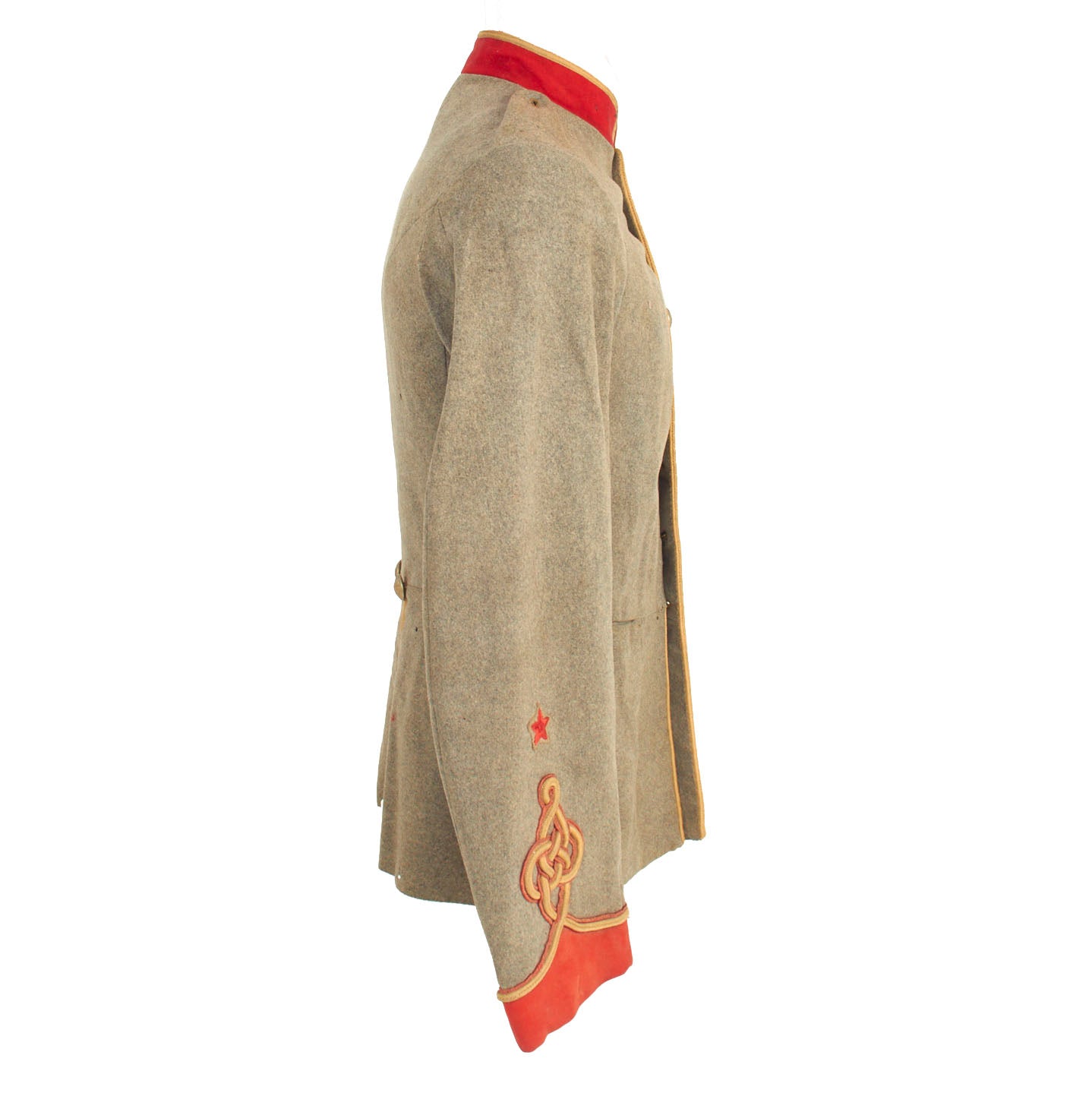 There is some mothing here and there throughout on the coat, but it does, by no means, detract from the overall appearance and displayability of the garment. The two small epaullette buttons are unfortunately missing, along with the original shoulder titles. However, these could be just as easily located and replaced if one so desired.