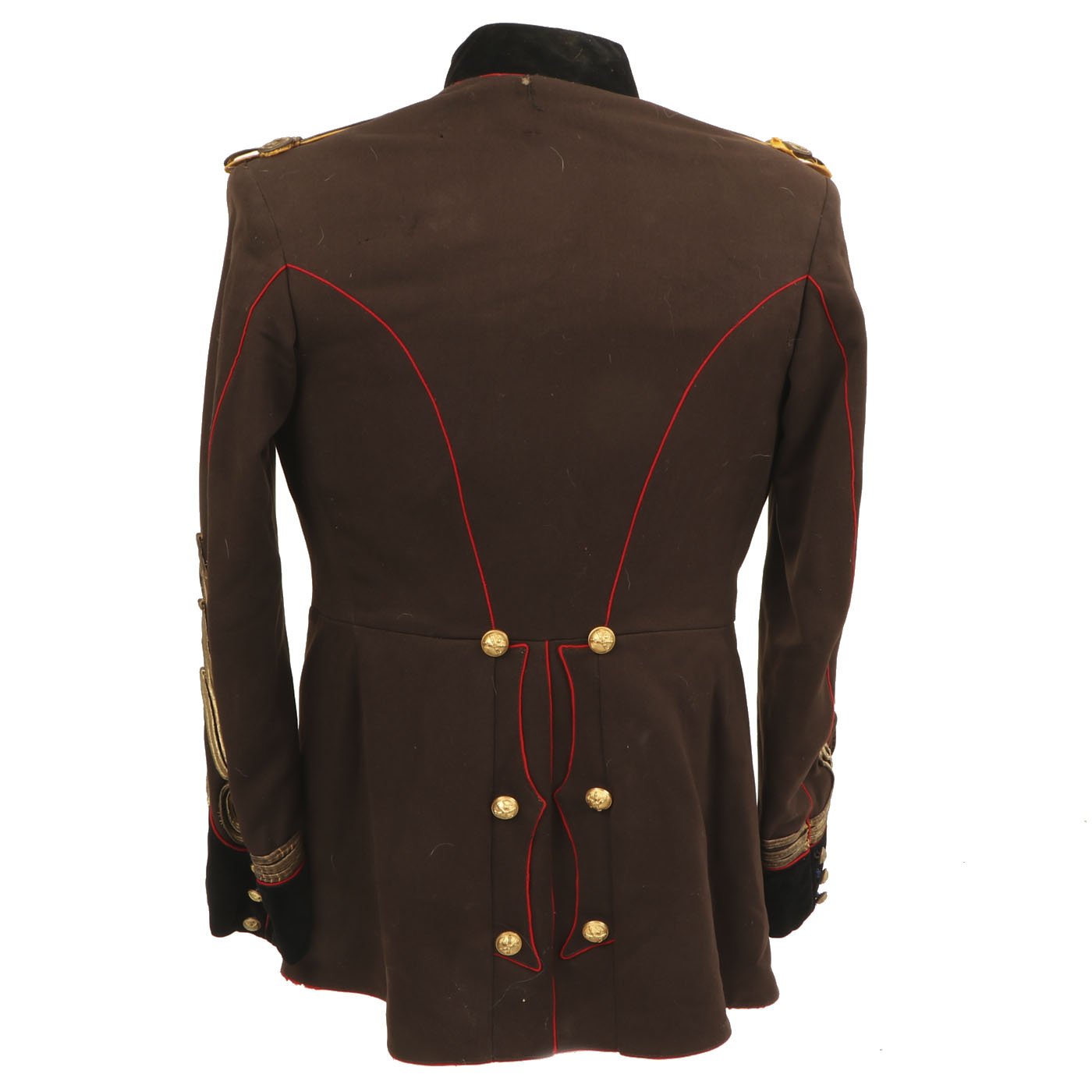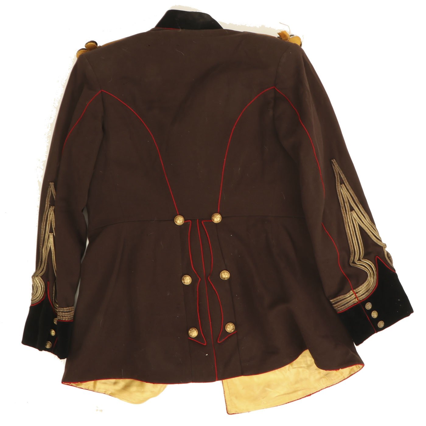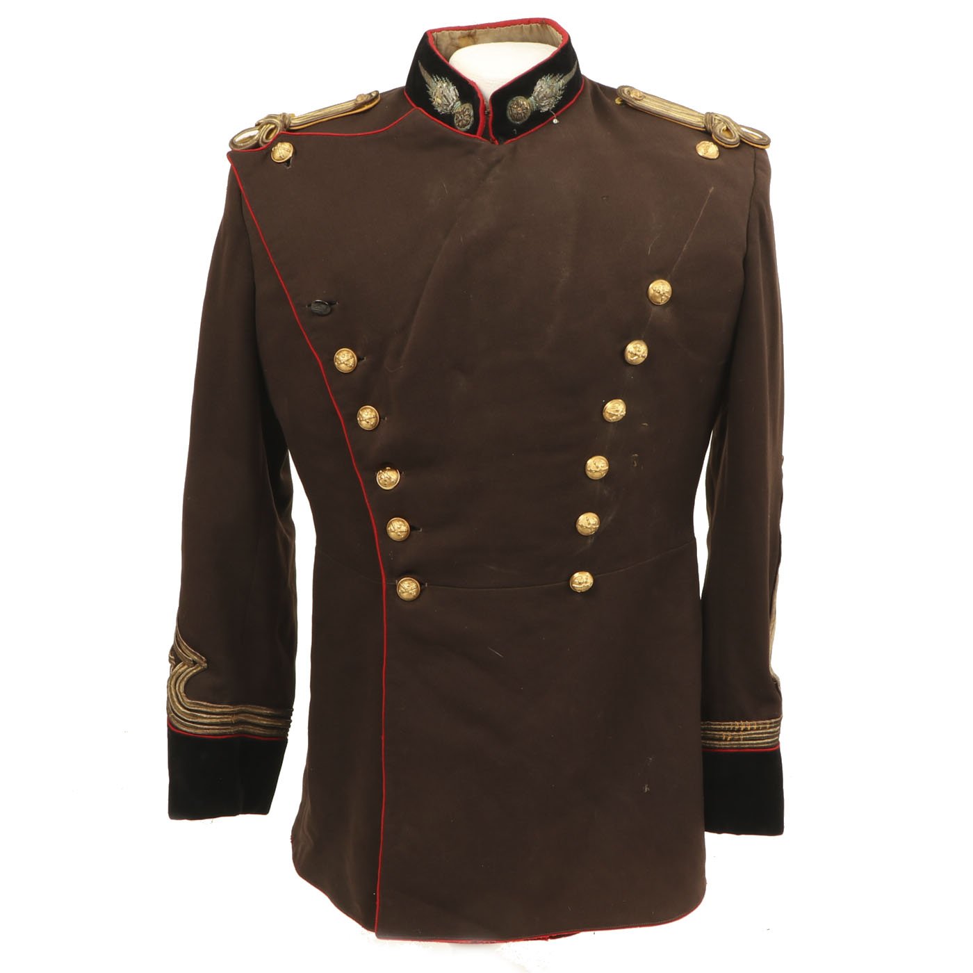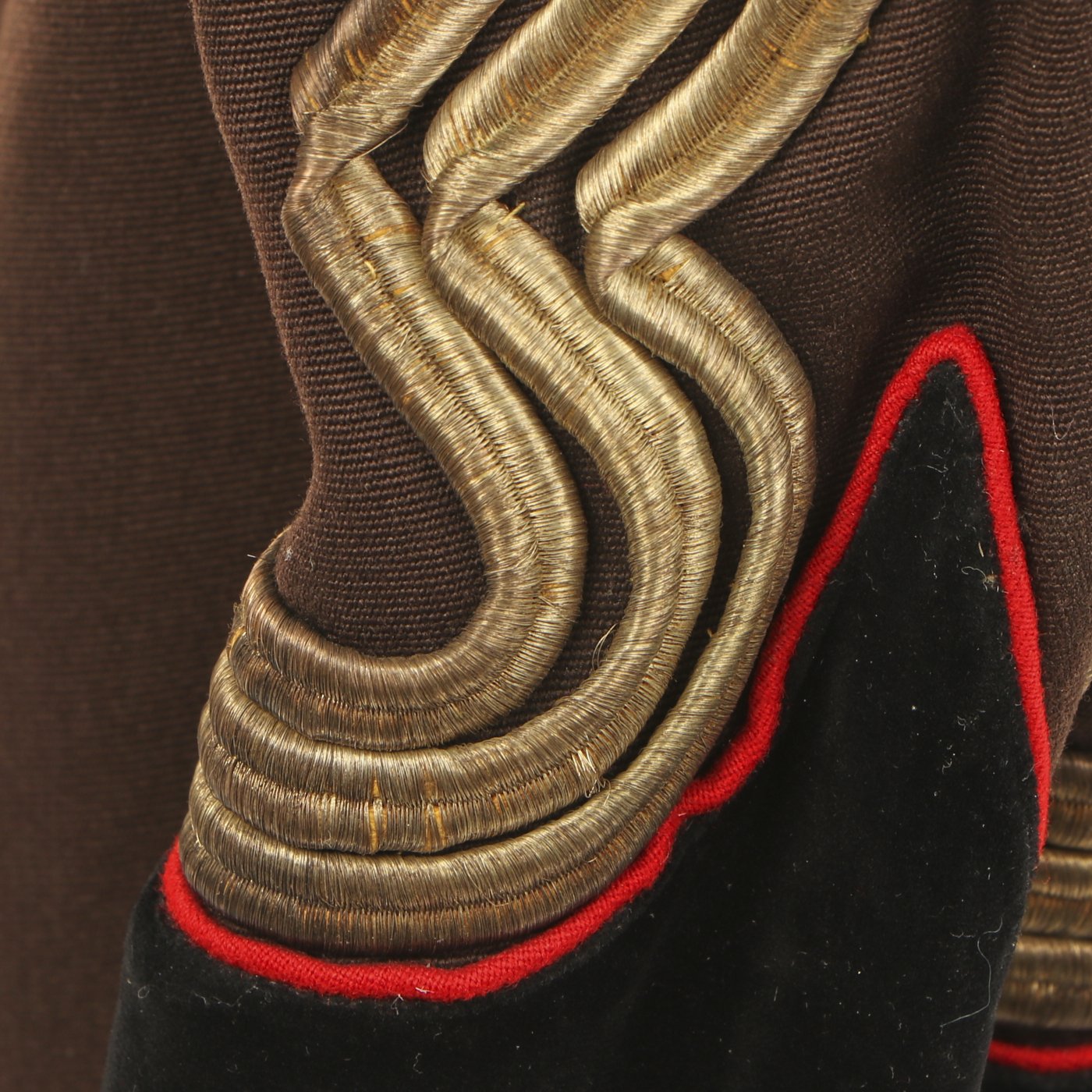 Original Item: Only One Available. Quite frankly, we aren't exactly sure what this tunic is. We believe it is French based on FRANCAIS back marked buttons, the style and insignia.. We believe it to be an officers tunic based on the epaulets ans sleeve braid. It is a finely made garment grey wool exterior shell with quilted rayon type interior lining. It is double breasted with copious amounts of gilt bullion braid and gilt artillery buttons. We believe it dates from the early 20th century before World War One.