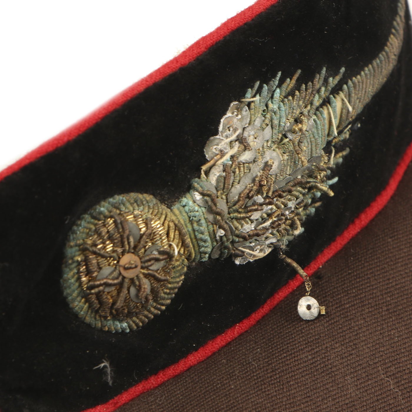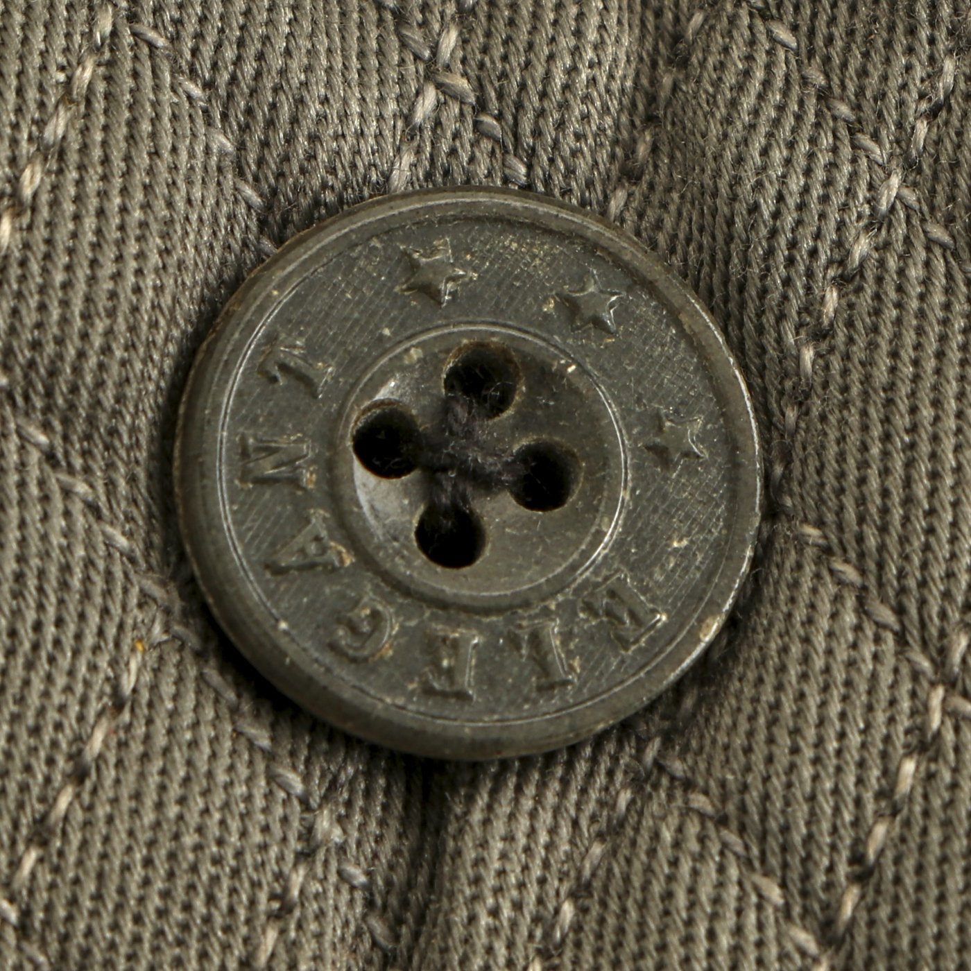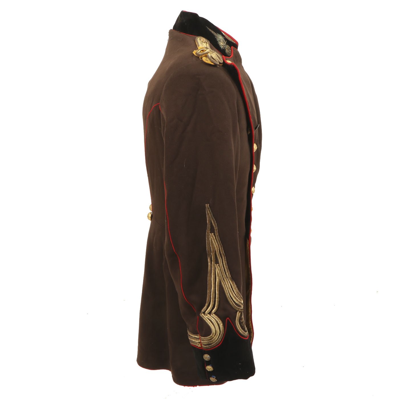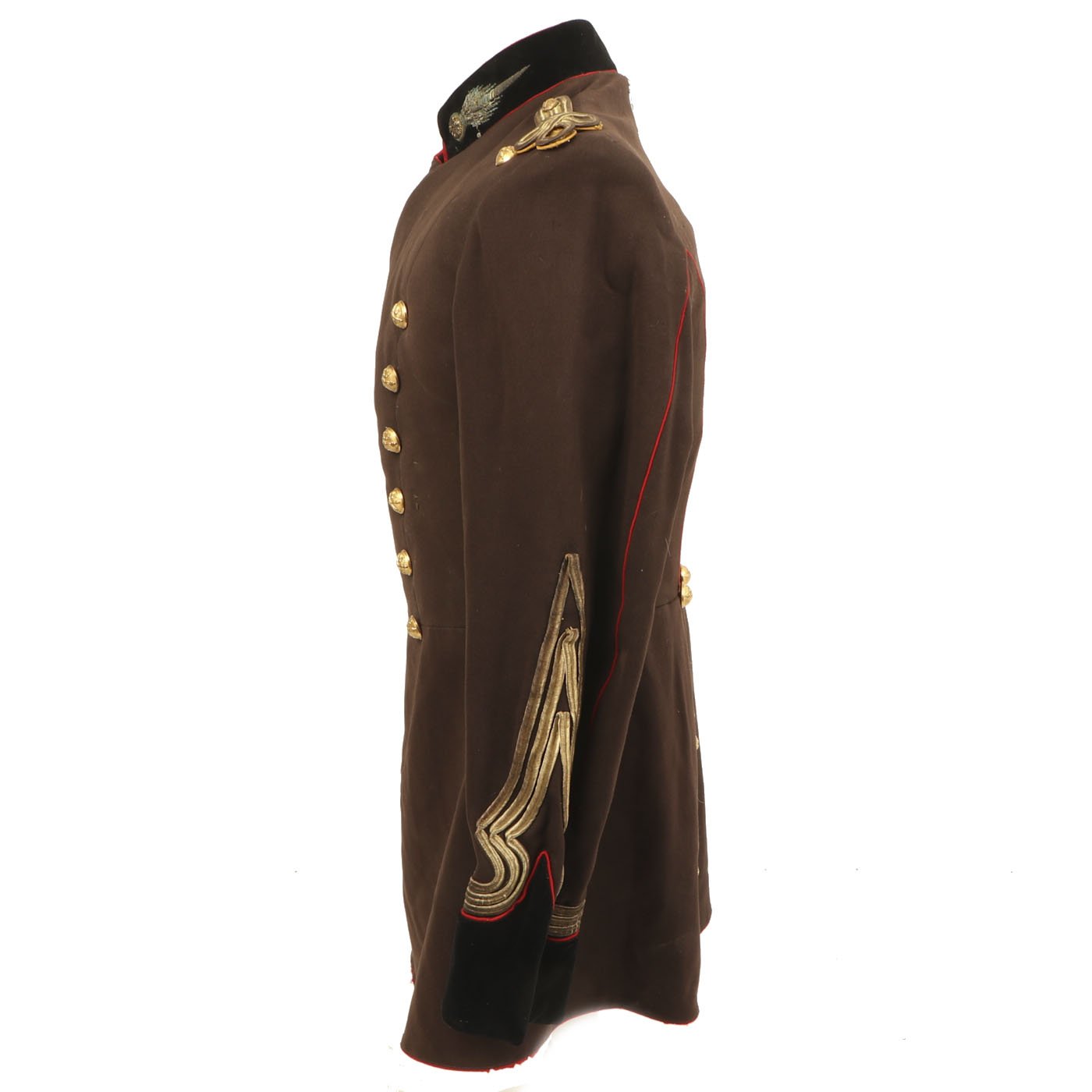 Original Item: Only One Available. Quite frankly, we aren't exactly sure what this tunic is. We believe it is French based on FRANCAIS back marked buttons, the style and insignia.. We believe it to be an officers tunic based on the epaulets ans sleeve braid. It is a finely made garment grey wool exterior shell with quilted rayon type interior lining. It is double breasted with copious amounts of gilt bullion braid and gilt artillery buttons. We believe it dates from the early 20th century before World War One.