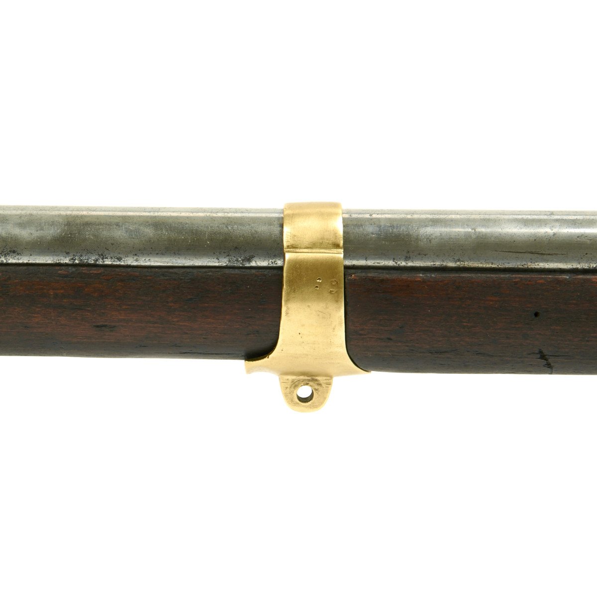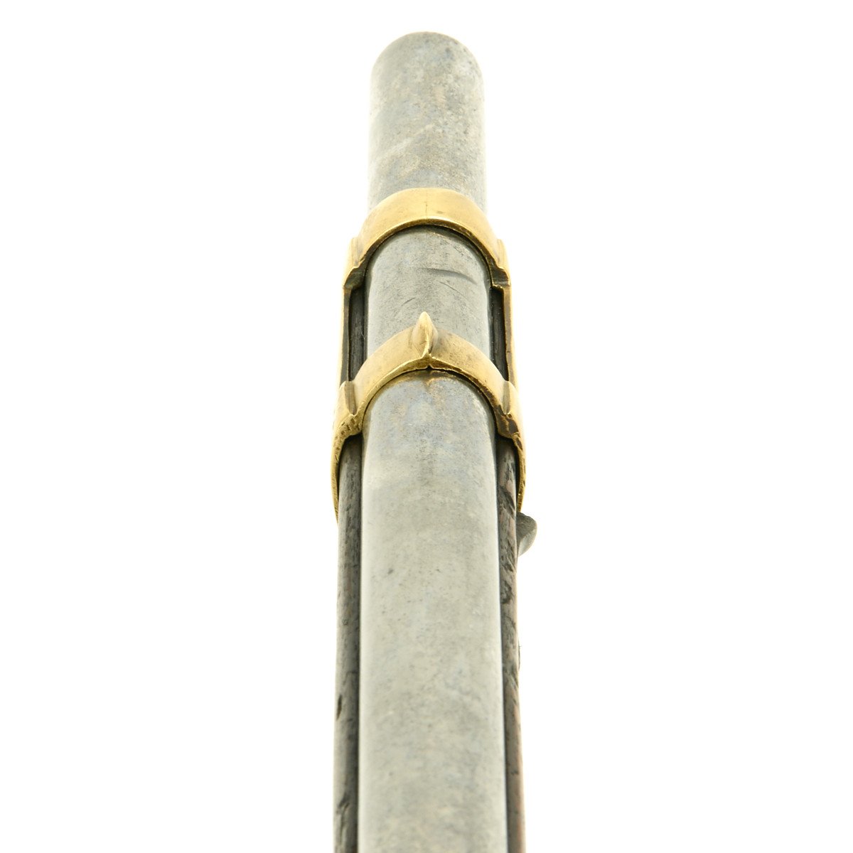 Barrel left facet is stamped 1824 (with a cancellation line through it from when it was later converted). Mechanics are strong and crisp. Barrel is secured to the stock via three brass bands retained by springs. Upper brass band is double-strapped.