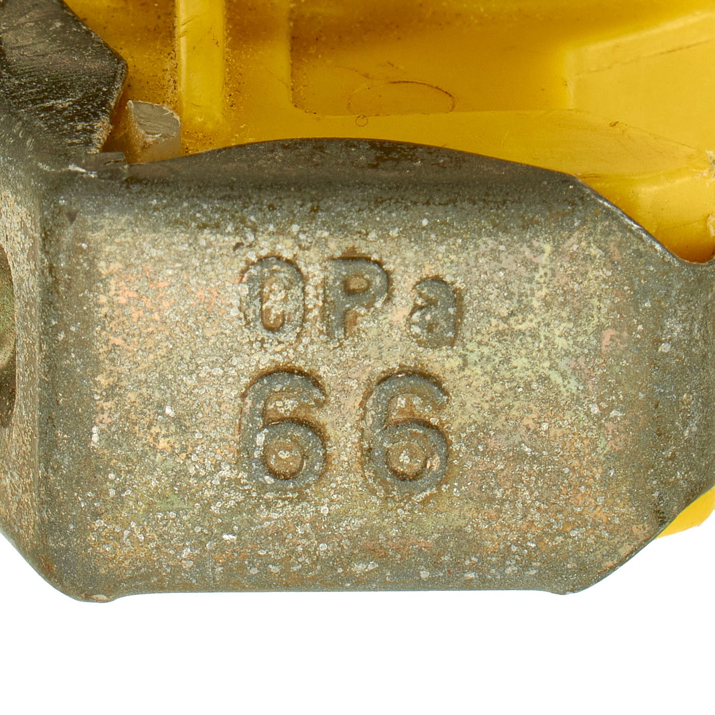 The grenade is in excellent condition, with the yellow fuze and green ribbed body in like-new condition. Comes complete with the pull ring, and paint stamping on the top. Additional U.S. Military EOD markings have been added denoting the Grenade was rendered safe, along with a catalog reference number serial number added to the base.