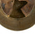 The rear of the helmet skirt is marked with a "Bear" logo over 64, indicating manufacture by Berndorfer Metal-Warenfabrik A Krupp AG in Berndorf, Austria in size 64. This is the only factory that manufactured the M18 "Hungarian" model helmets. Size 64 is a nice medium size that would usually accommodate size 56 to 58 hat sizes, which is 7 to 7 1/4 in U.S. sizes. The top of the shell is marked on the inside with a B for the Bleckmann rolling mill. The helmet still has the correct "stepped" vent hole lugs, for attachment of a "stirnpanzer" helmet plate.