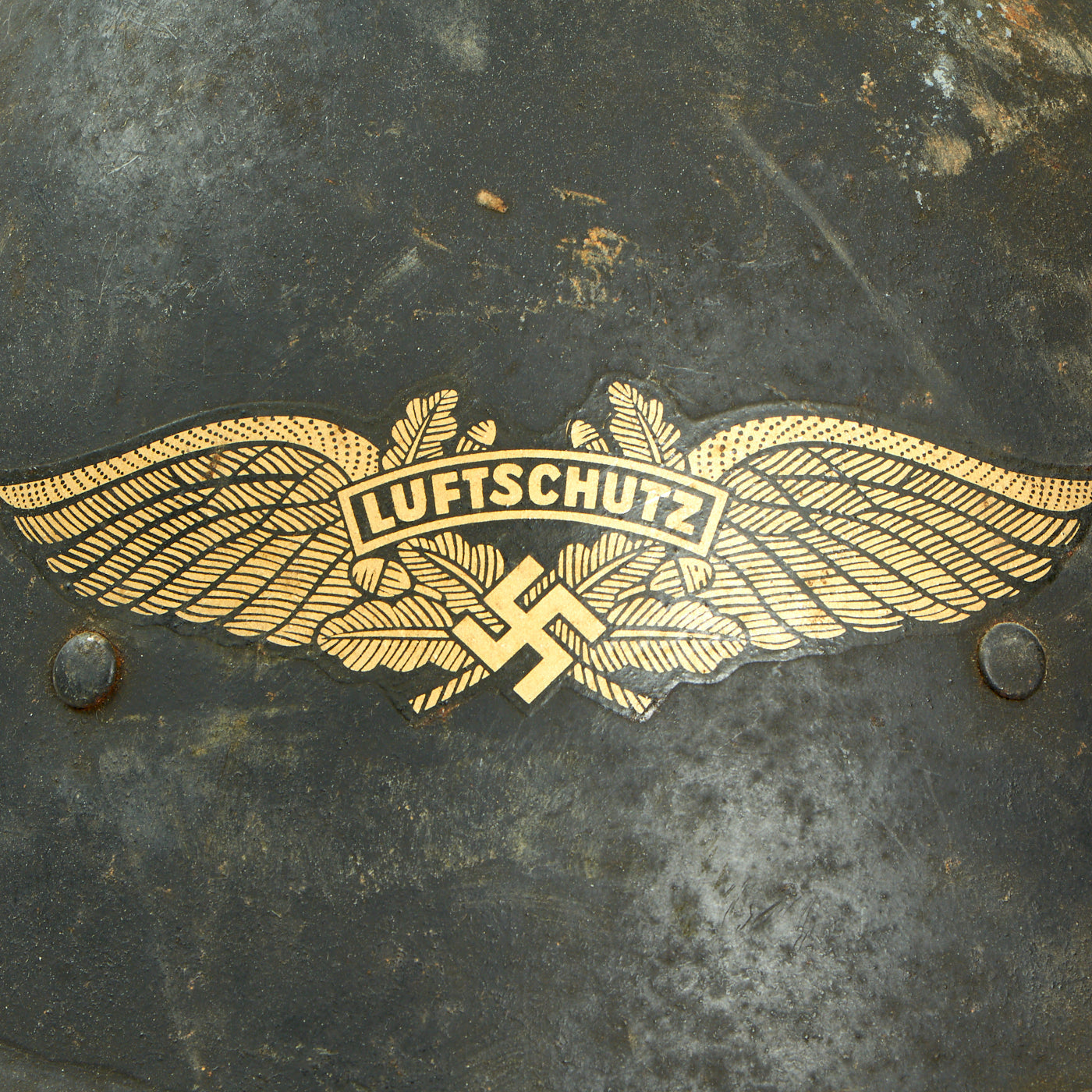 Formed in late 1932 the Deutsches Luftschutzverband, (German Air Protection League), was a voluntary organization designed to provide civil air raid protection in large civilian centers. Shortly after AH ascension to power the Deutsches Luftschutzverband was restructured and placed under the supervision of the Reichsluftfahrtministerium, (National Air Ministry), under the control of Hermann Göring. On April 29TH 1933 the Deutsches Luftschutzverband was renamed RLB, Reichs Luftschutz Bund, (National Air Raid Protection League) and was given status as an official national organization tasked with all aspects of civil air raid defense. The RLB remained a voluntary organization with a small cadre of paid, full-time uniformed officials to oversee the organization's functions until June 1935 when obligatory service was introduced. Only the most basic uniform and equipment items were supplied to the cadre personnel, with the rest having to be bought personally by members. On September 26TH 1938 a specific helmet for RLB personnel was introduced that incorporated a raised horizontal "bead" between the visors and crown. These helmets commonly called the "Gladiator" style were supplemented with M35, M40 and M42 helmets that also incorporated a raised horizontal "bead" between the visors and crown. The Luftschutz also utilized a variety of captured helmets.