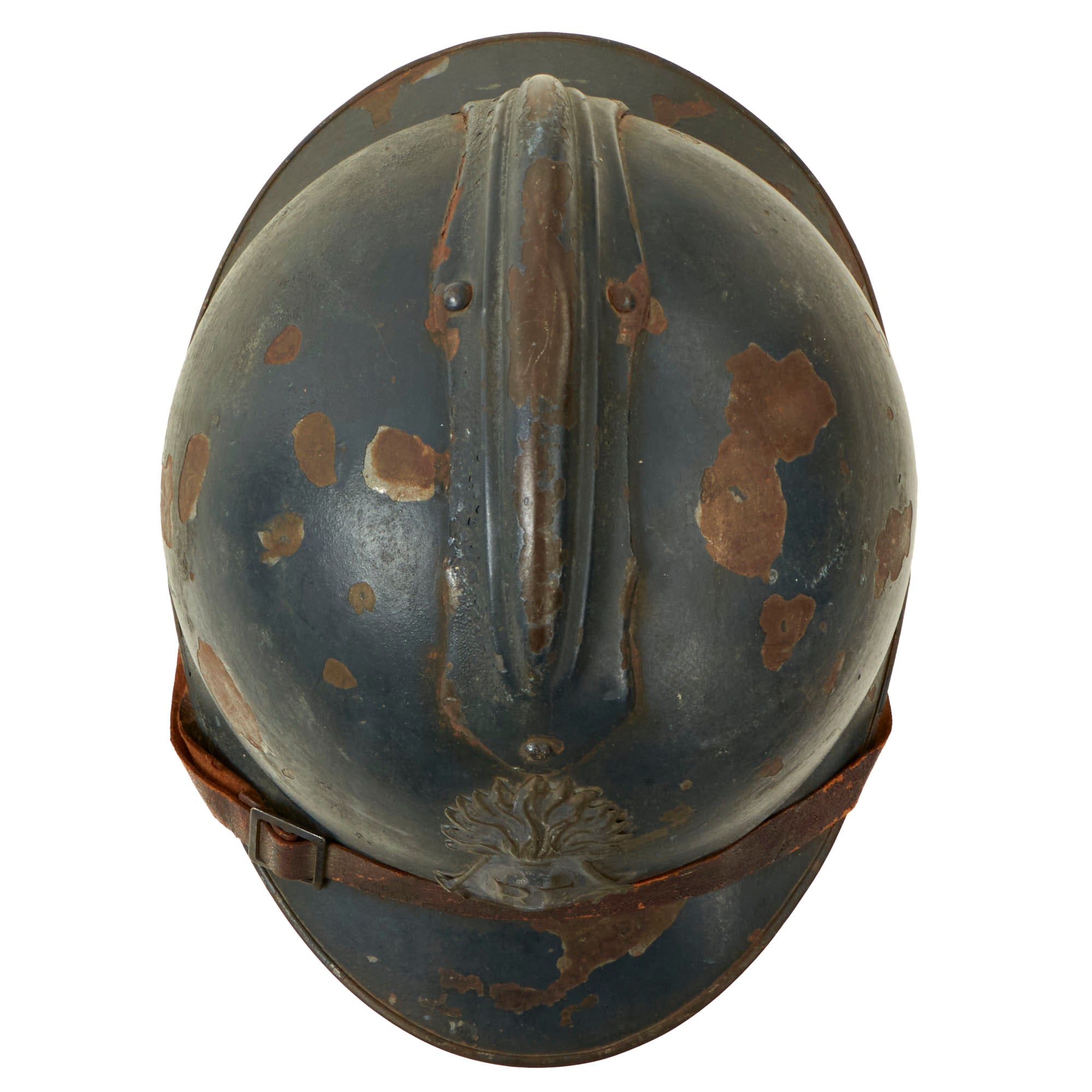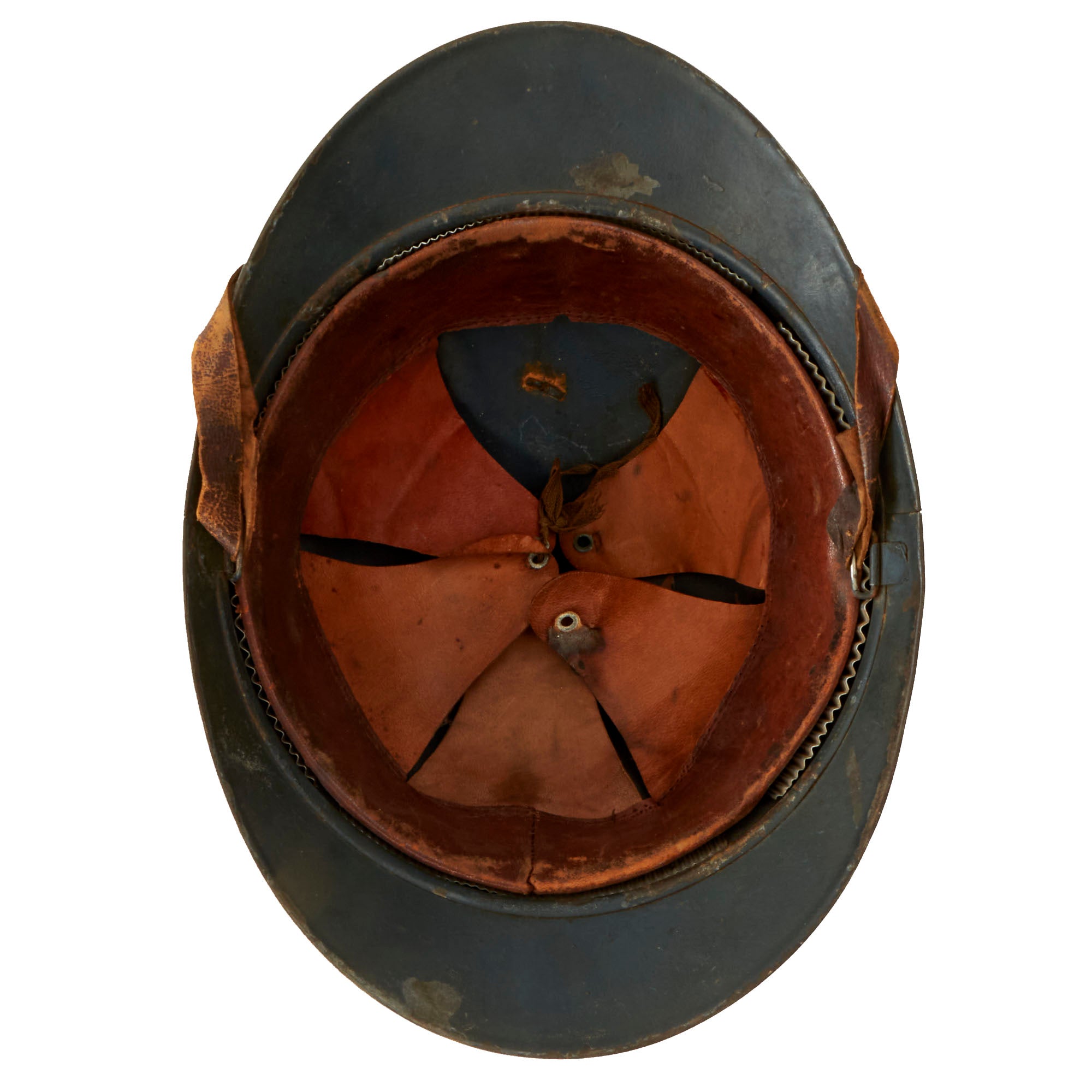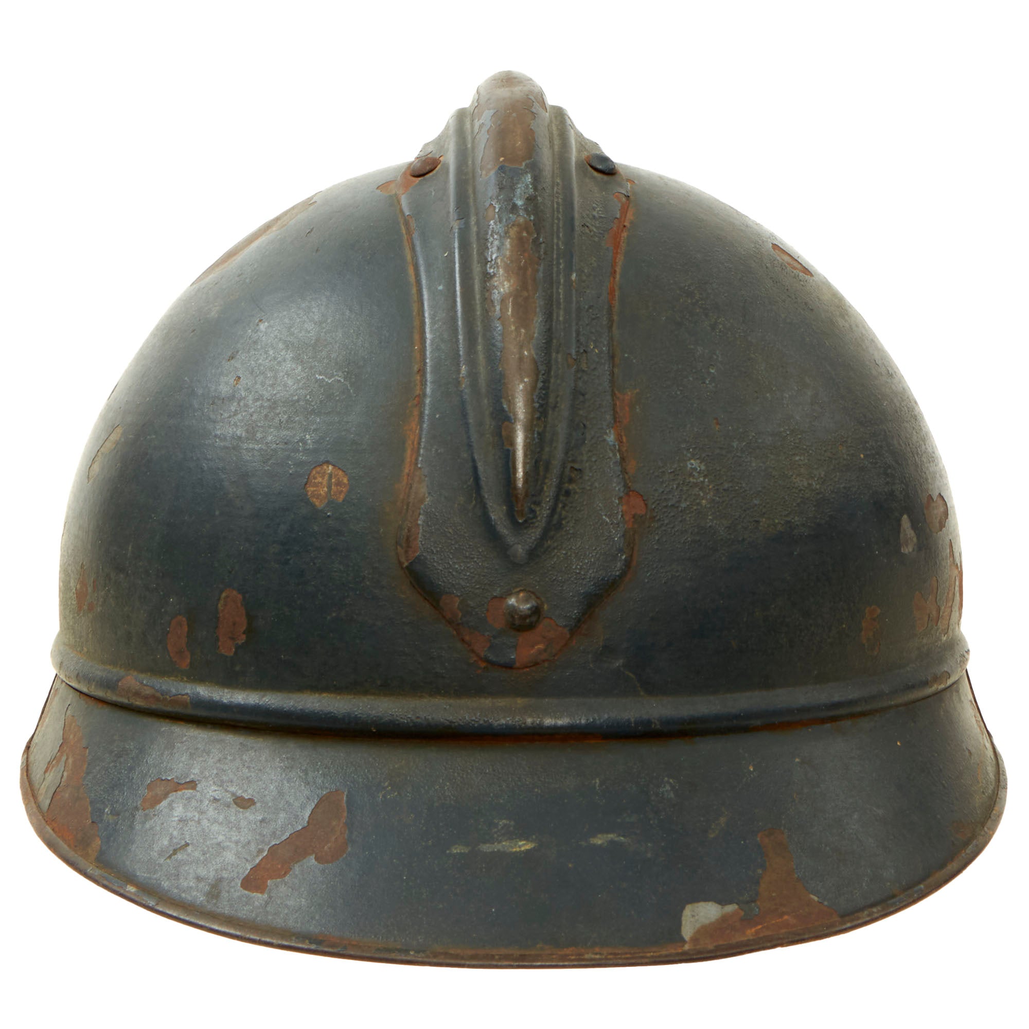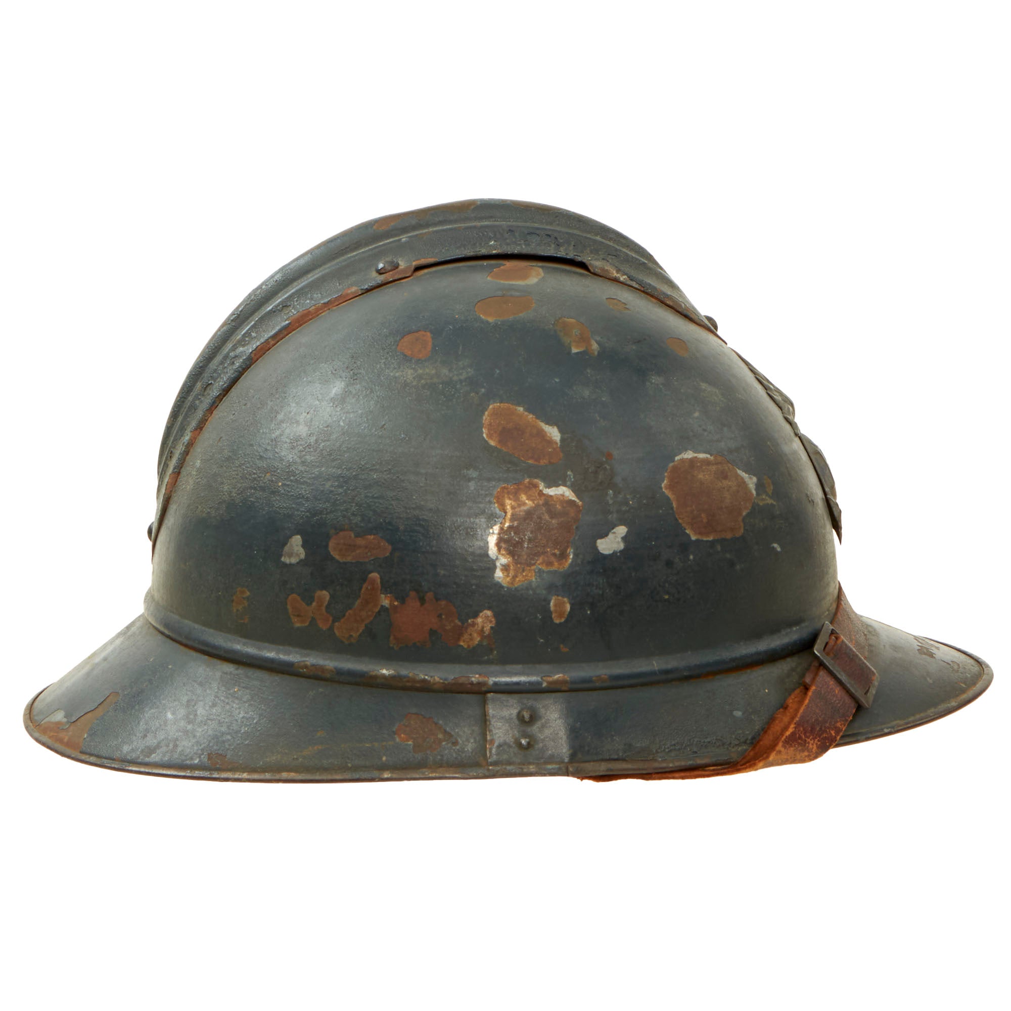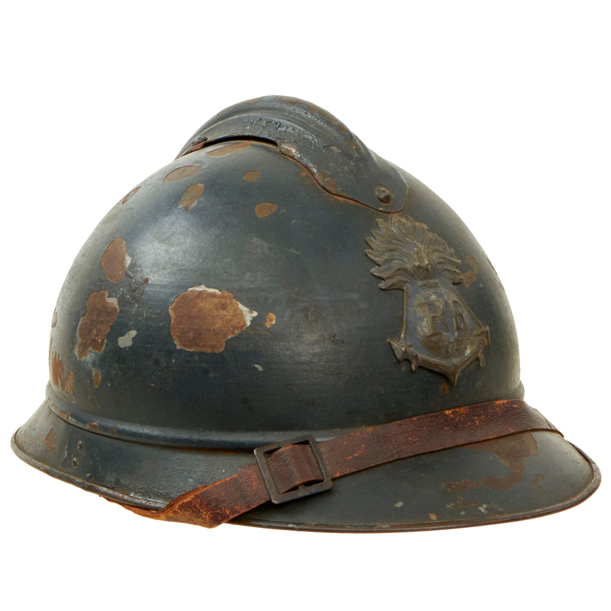 Original Item: Only One Available. This is a very good service used example of a rare genuine World War I M1915 French Army "Adrian" steel helmet shell, outfitted for Colonial Infantry & Navy personnel. This is one of the rarer types of Adrian helmets seen, much more so than the usual Infantry version.