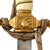 This fine example was almost certainly purchased by a high ranking officer during the Weimar period, probably during the early 1920s. The crossguard is the standard brass type with a fouled anchor panel on the front, with a release button on the rear. The grip is in very good condition, with the white celluloid cover well retained, without any of the fading towards yellow or orange that we often see. This was intended to simulate ivory, which is does very well. The bullion wrapped twisted brass wire wrapping is in very good tight condition, though it does show some oxidation. The scabbard locking button is fully functional and unlocks easily.