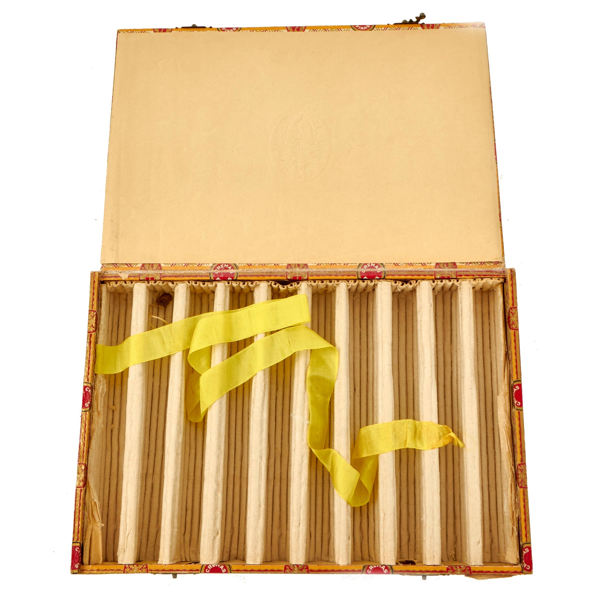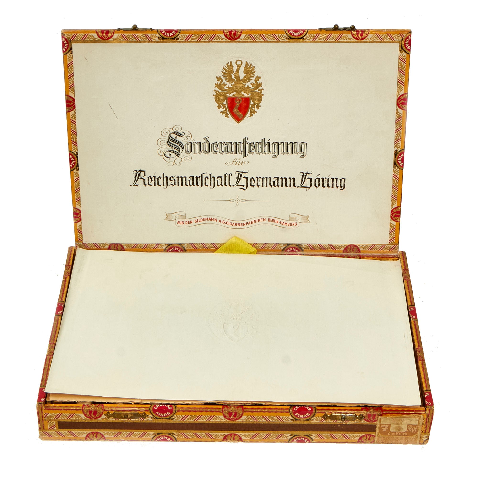 Original Item: Only One Available. This is a very rare example of a German WWII Cigar box, which originally housed cigars for the personal use of convicted war criminal Reichsmarschall Hermann Göring. The elite of the German Military and Political worlds had long been given the finest quality provisions, and during the NSDAP period this was even more pronounced.