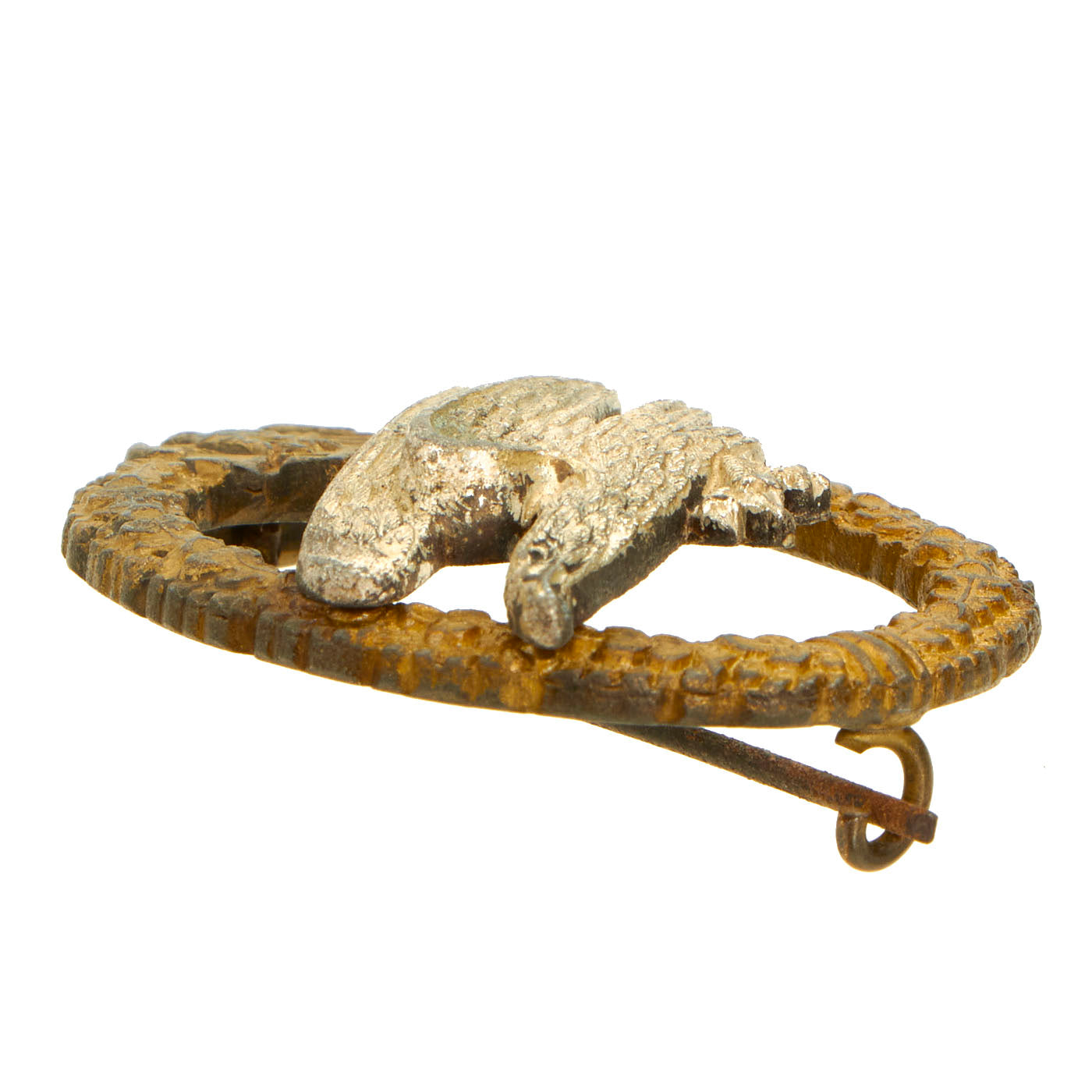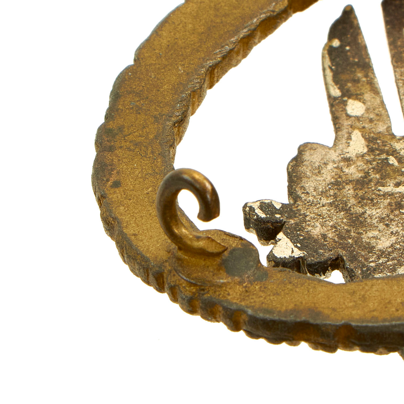 Condition is very good, with much of the gold wash retained on the wreath, and the silver wash on the "Diving Eagle" also retained well. There is some wear on the back, and oxidation on the pin, but this is still a fantastic example of this rare badge.