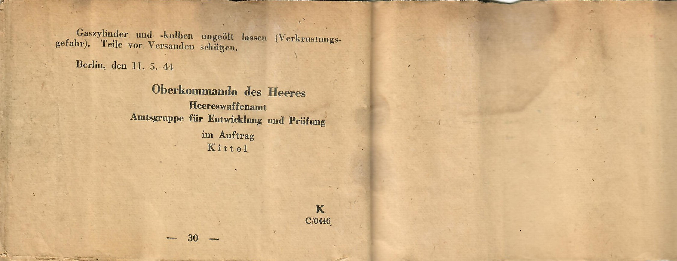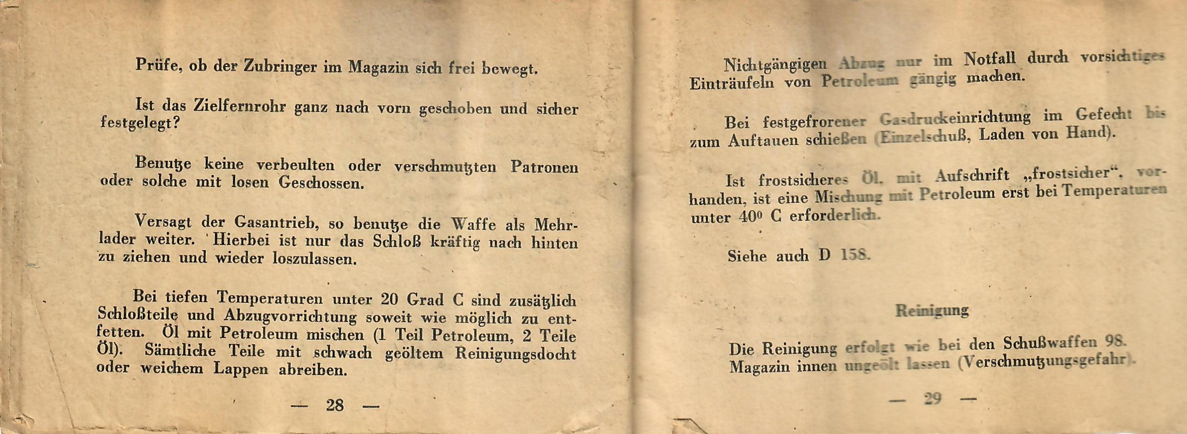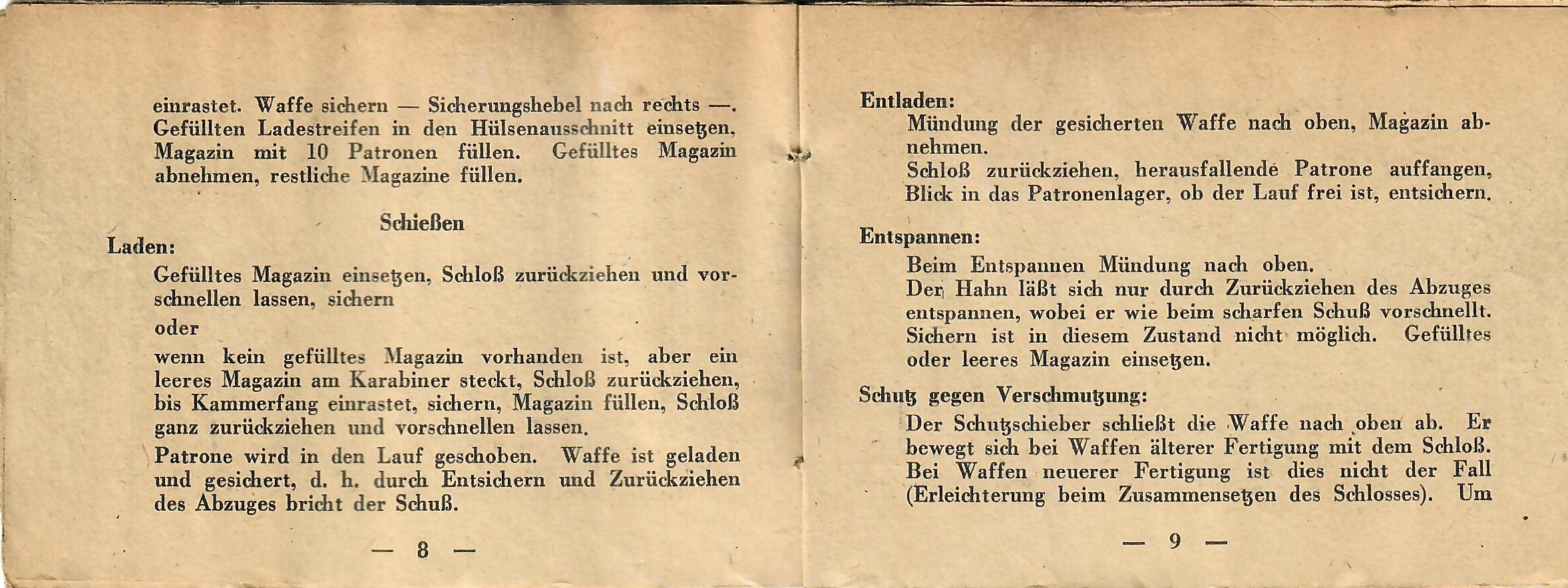 This is a rare manual for a rifle equipped with the scope. The manual was intended to be inserted into the butt trap of the rifle, so almost all of them remained there when the rifles were captured or destroyed. This example definitely looks to have been rolled up at one point, but it is definitely intact, and can still be read if handled carefully. The front cover reads: