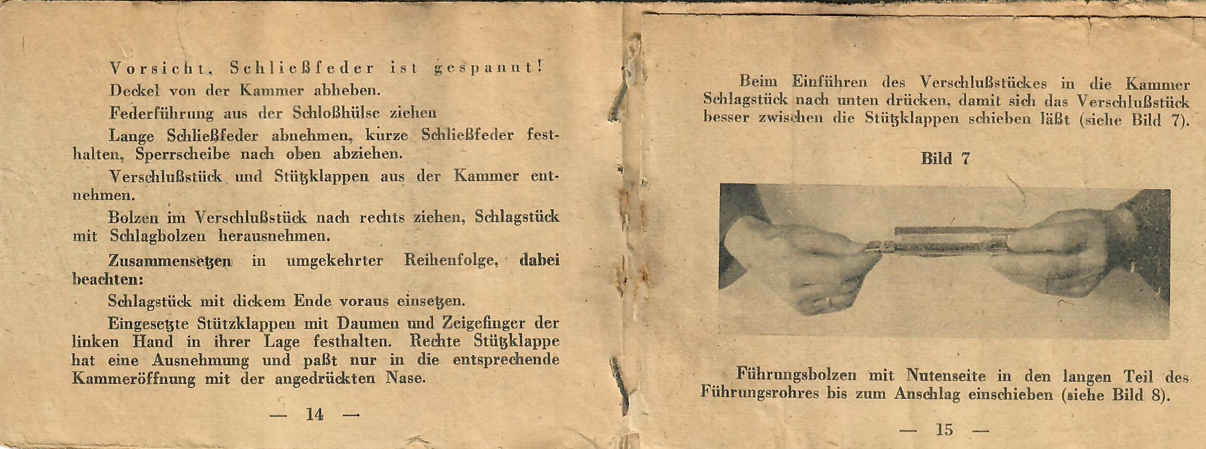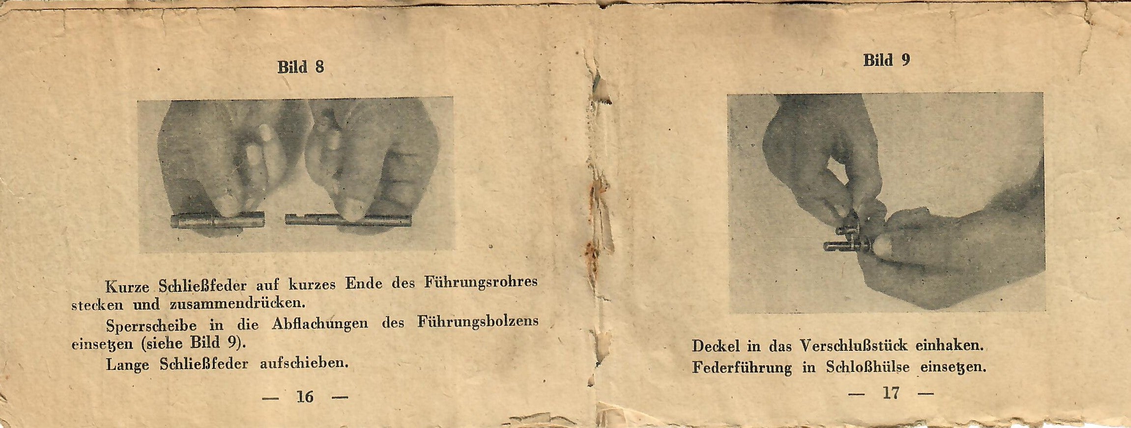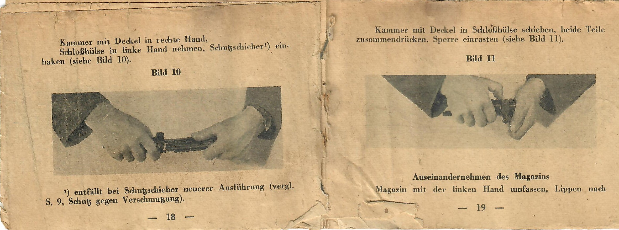 This basically translates to "To Insert Into the Device" and "Instruction Manual for the Gewehr 43 Rifle with ZF 4X Telescopic Sight). As the instructions are still curled up, getting scans of them was somewhat difficult, resulting in shadows which do not exist on the actual manual.
