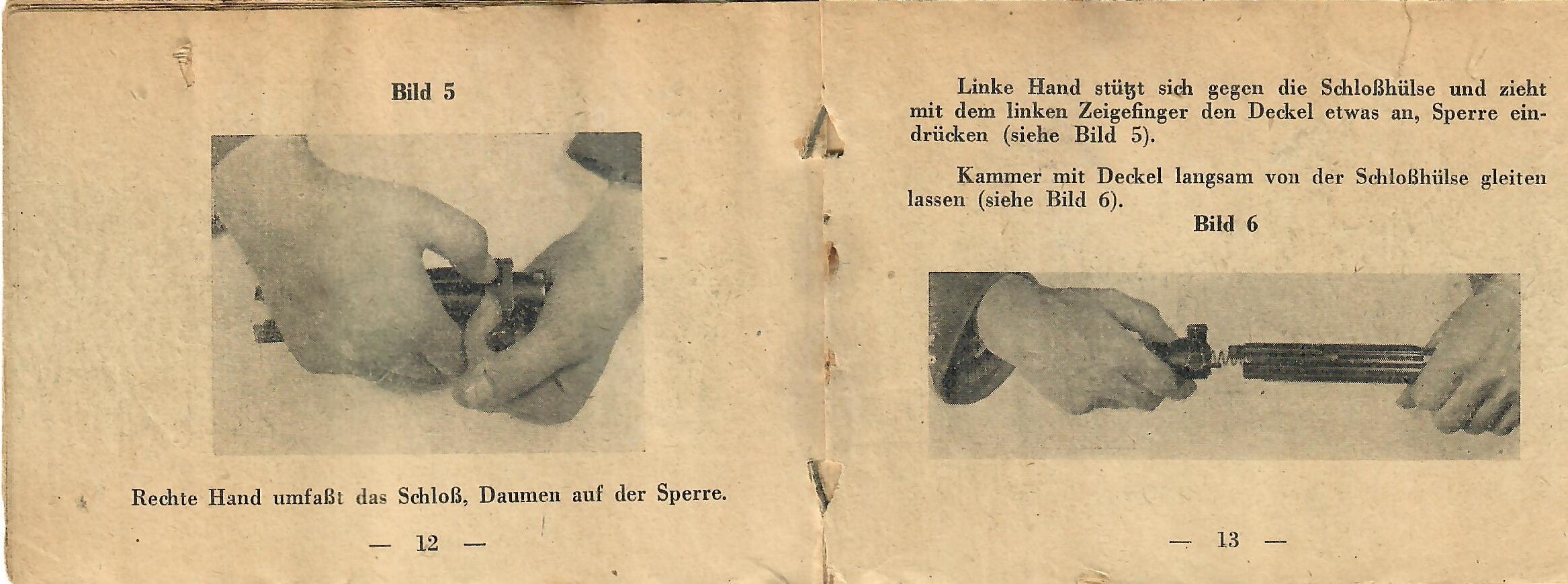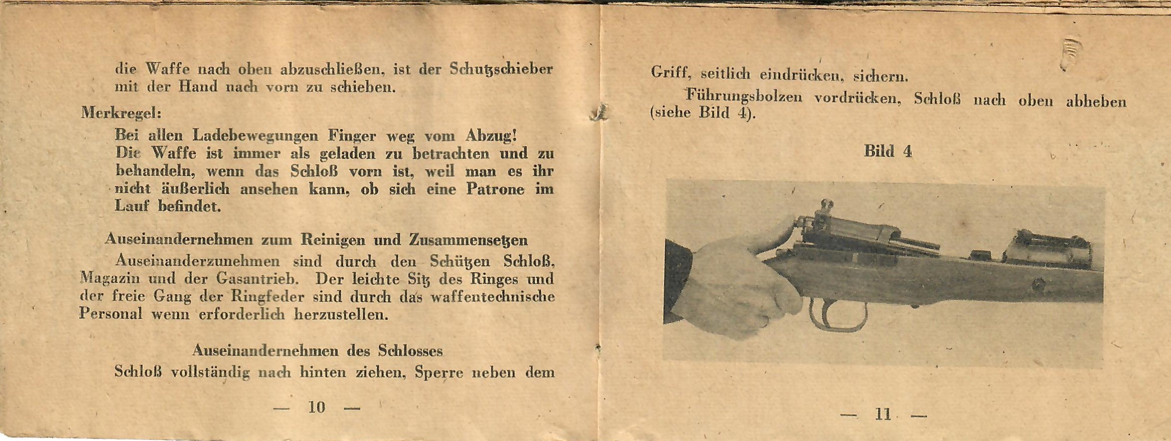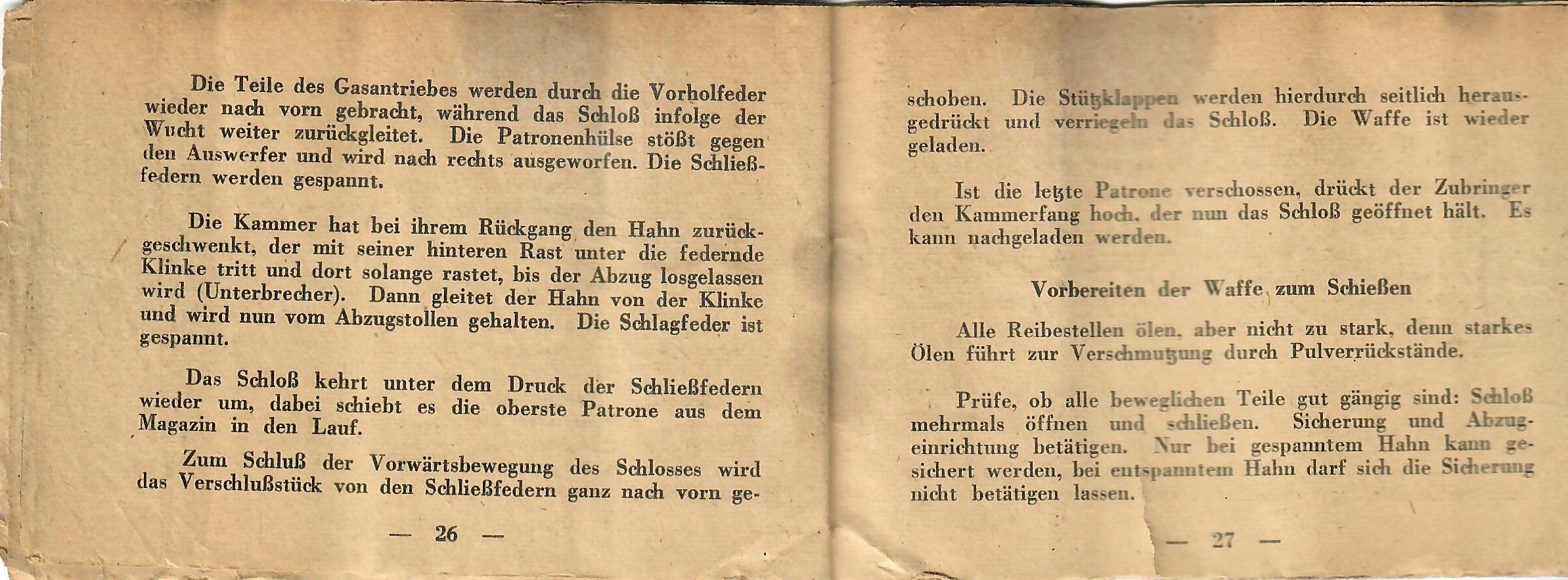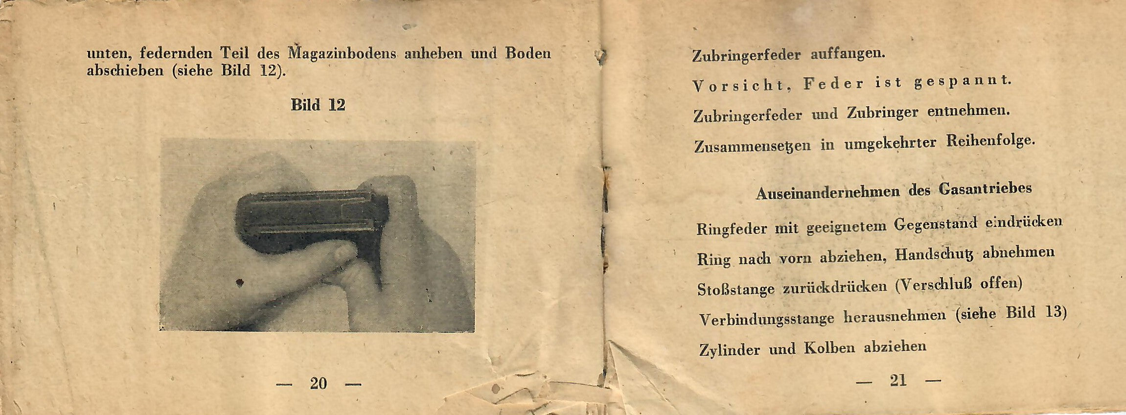 This basically translates to "To Insert Into the Device" and "Instruction Manual for the Gewehr 43 Rifle with ZF 4X Telescopic Sight). As the instructions are still curled up, getting scans of them was somewhat difficult, resulting in shadows which do not exist on the actual manual.