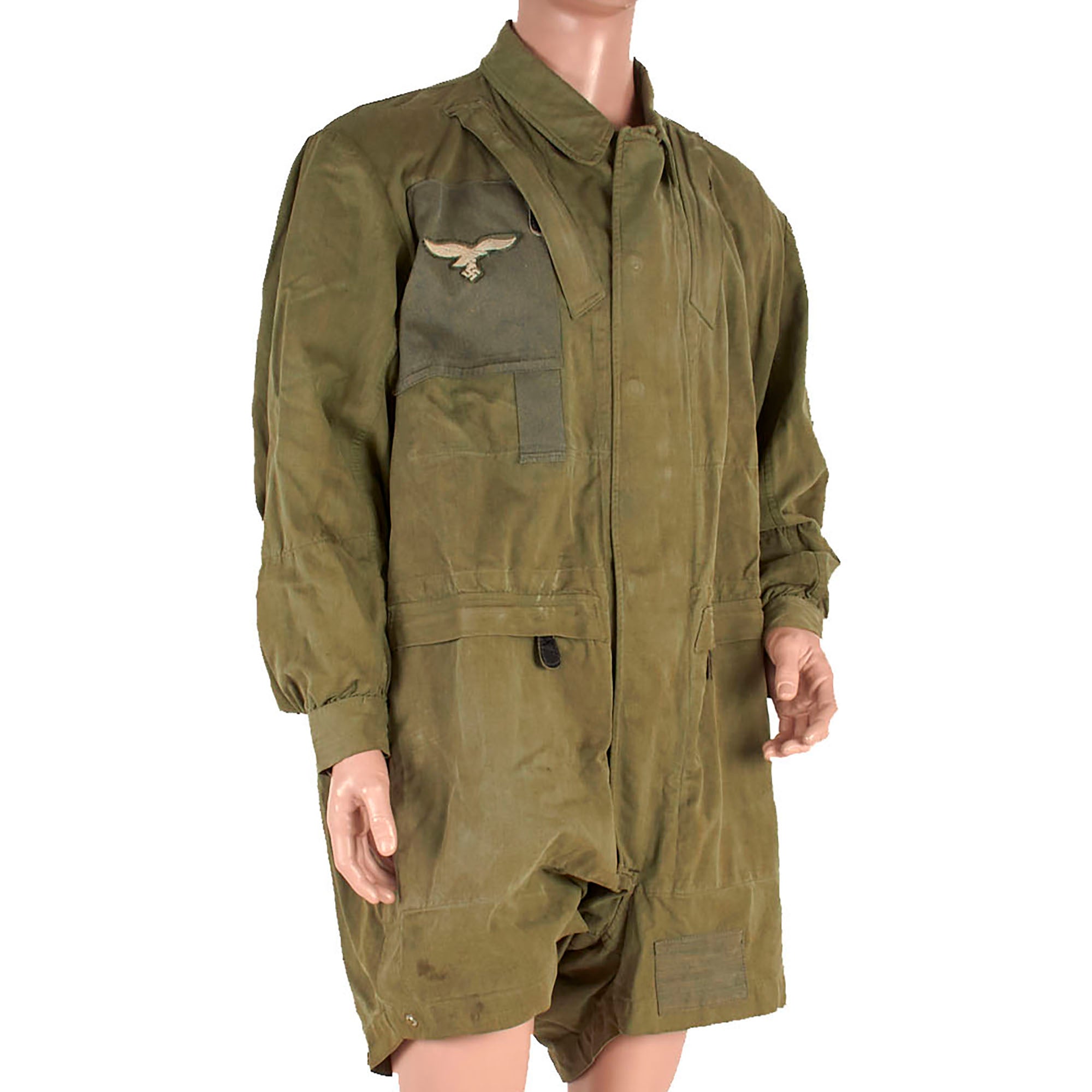 These were only produced for a short time, as by the end of 1941 the Luftwaffen-Splittertarnmuster (Splinter pattern) camouflage was introduced, replacing the stippled green color. Later patterns would also do away with the "step in" design, and either just have a coat, or at times a full suit was used.