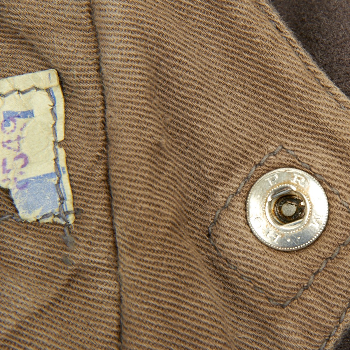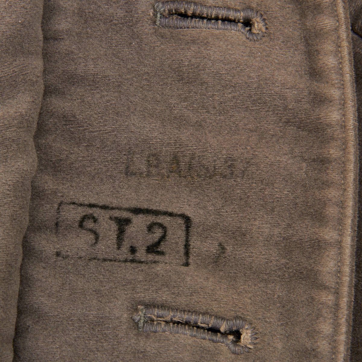 Features include genuine PRYM marked snaps and D.R.P zippers, large bakelite buttons, and additional paper inspection label and ink Luftwaffe stamp ST.2. Also, of particular note is the emergency tear away ripcord section (still intact) used to gain instant access to the interior of the suit for a pistol, life saving equipment, etc. The suit is not lined, meaning it was used primarily in warm weather, as it is much more lightweight then the heavy winter flying suits. Flying suit is offered excellent condition and in a good large size, fits a 180lb 5’10 man without problem. Lightweight, weighing only 5lbs.