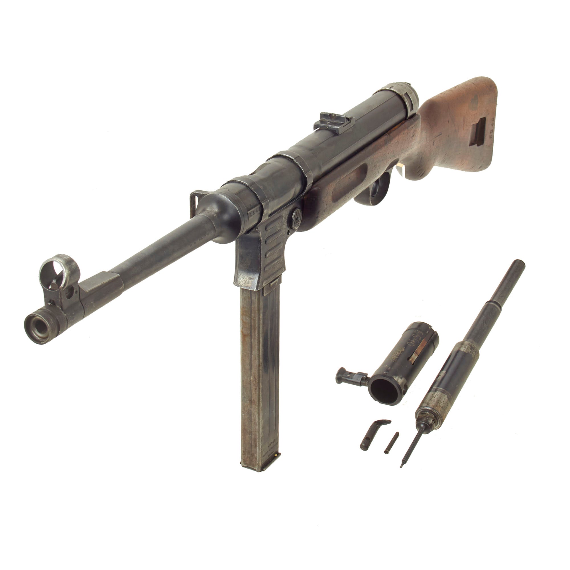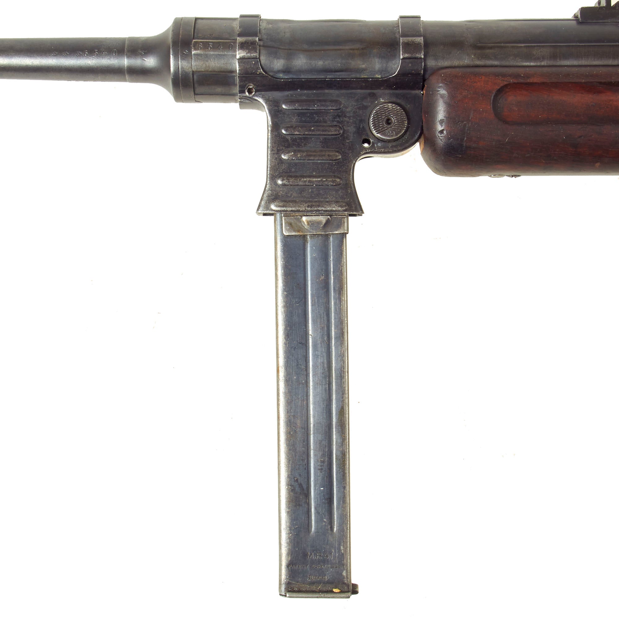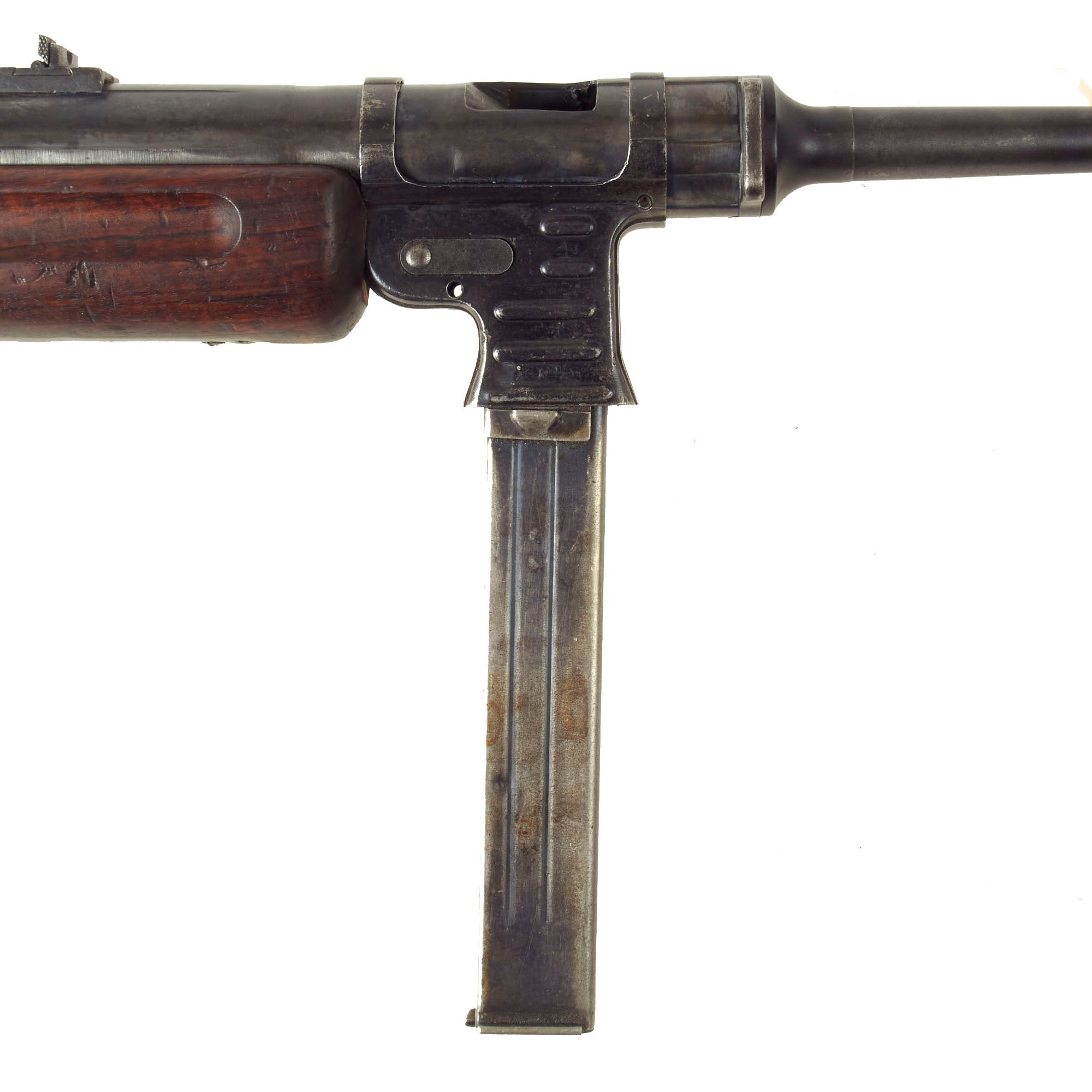 The MP-41 (M.P. 41) submachine gun is blowback operated, selective-fire weapon which fires from an open bolt. It uses a bolt with telescoped return spring guide borrowed from the MP40. The receiver and magazine are also both borrowed from the MP40. The wooden stock and trigger unit with cross-bolt button fire mode selector were taken from the MP-28.