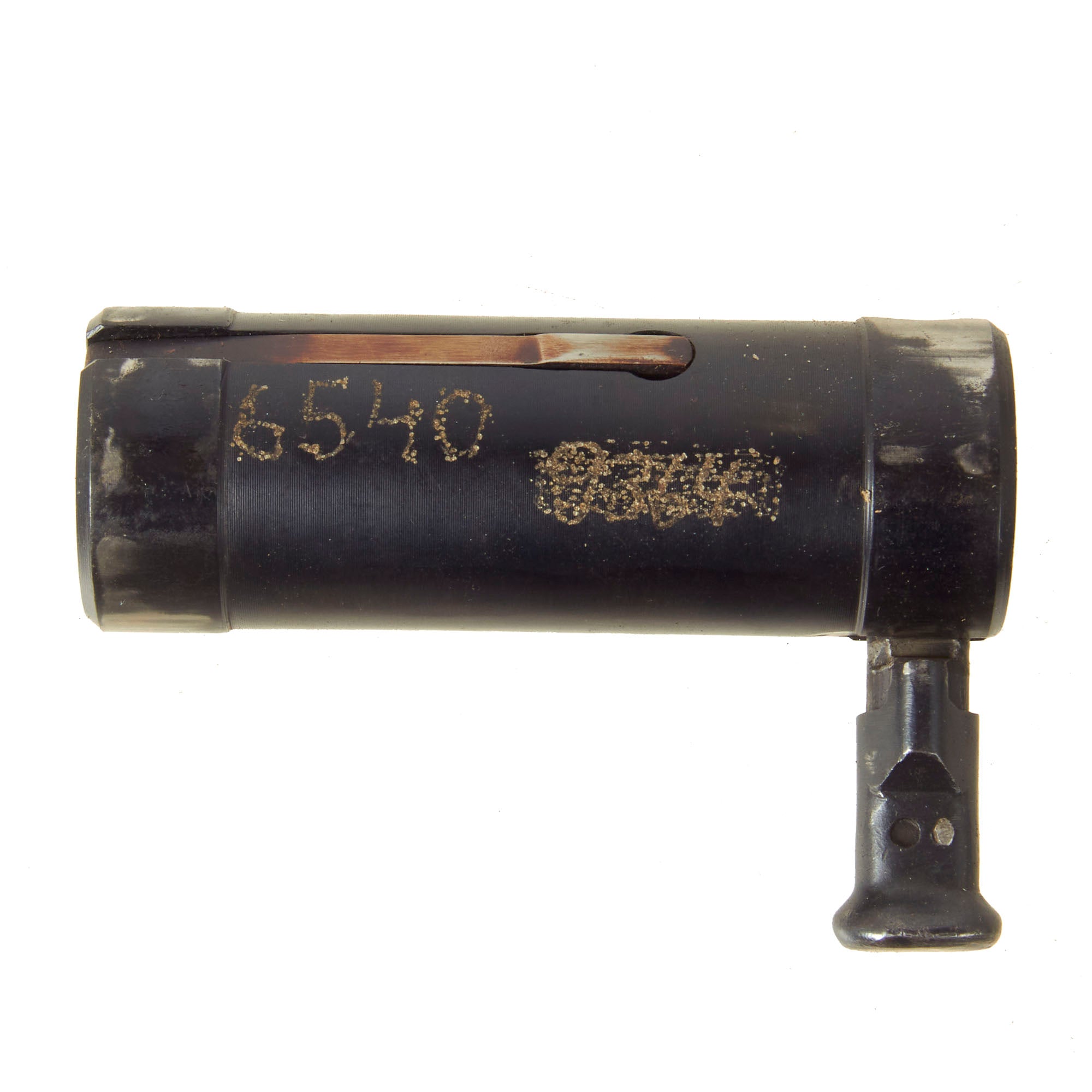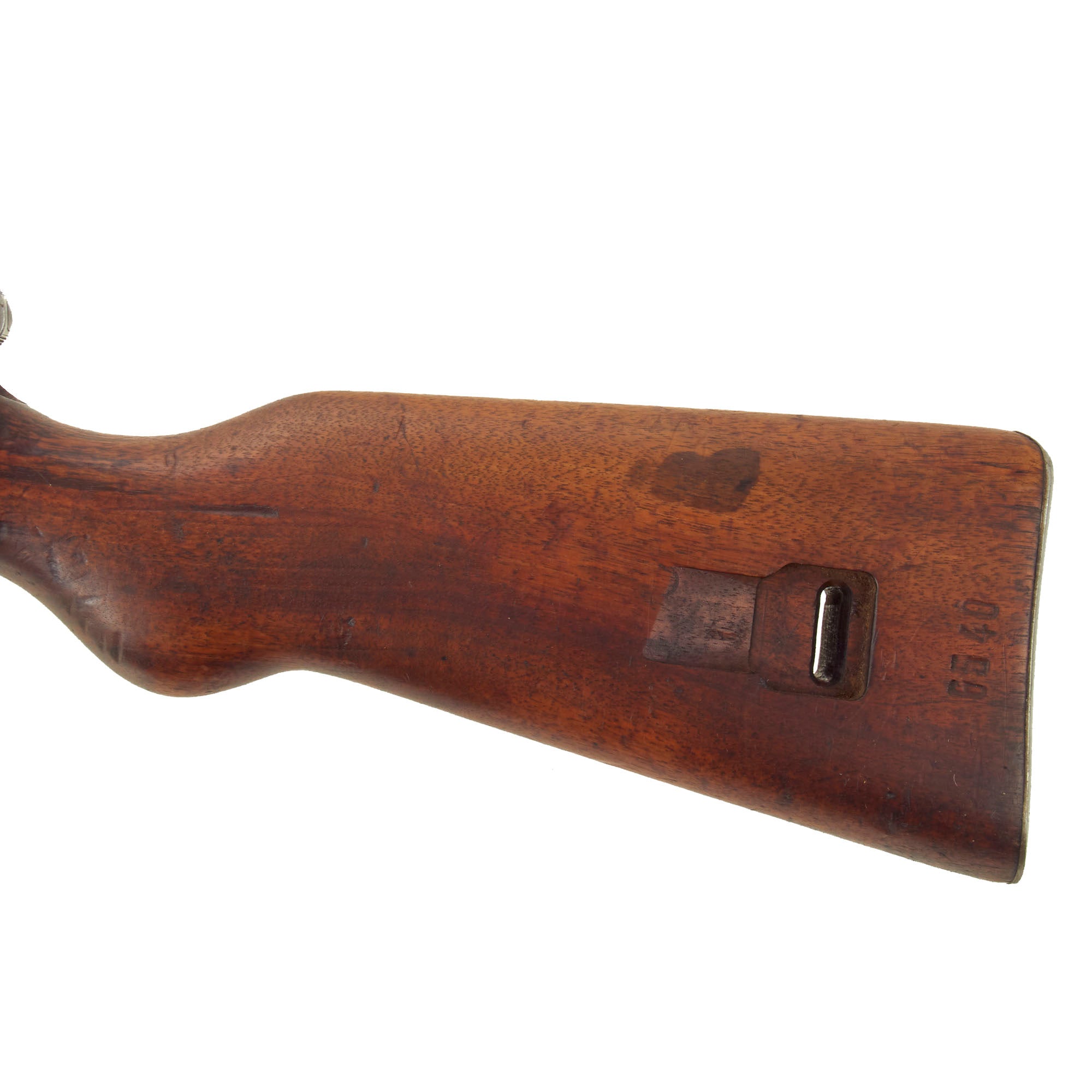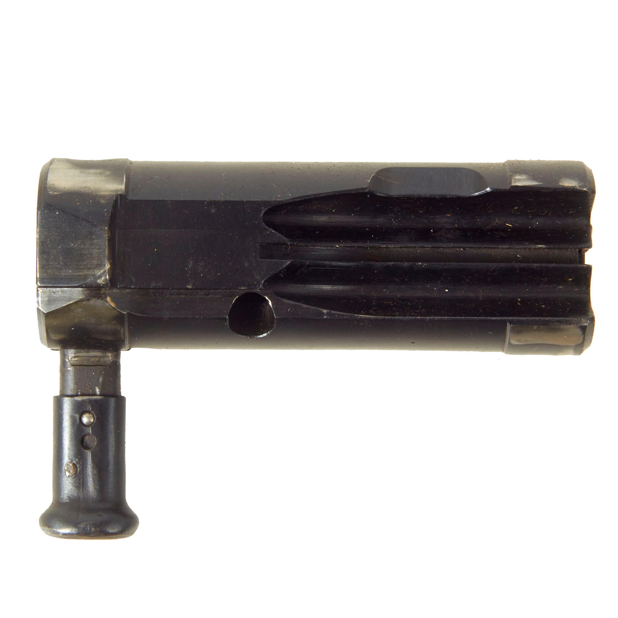 Original Item: Only One Available. This incredibly rare example features all original parts, including an original live barrel. Following guidelines provided by the BATF, the original barrel bushing and barrel have been welded to a steel dummy receiver tube, which is completely inert. There is also the required 2 inches completely replaced by solid bar stock. The original sight has been attached to the top of the receiver. The trigger still pulls, the selector still moves, and the magazine correctly locks into place. As an added bonus, we received this display gun with the original bolt and recoil assembly, as well as the ejector, which are included with this offering.