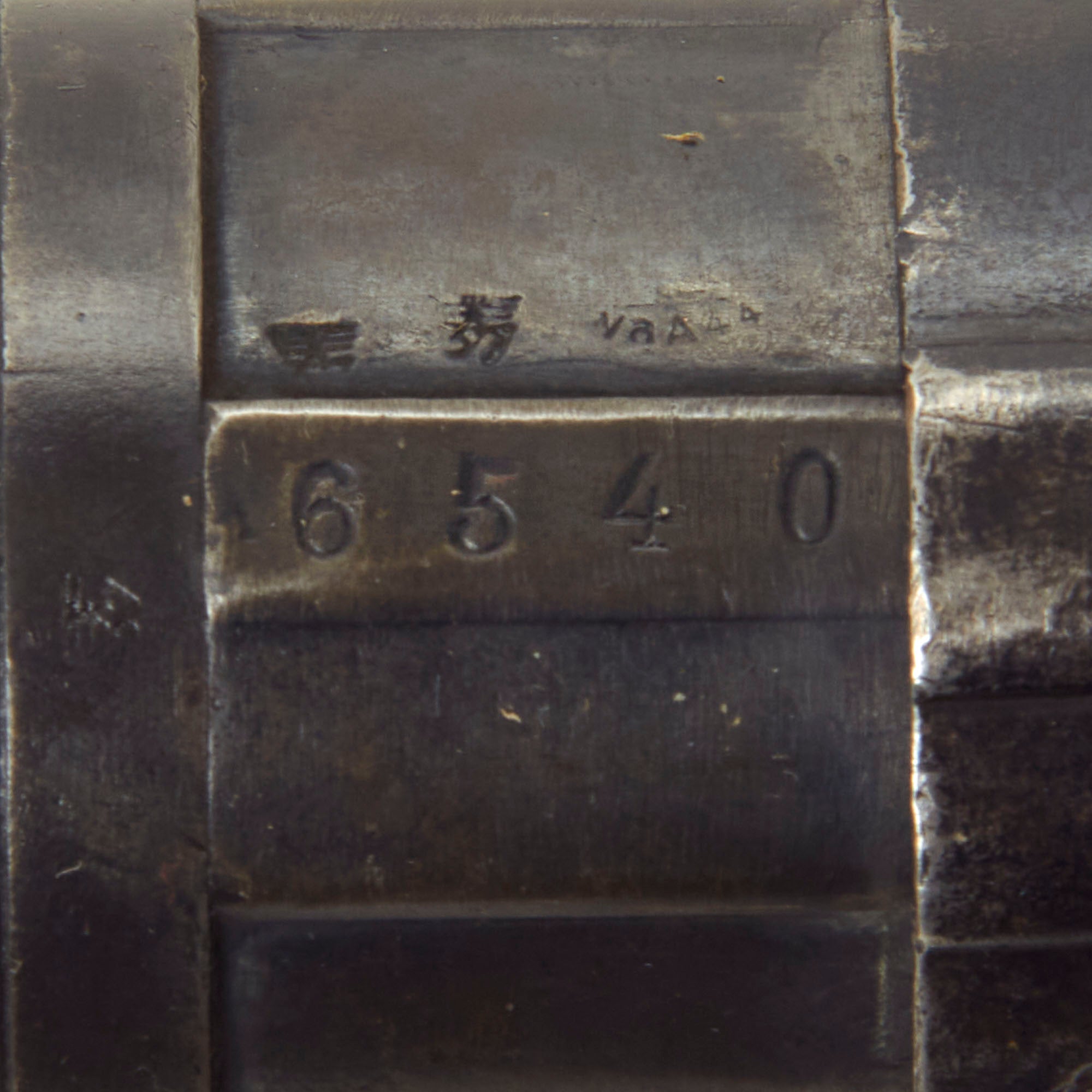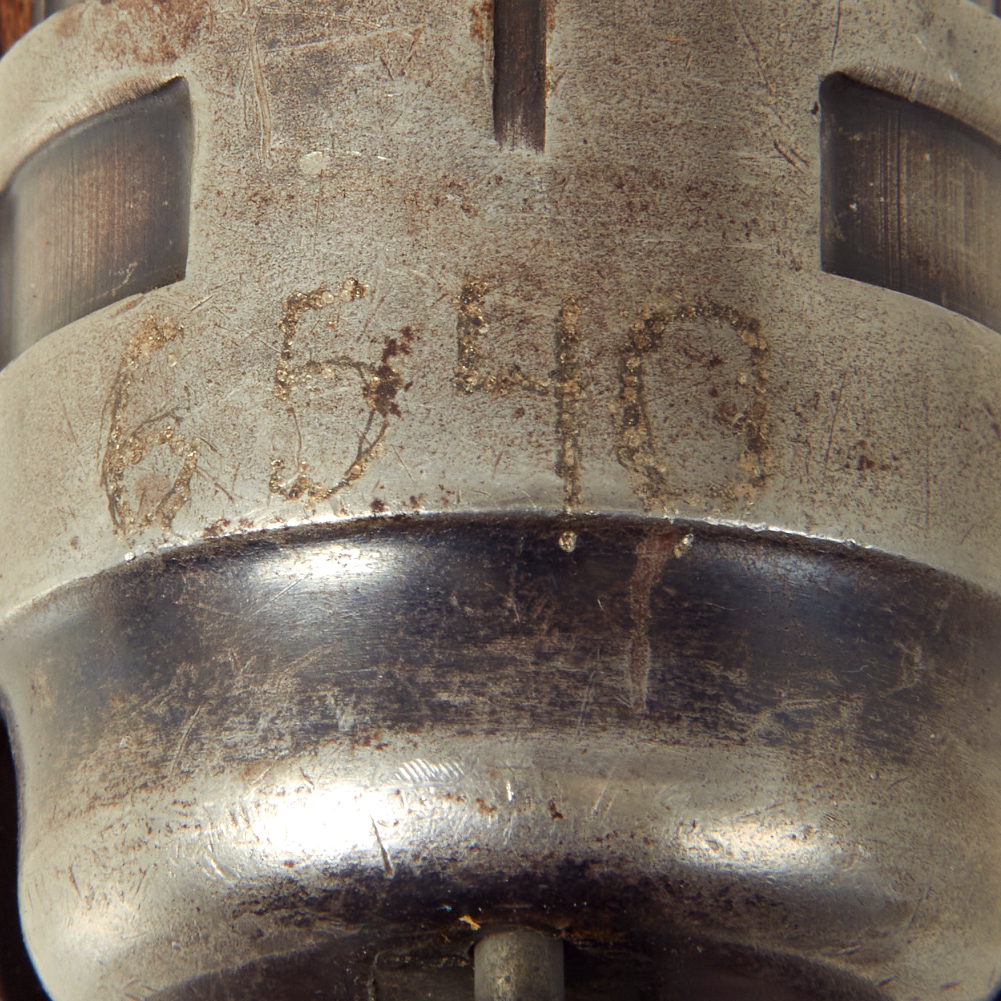 The gun is serial numbered 6540 on the barrel, on the receiver by the barrel trunion, and on the left side of the butt stock. There is also number 2476B on the bottom of the barrel, possibly an assembly number, and similar to markings see on other examples. The magazine release button and front sight base are both marked cos for Gebrüder Merz, Merz-Werke, Frankfurt, Main, a known maker of small arms components throughout the war. There are also small Waffenamt 37 proofs on various small components of the display gun, including the bolt, barrel bushing nut, barrel, and the receiver. This is the correct code for C.G. Haenel and several other companies in Suhl. There is also a Waffenamt WaA44 on the end of the receiver, associated with Auto Union, and seen on other machine guns during the period. The original ejector also bears the same marking.