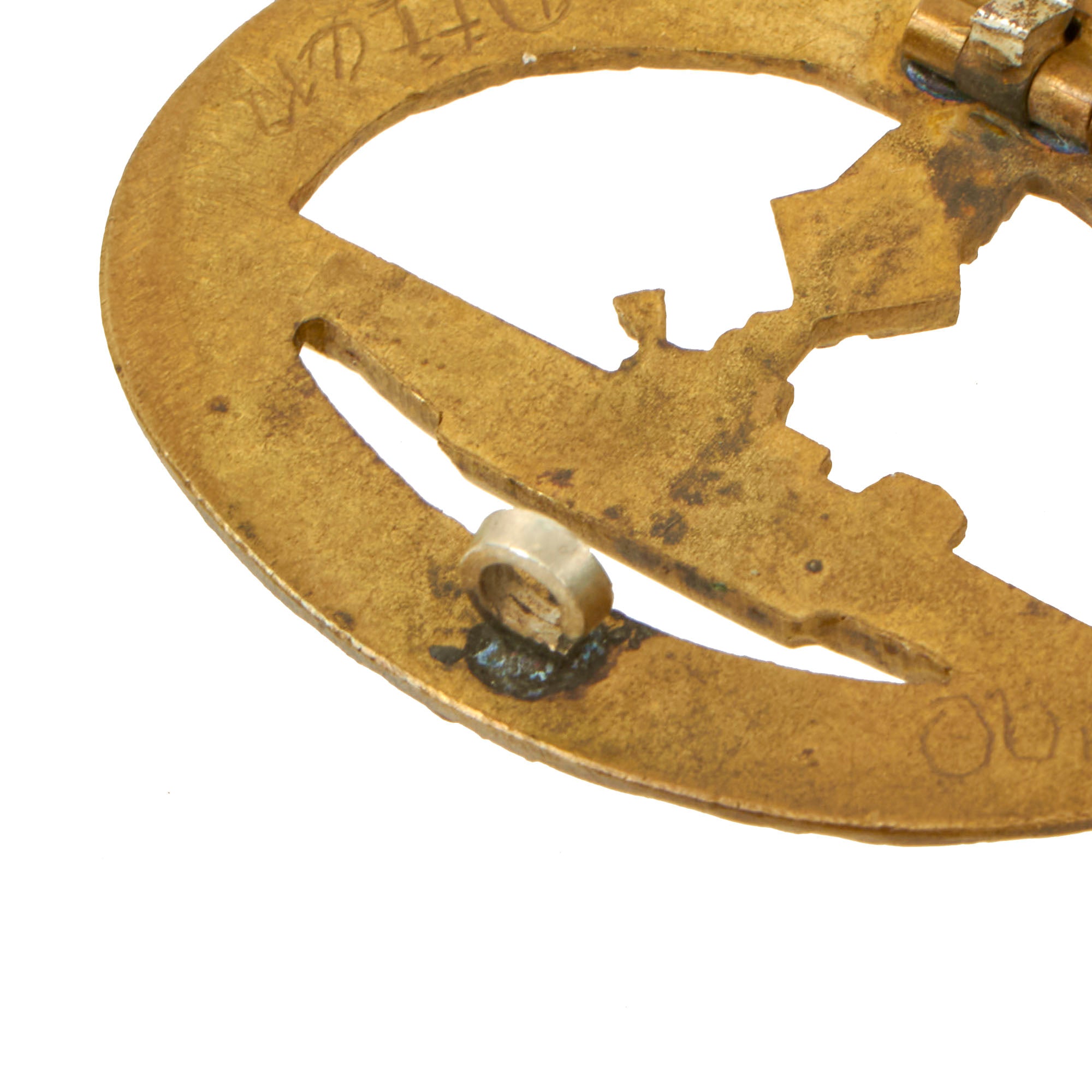 Even better, this example is marked on the back to the owner! Finely scratched into the rear of the wreath is what looks to be rank Ob. Strm. on one side, and last name Otten on the other. Obersteuermann (Chief Helmsman) is a Senior Chief Petty Officer rank with a Navigator rating. They would have been in charge of steering the U-boat under the Captain's commands.
