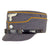 The kepi still has a nice black leather chinstrap, held in place by the correct black buttons. The interior has a blue bray rayon lining, with an ersatz faux leather sweatband, which is unfortunately quite degraded. It has many tears, and is quite delicate, having had small portions completely fall out. The pressed paper used for the faux leather unfortunately often does not stand the test of time very well. The top of the liner shows sweat or rain staining, and the original celluloid sweat shield is completely missing, with only the stitch marks remaining.