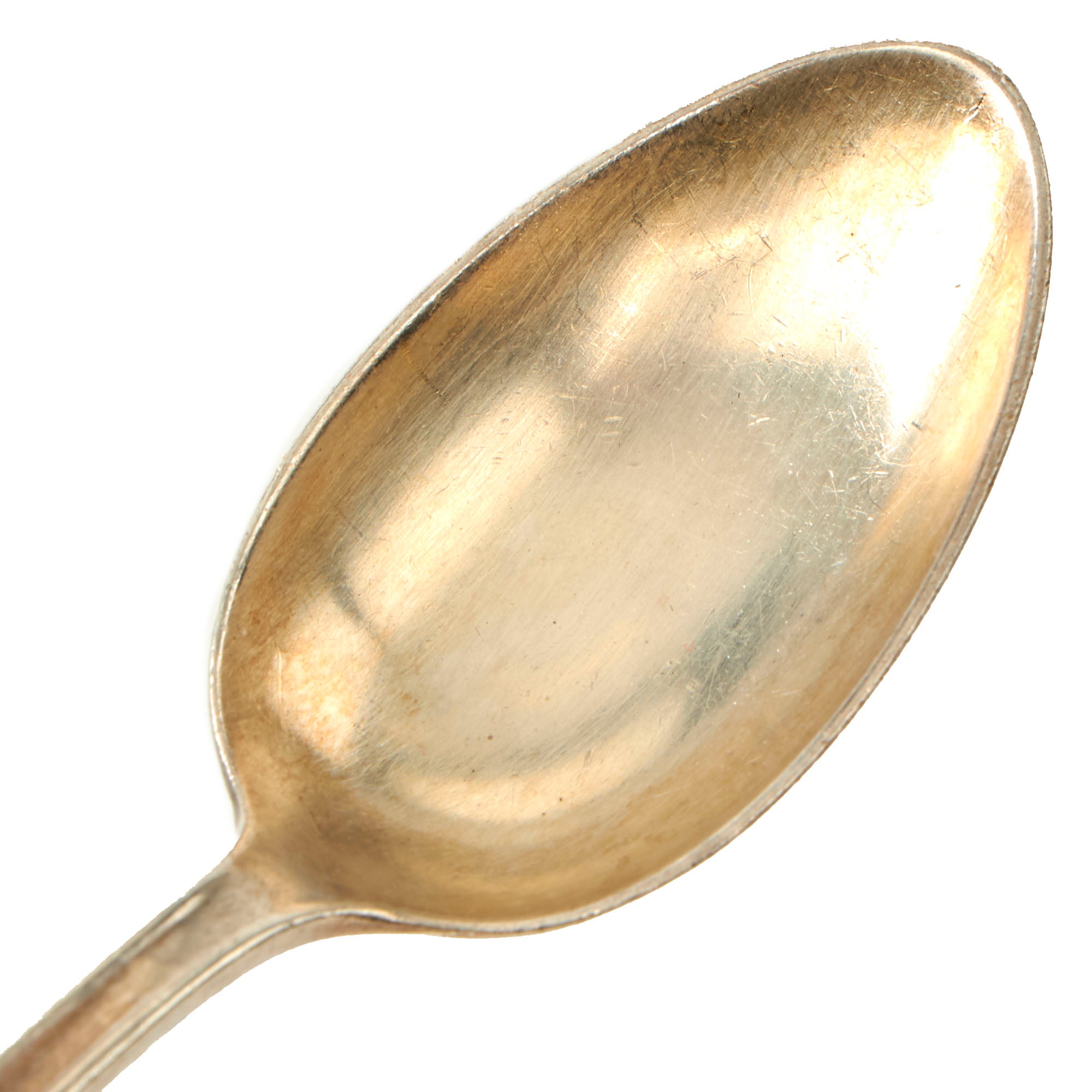 The teaspoon shows wear and swirling overall, with a bit of tarnish in the finish. A very interesting piece of Third Reich memorabilia!