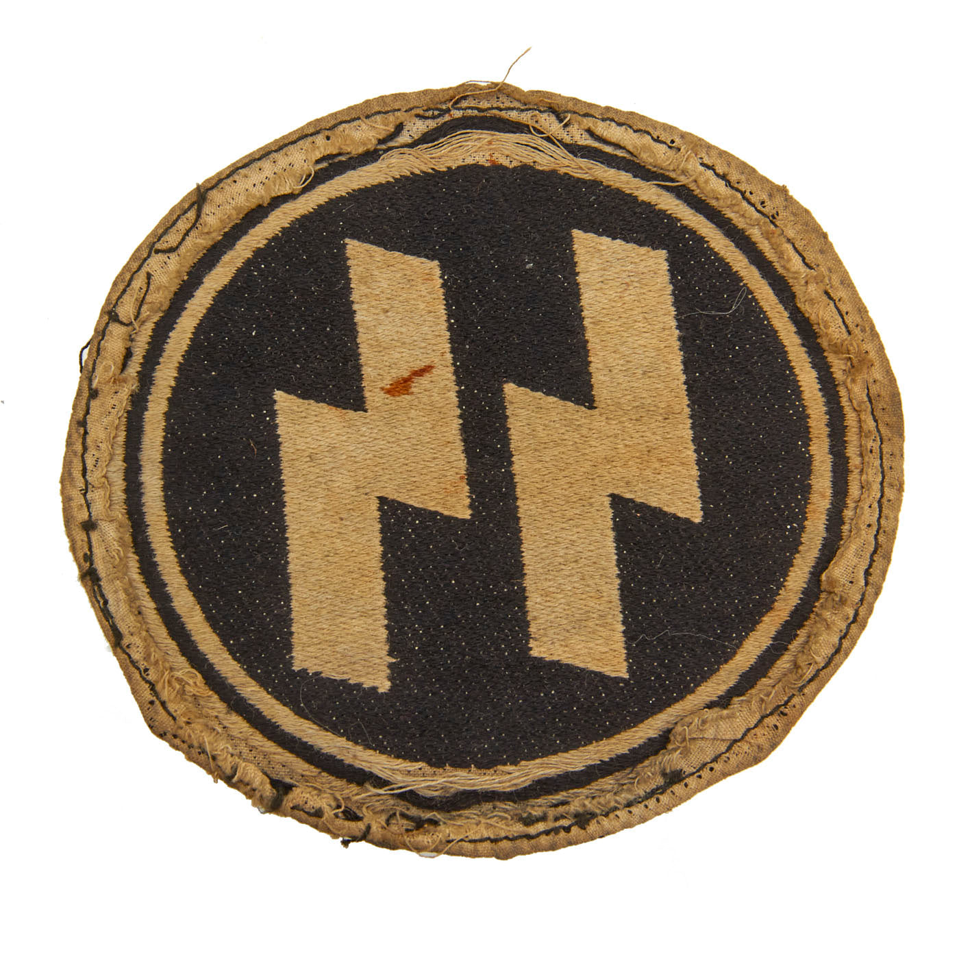 Embroidery was not easily accomplished on shirts, and it was much more economical to produce the insignia separately, and sew them on later as a completed patch. This patch would have been on the center of the chest and features an ᛋᛋ doppelte Siegrune (Double Sig/Victory Rune) machine embroidered insignia. This would have been machine produced, issued on a rectangular piece of fabric, which was folded under, as with this example. Proper training was paramount to the SS, who were supposed to be the pinnacle of the NSDAP German armed forces.