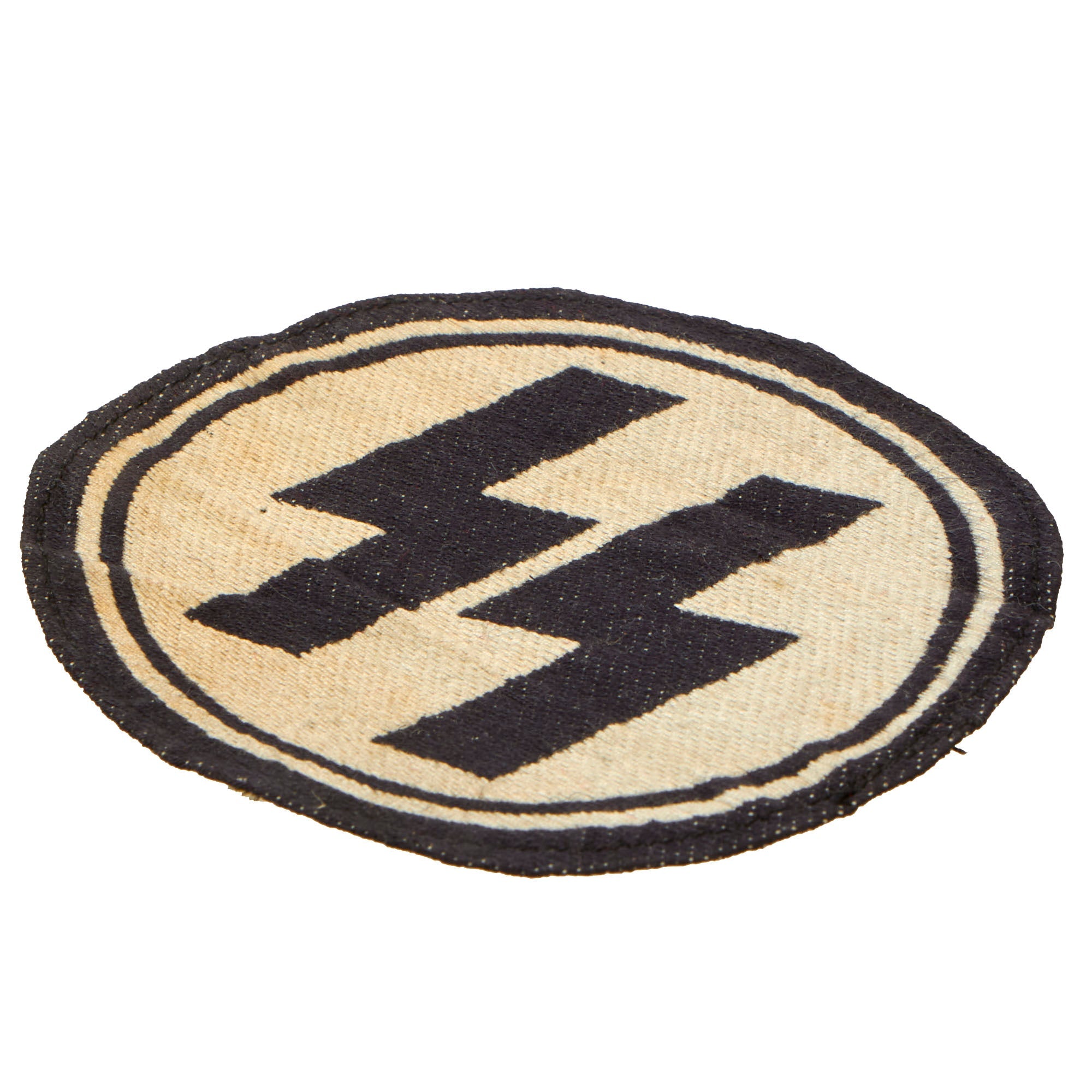 Embroidery was not easily accomplished on shirts, and it was much more economical to produce the insignia separately, and sew them on later as a completed patch. This patch would have been on the center of the chest and features an ᛋᛋ doppelte Siegrune (Double Sig/Victory Rune) machine embroidered insignia. This would have been machine produced, issued on a rectangular piece of fabric, which was folded under, as with this example. Proper training was paramount to the SS, who were supposed to be the pinnacle of the NSDAP German armed forces.
