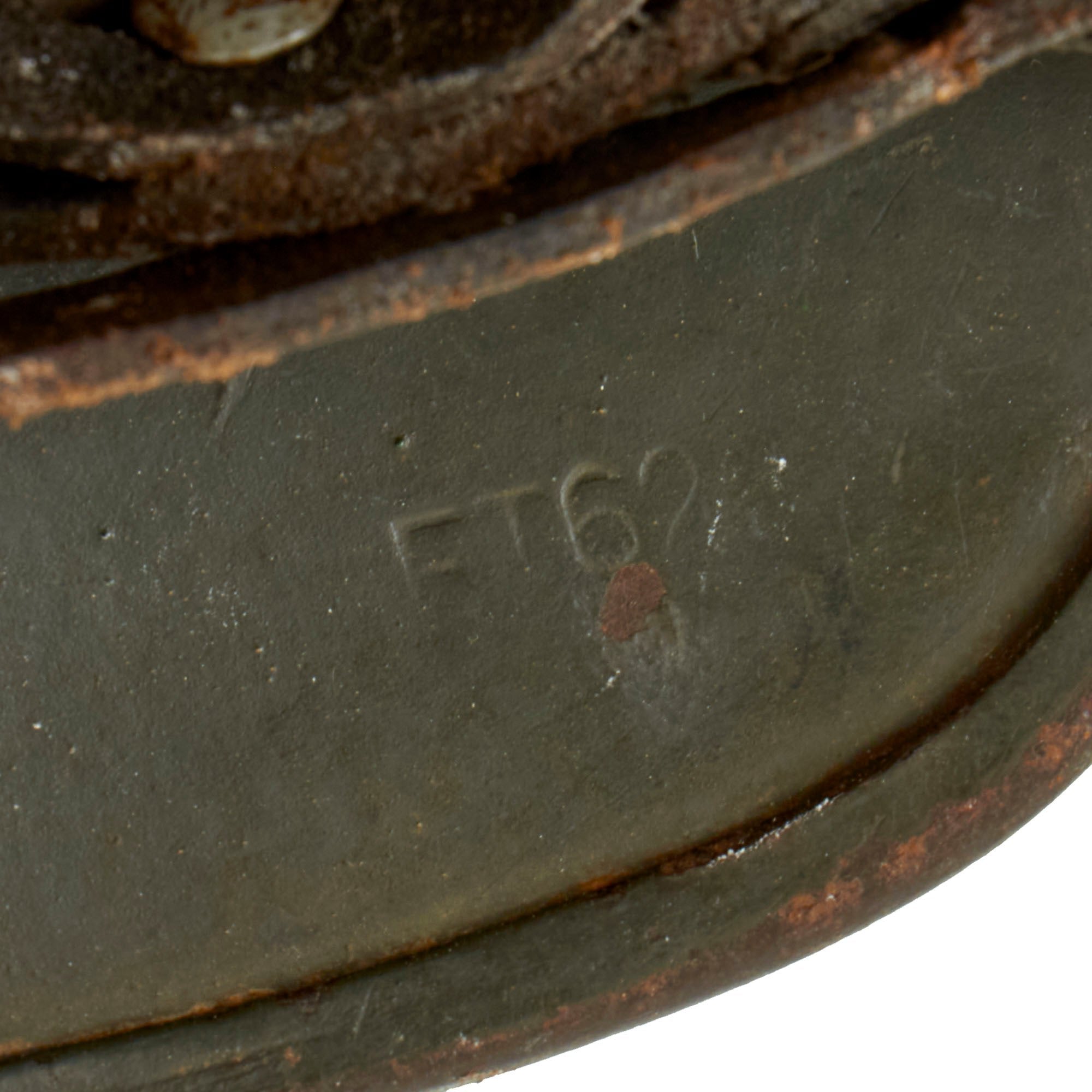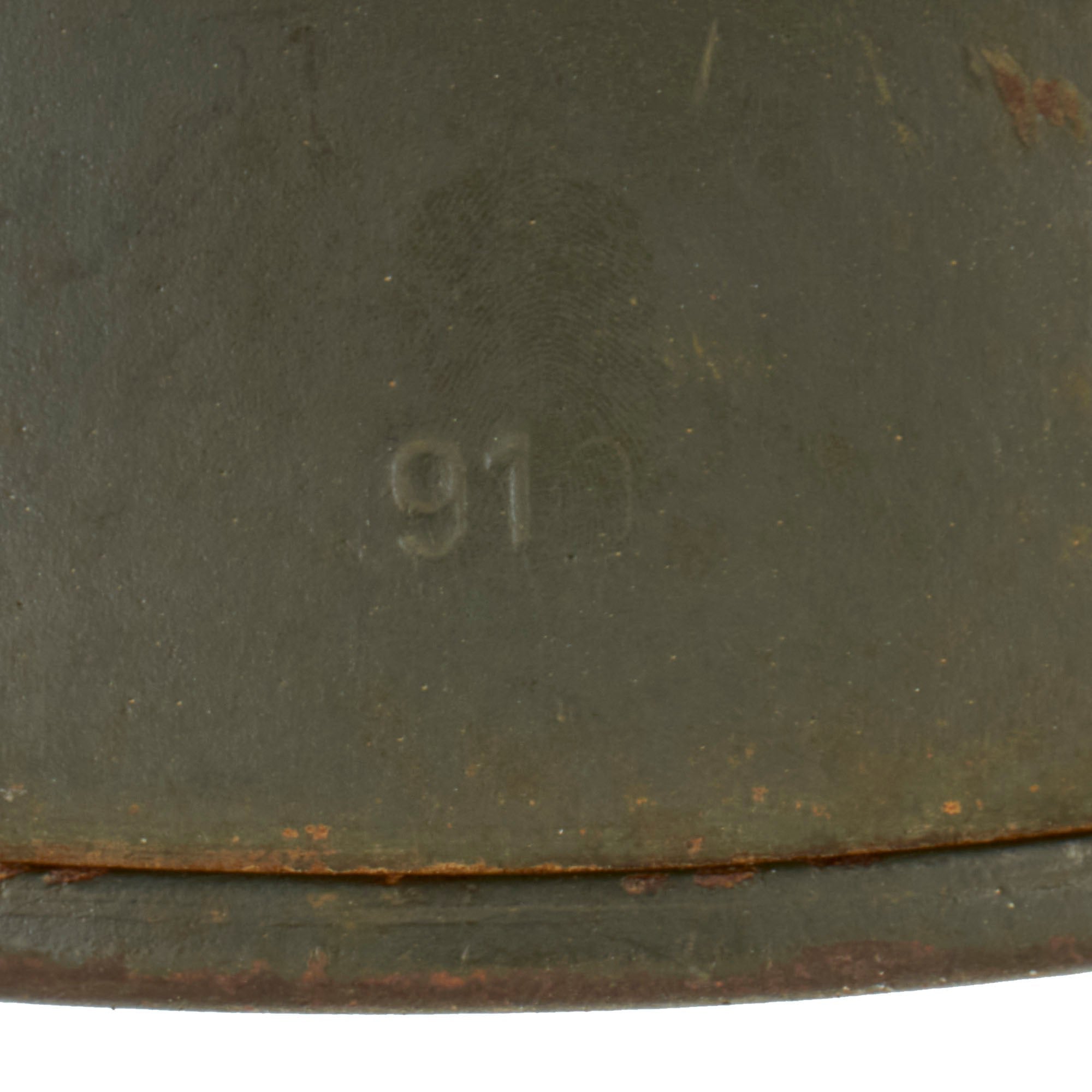 Eisenhüttenwerk AG would later change manufacturer code from ET to CKL, which occurred during final production of the M40 and initial production of the M42 models. M42s can be found with ET stamps and M40s with ckl stamps. The change to an ordnance code (ckl) was to protect the identity and location of the manufacturer from the Allies. Notice the lot number 910. The lot number indicates the particular batch of sheet steel that was used when a quantity of helmet shells were produced. This was accomplished through several steps of press-forming or hot-stamping the shells. The lot number serves as a control number for the manufacturer and as an extra stamp of approval.