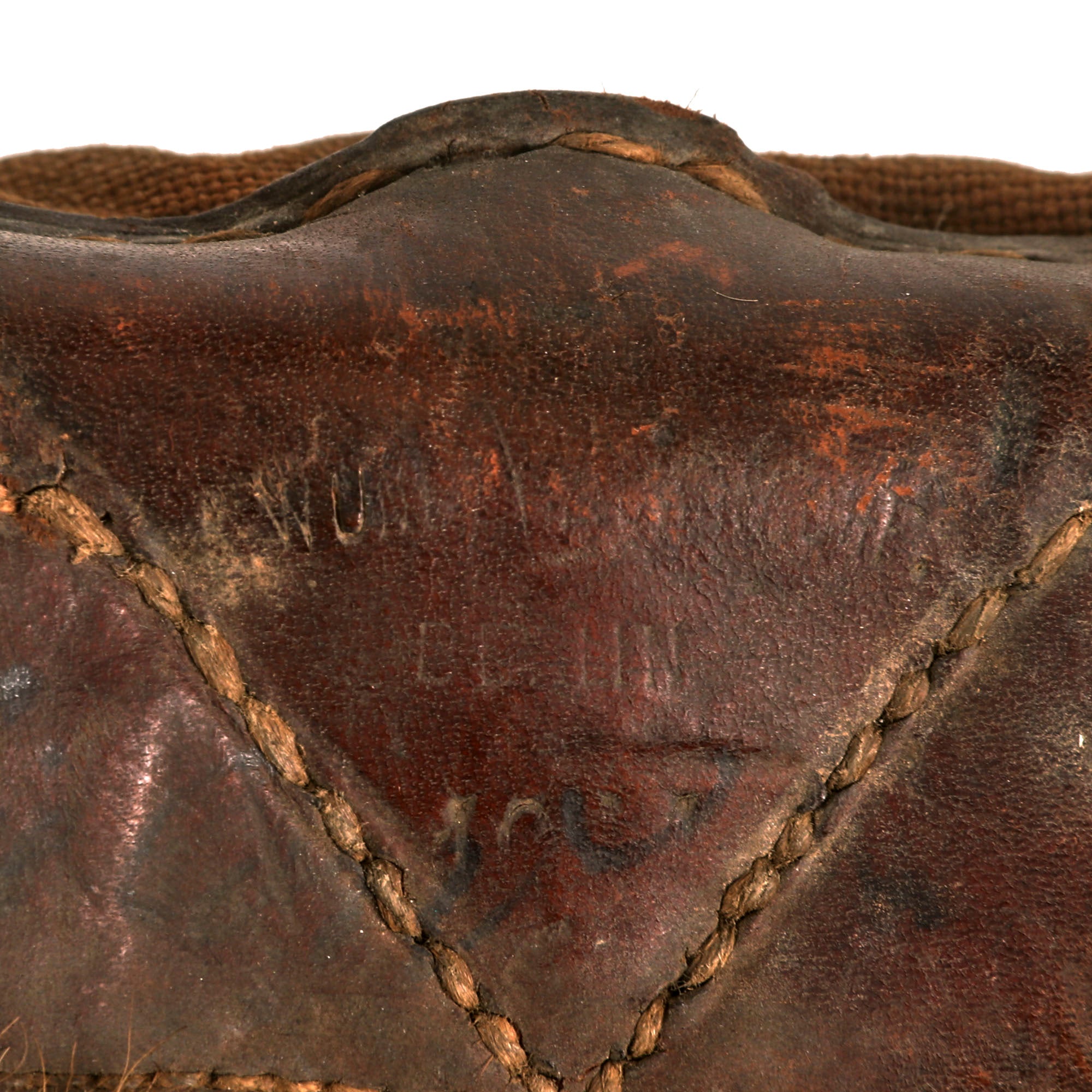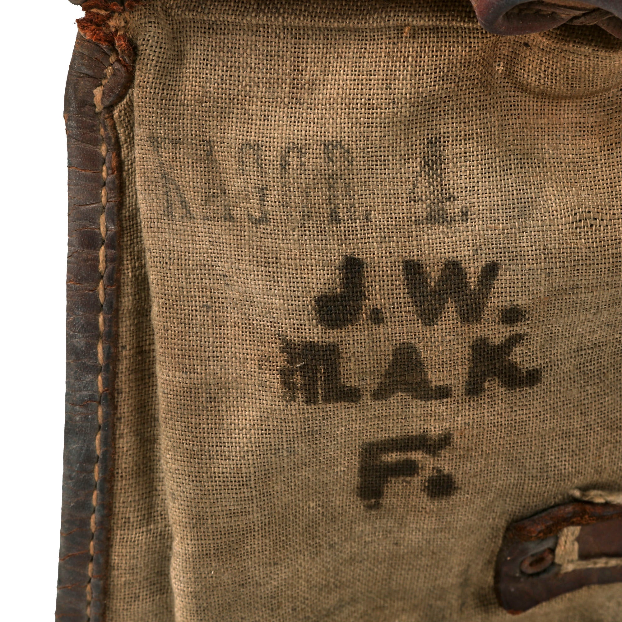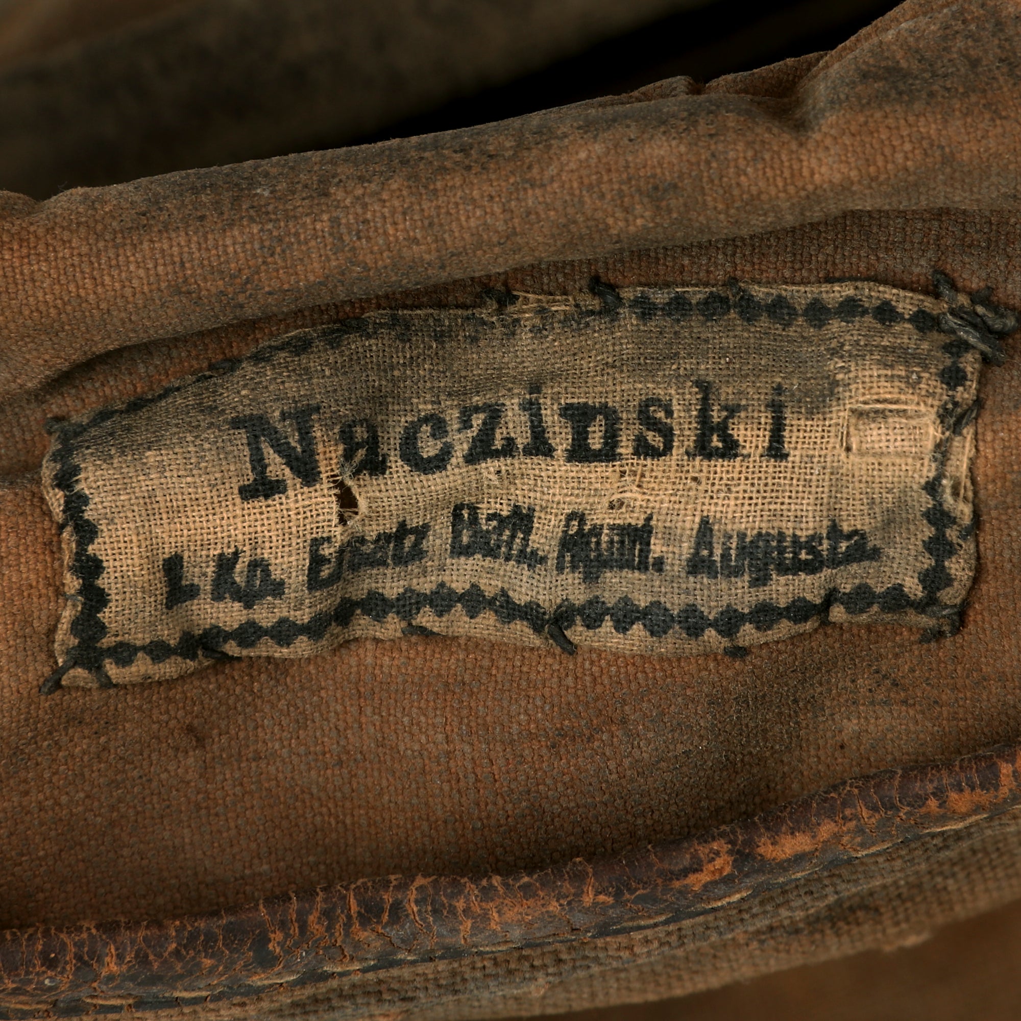 The exterior flap looks to have a name on it, possibly Karl Muller, and there looks to be a maker mark on the rear between where the straps attach, though we can only make out BERLIN clearly. There are also additional markings on the inside, including K.A.G.G.R. 4., for the Königin Augusta Garde-Grenadier-Regiment Nr. 4. Also known as the 4th (Queen Augusta) Guards Grenadiers, this unit was first raised 5 May 1860 and was garrisoned in Berlin. There is however also a name tag on the bottom of the pack, which reads as follows: