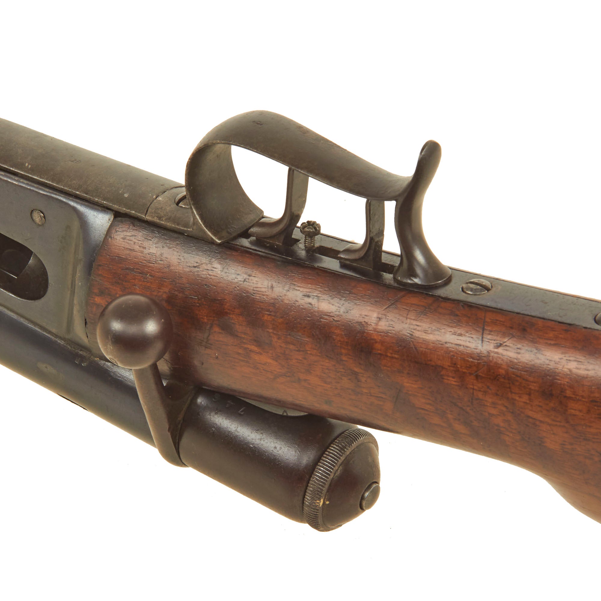 These antique guns are not sold in "live" condition, and are not tested for the the ability to feed or load any type of cartridge. They are sold as collector's items or as "wall hangers" not for use, and we make no guarantees regarding functionality aside from what is stated in the description. Any attempt at restoring an antique gun to be operational is strongly discouraged and is done so at the risk of the customer. By purchasing an antique gun from IMA you thereby release IMA, its employees and corporate officers from any and all liability associated with use of our Antique guns.