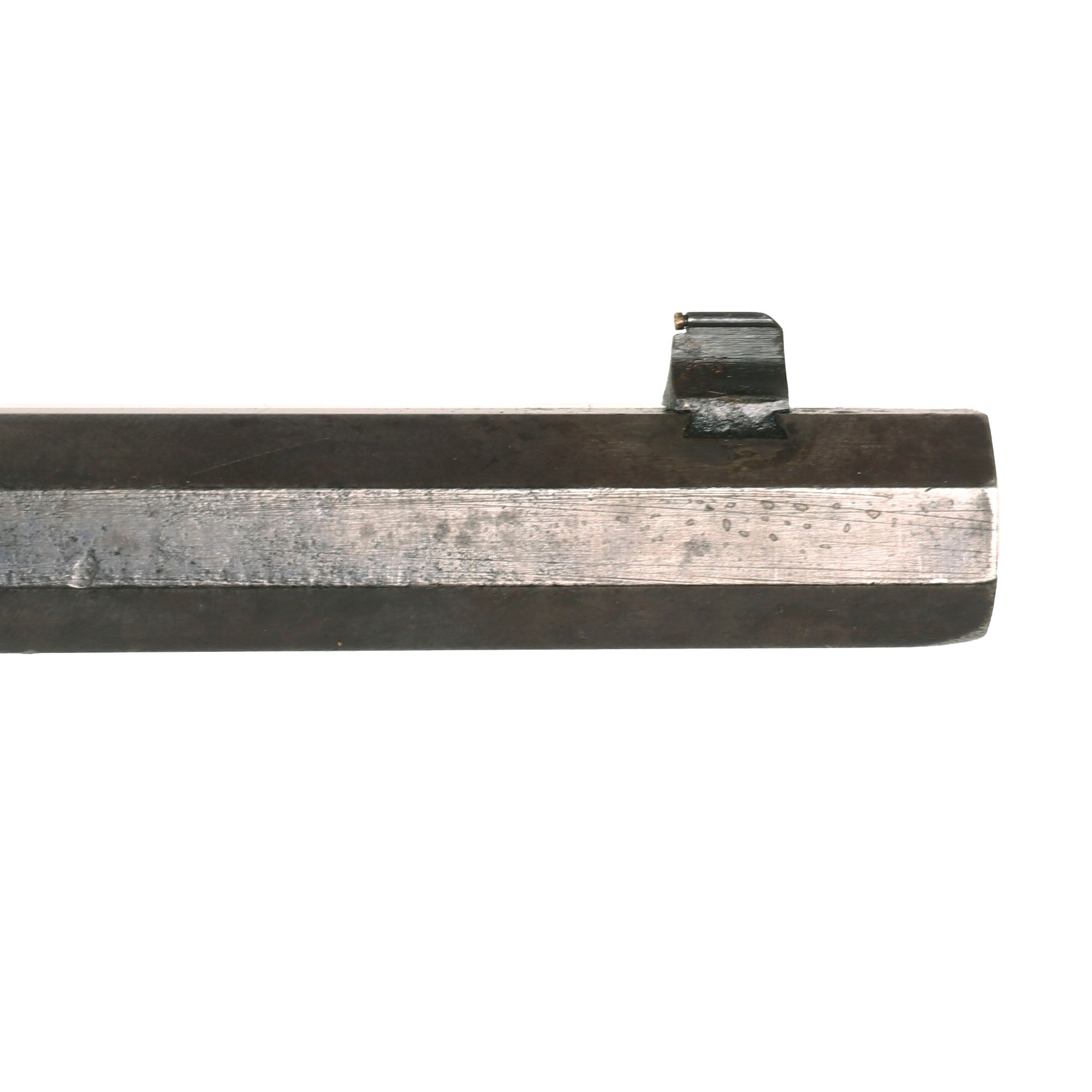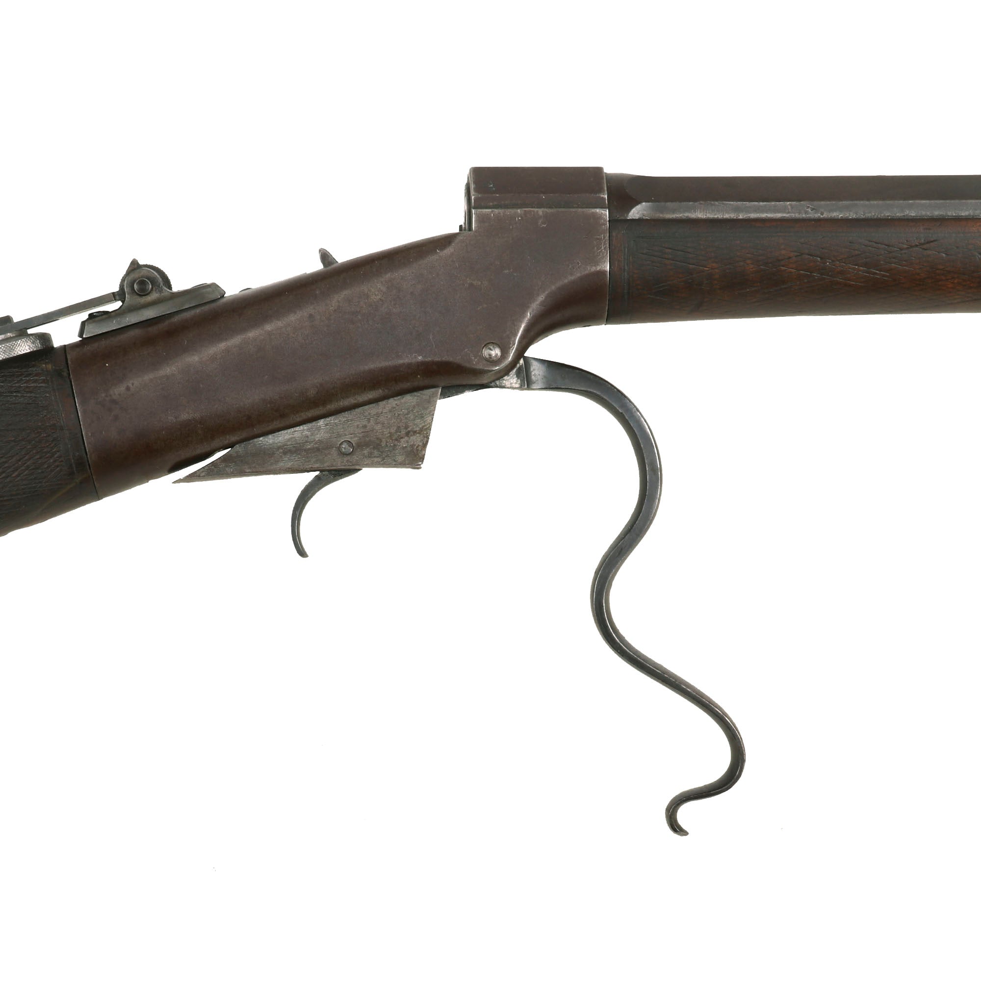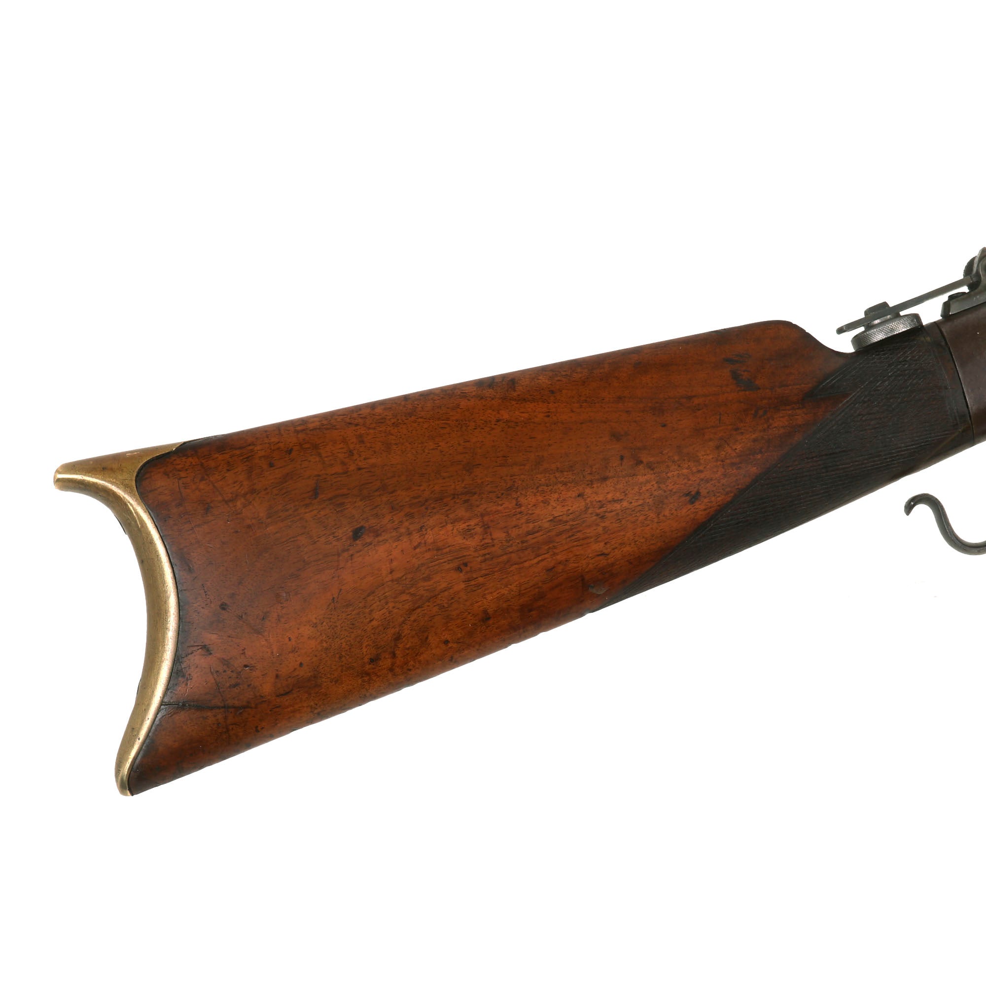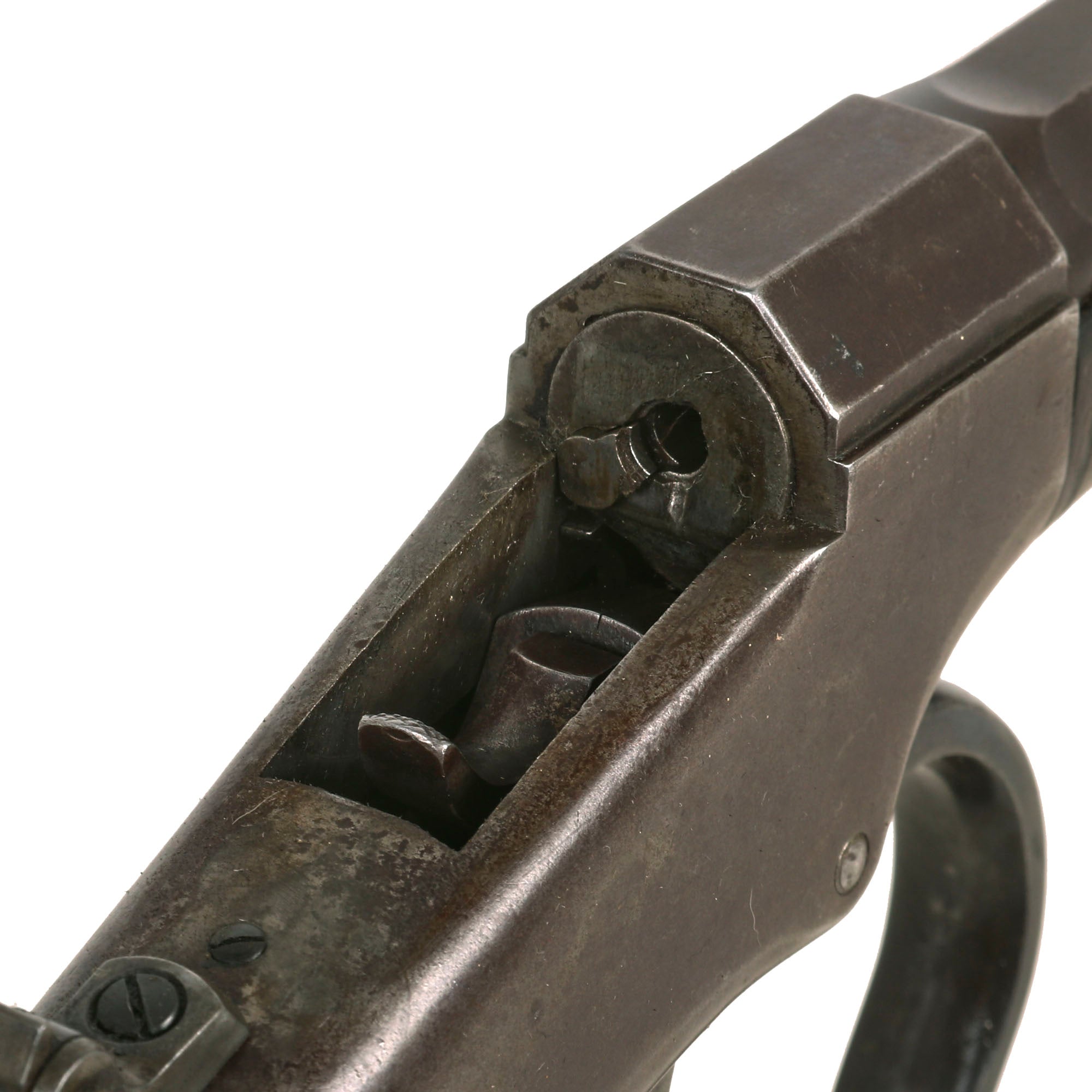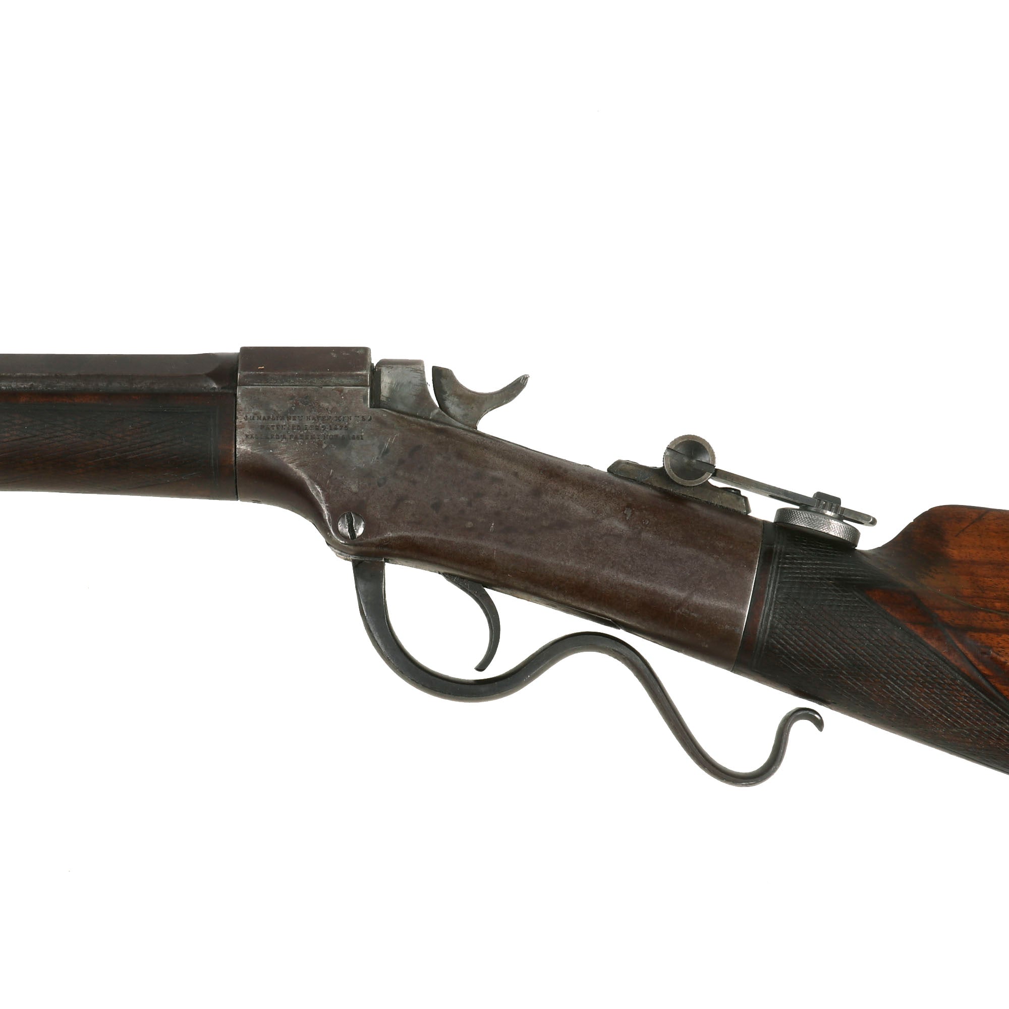 Original Item: One of a Kind. This has to be seen and handled to be justly appreciated. It is in really excellent condition, and comes fully Factory engraved with Deer and Buffalo/Bison featured on either side of the frame. It bears serial number 3130 on the bottom front of the receiver, indicating manufacture before 1883, which is when Marlin records start. The HEAVY Octagonal barrel is 28" in length, and with the .22cal rimfire ammunition, probably would barely move when in use. Overall length of the rifle is 43 5/8 inches, and this was definitely intended for use with the match shooting craze of the late 19th and early 20th century.