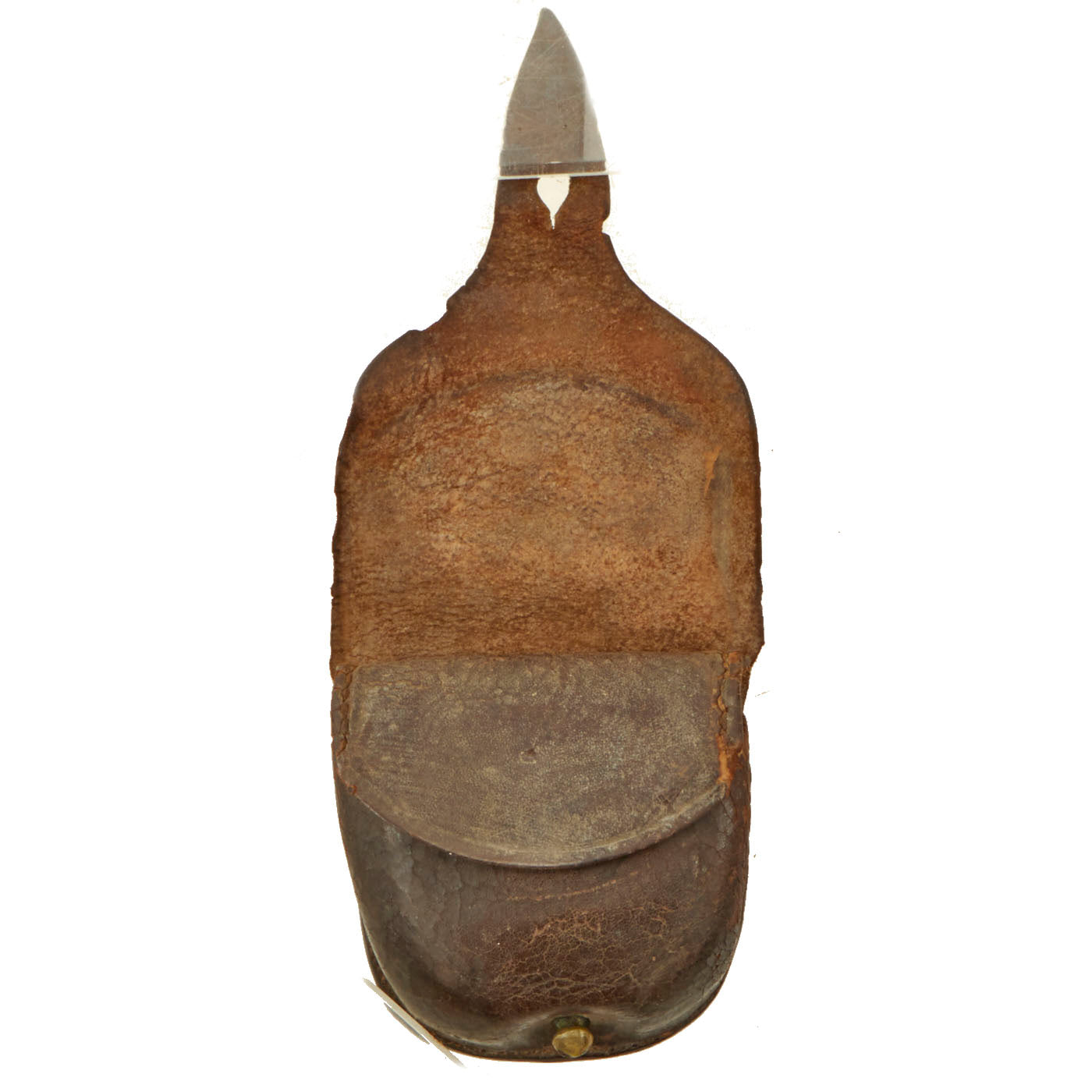 Original Item: Only One Available. Classic example of a Confederate Issue Cap Pouch. The pouch exhibits many of the features of a Confederate-made cap pouch, which generally are cruder in construction than their Union U.S. Issued counterparts.
