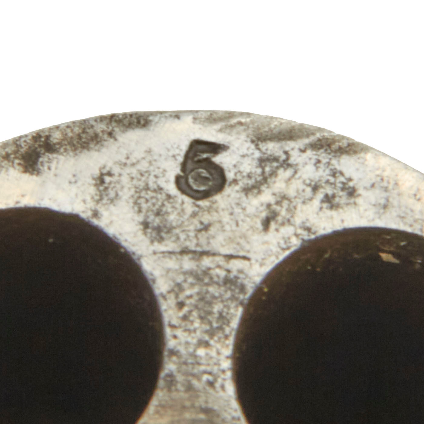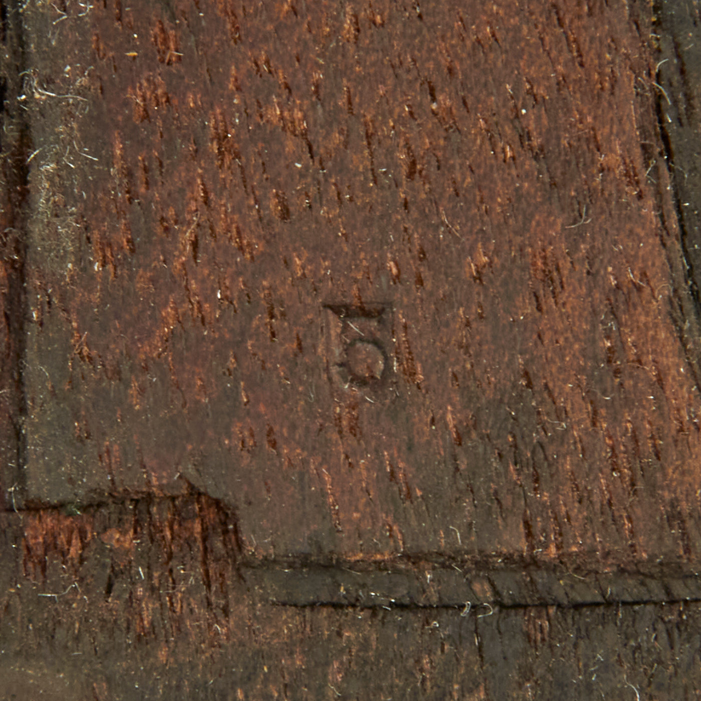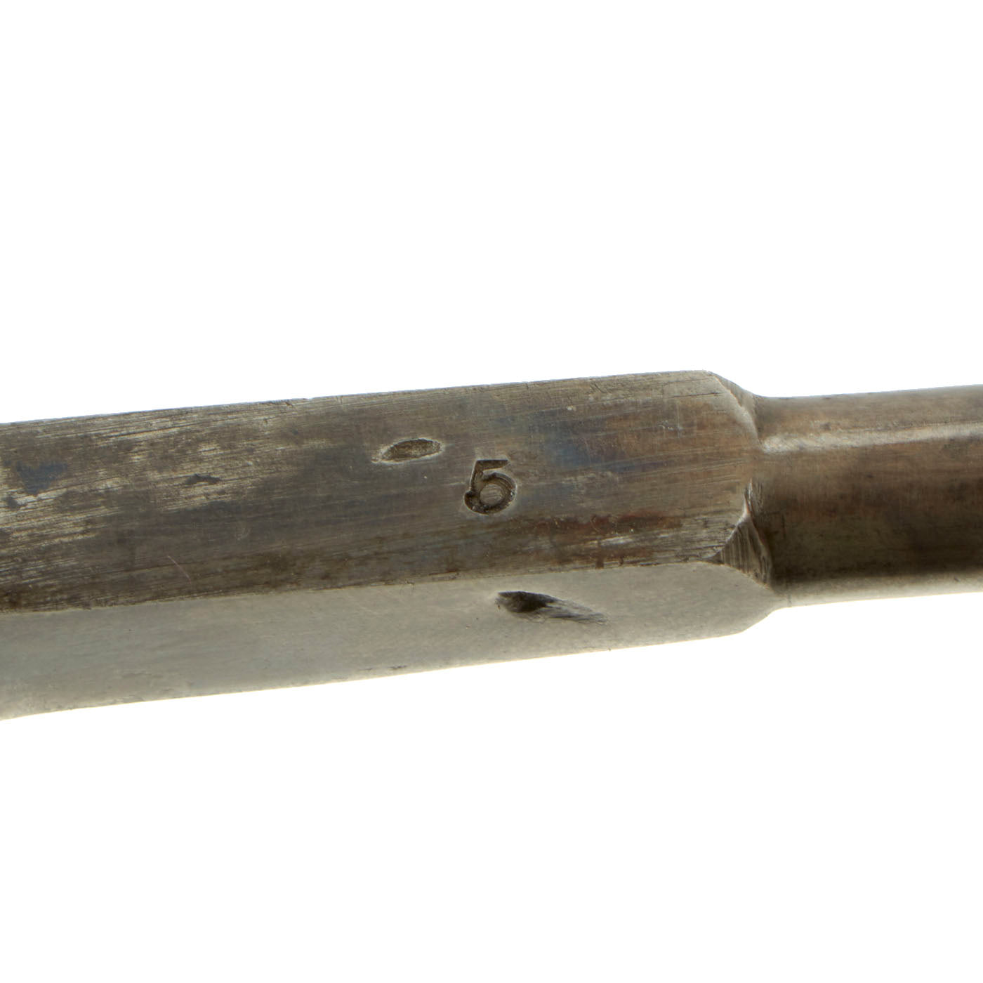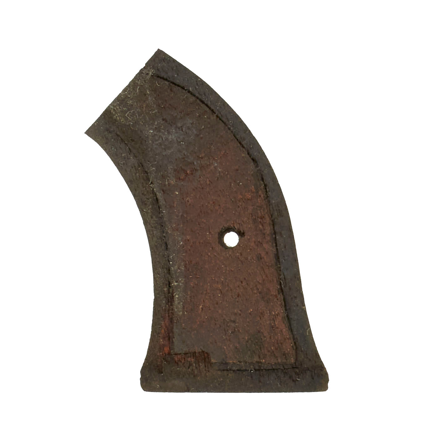 Our expert gunsmith team has improved upon the old repairs making it mechanically sound (though we do not recommend firing it) and aesthetically pleasing. This example has no visible markings aside from the serial number 5 on the barrel, loading lever, inside of the trigger guard, left side of the toe, and inside of the grips and an "F" on the right side at the toe. The hammer and trigger guard bow are scroll engraved, but the rest of the gun is plain.