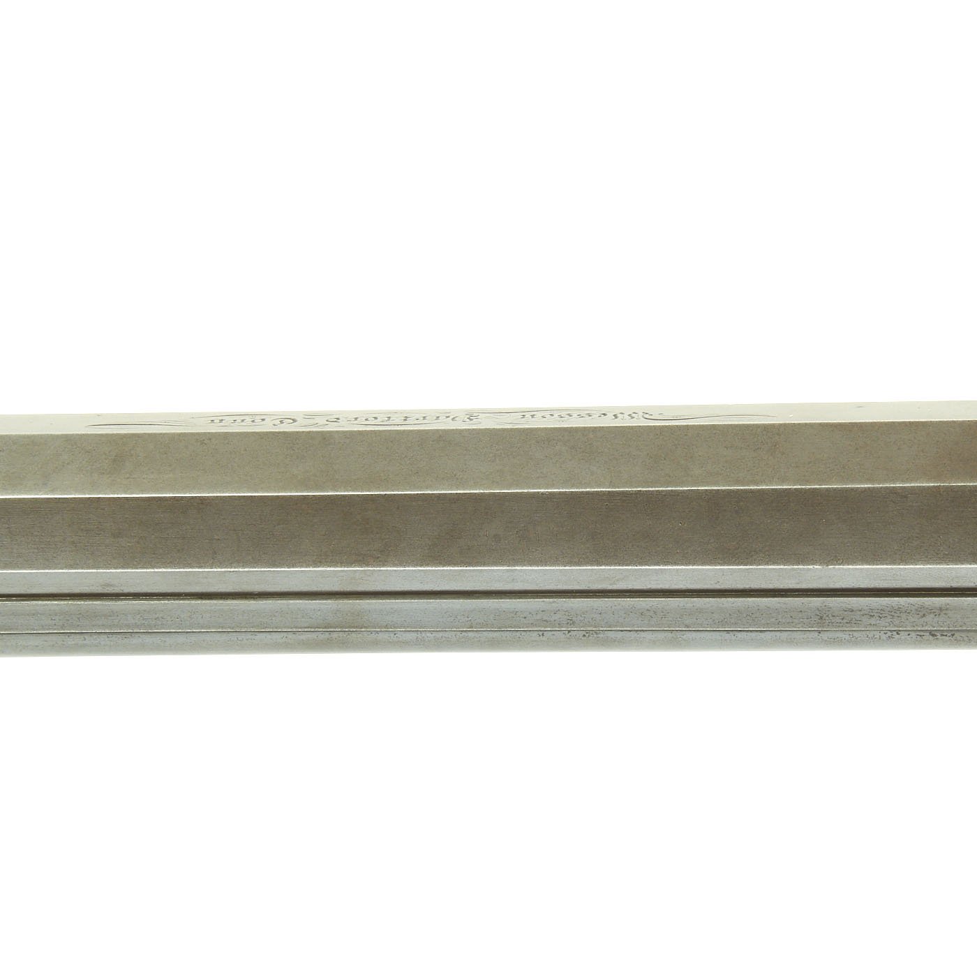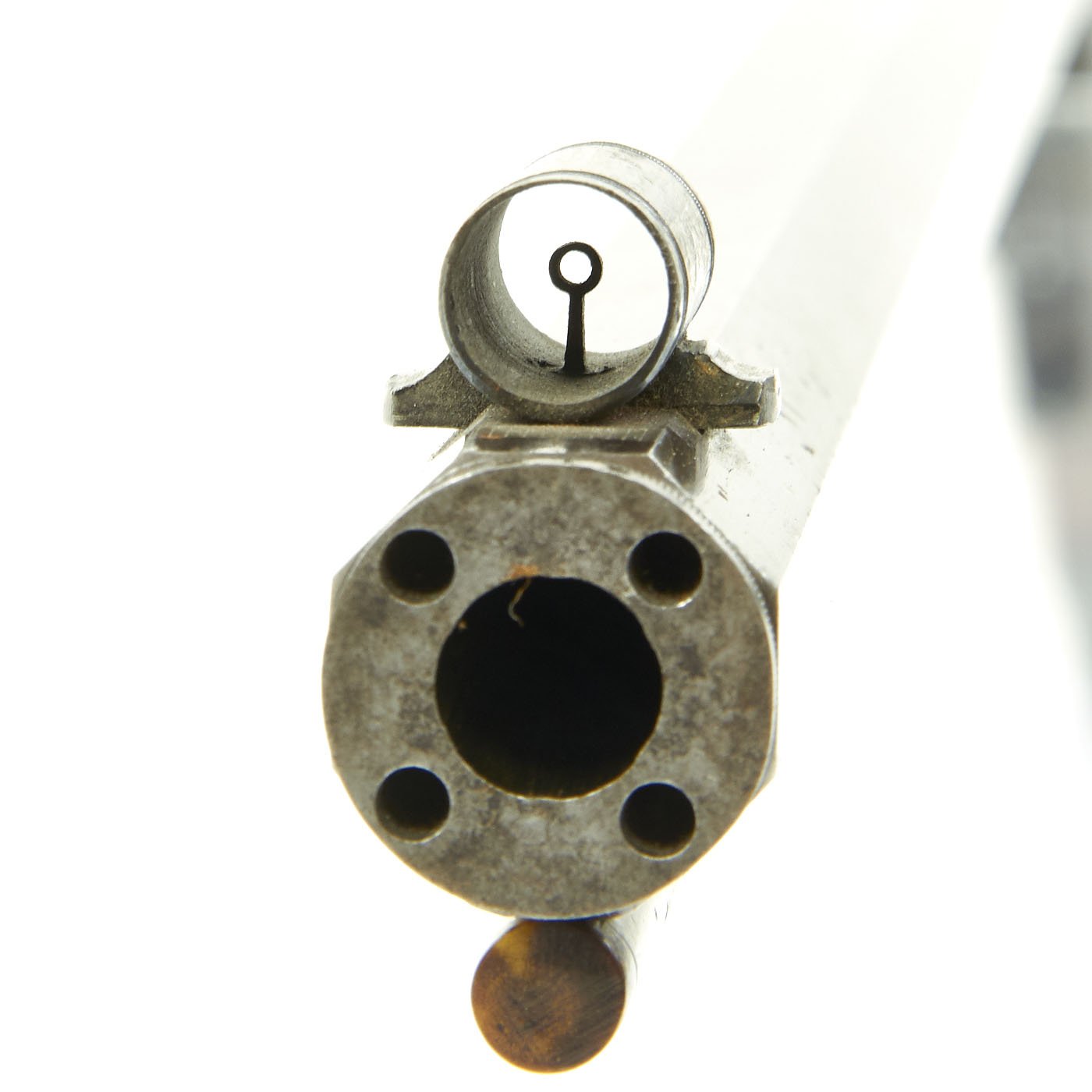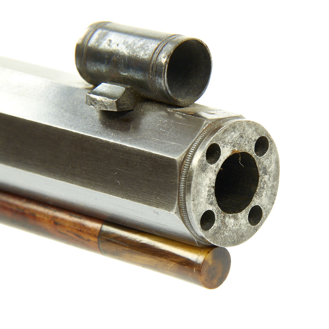 Our example features a GOLD outlined Octagonal Barrel of 25 inches in length, the muzzle equipped for use with a "Bullet Starter"to facilitate loading again. This would groove the bullet before entrance into the actual bore, reducing wear on the barrel muzzle significantly. This type of device was even used with breech loading firearms, again to improve accuracy and reduce barrel wear. More information on Edwin Wesson and his rifles can be found at the wonderful Littlegun Info website at this link: EDWIN WESSON.