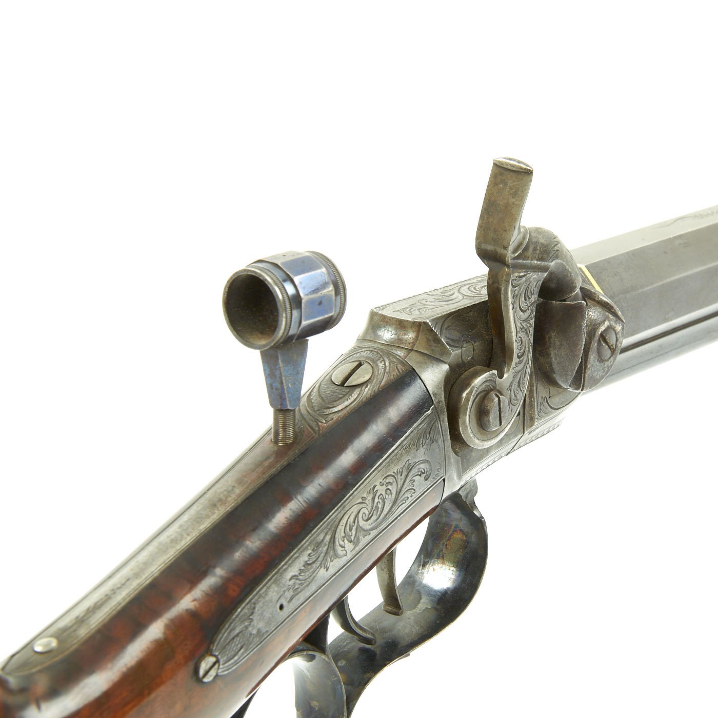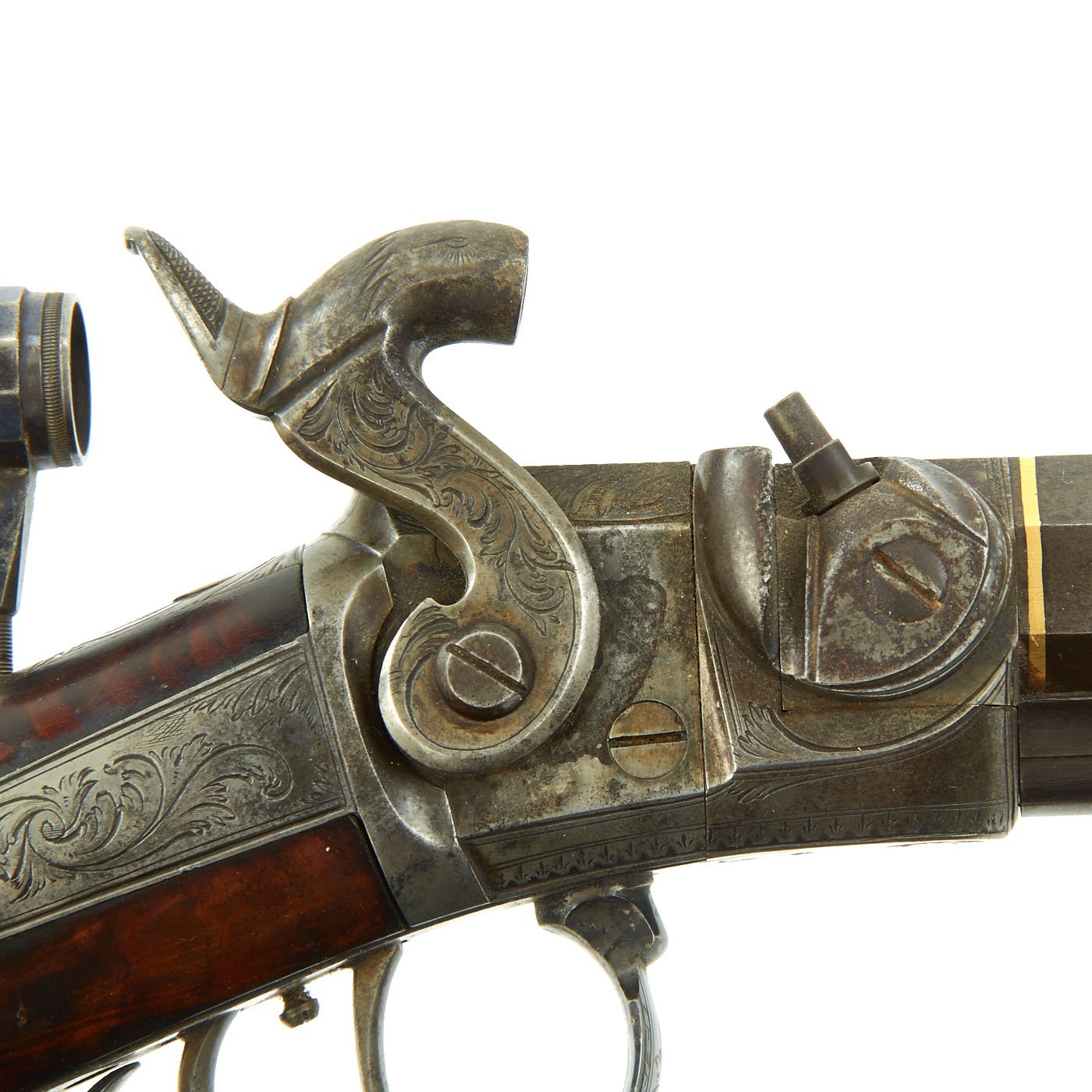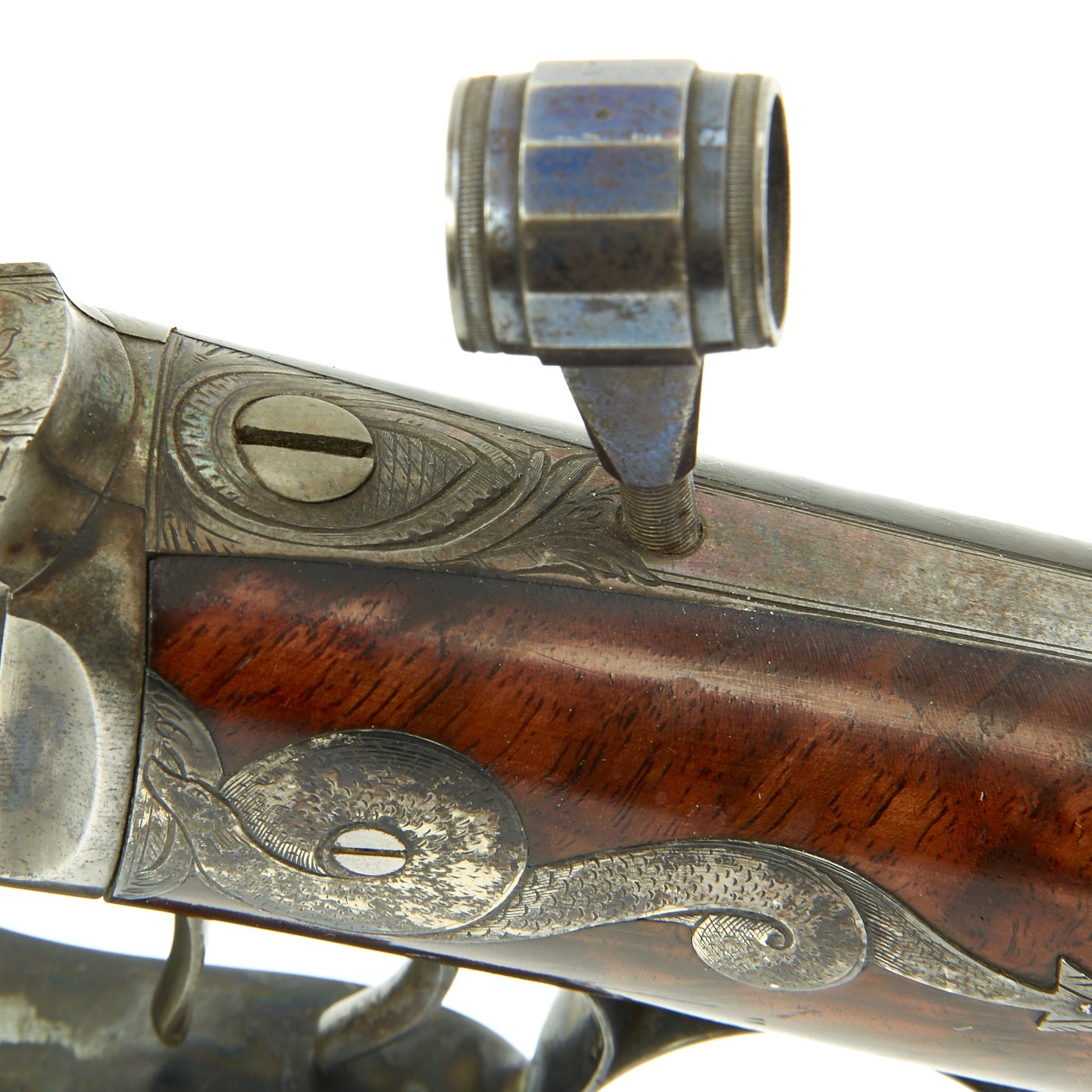 These were the type of extremely accurate Match Rifles of the period that were used by SHARPSHOOTERS in the Civil War, fitted with barrel length telescopic sights. If you consult the Internet under EDWIN WESSON you will find a fine but lesser example currently in THE NATIONAL MUSEUM OF AMERICAN HISTORY carried in battle by Edwin J. Stanclift of the 8th. Company, 1st. Battalion of the NEW YORK SHARPSHOOTERS during the Civil War.