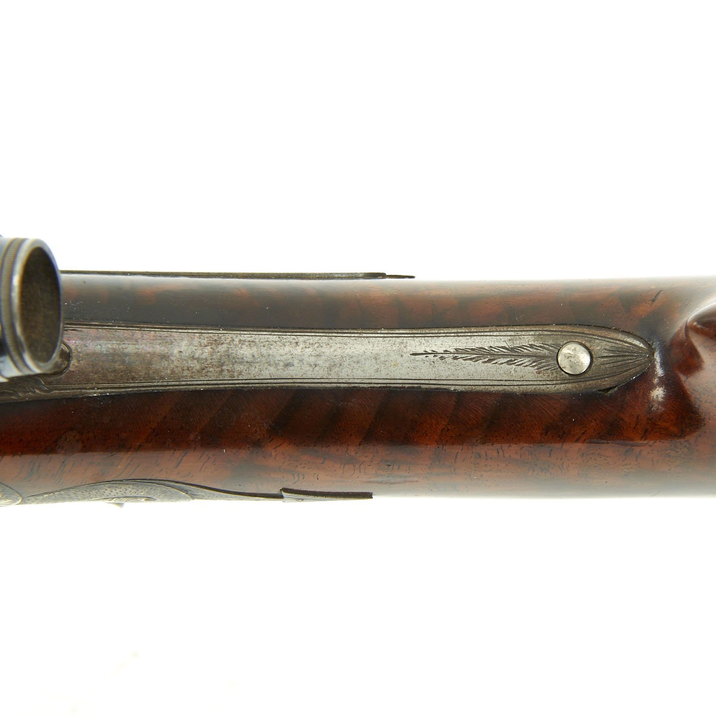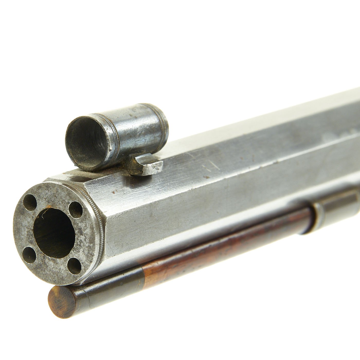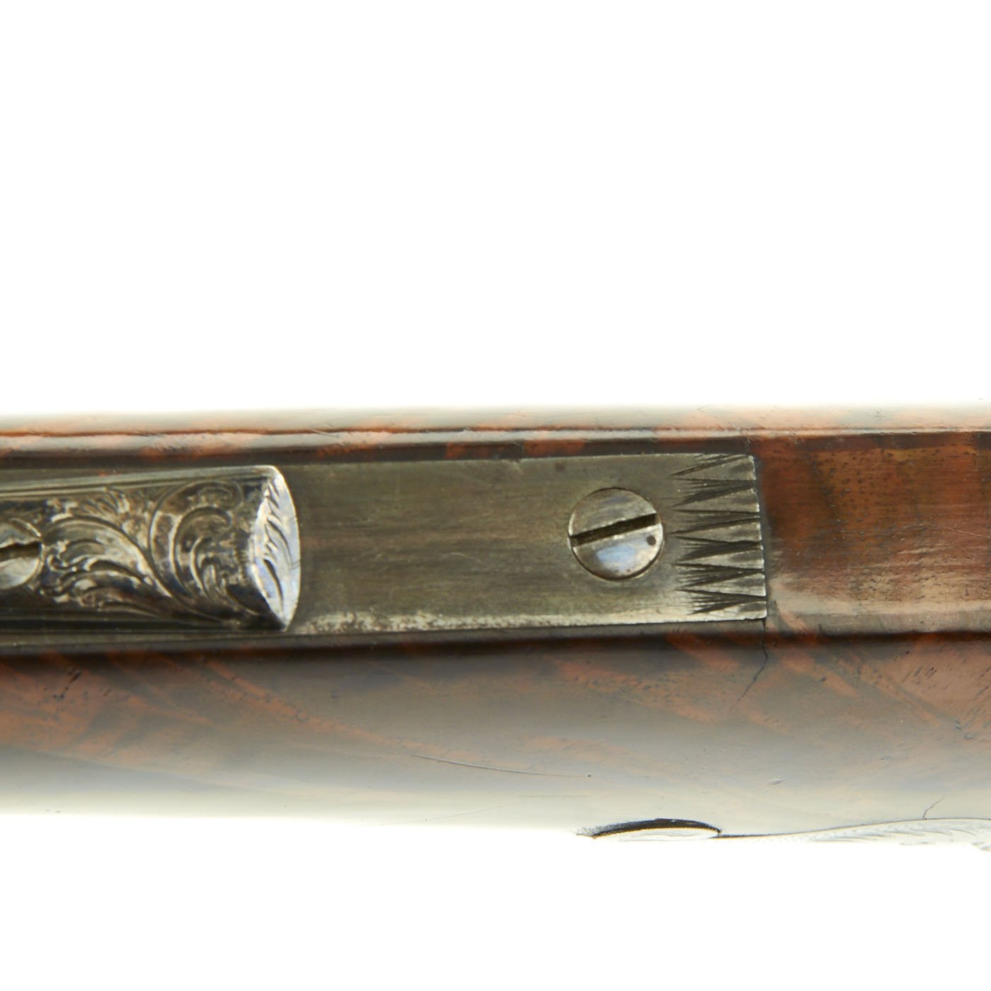 The Rifle measures 42" in overall length, and was very recently discovered in a very old American collection in a Southern State. It has been suggested that this particular rifle is the BEST CONDITION example known to exist and also of the highest Quality. The rifle is simply in excellent condition, with a fully functional set trigger lock, and a bore that looks like it may have never actually been used. It really is like a mirror. There is only the smallest amount of powder burn around the cap bolster.