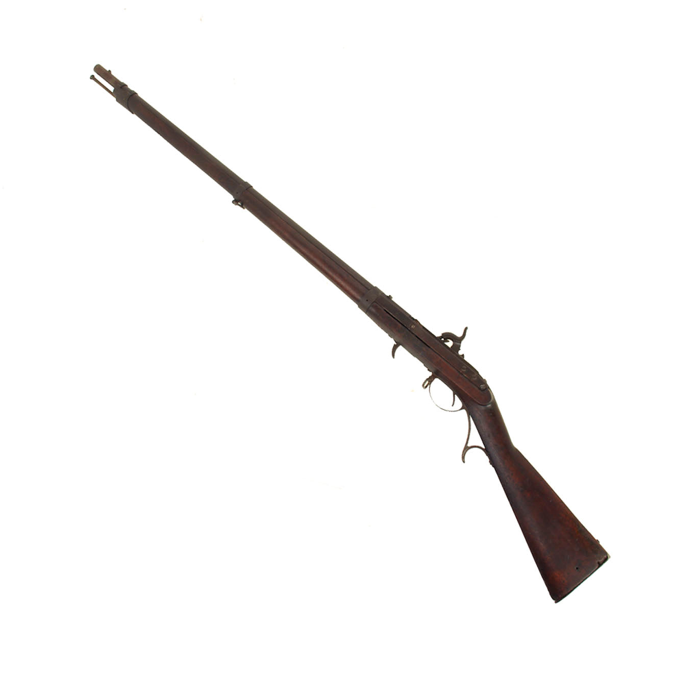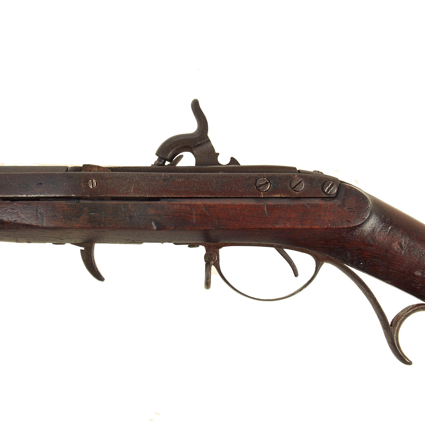 Original Item: Only One Available. This is really a Peach! This is probably the first time we have handled one of these very early breech loading rifles. The Harpers Ferry Model 1819 Hall rifle is a single-shot breech-loading rifle designed by John Hancock Hall, patented on May 21, 1811, and adopted by the U.S. Army in 1819. Due to how the breech block itself was loaded, it is also considered something of a hybrid breech and muzzle-loading design, like a percussion revolver. It uses a pivoting chamber breech design and was made with either a flintlock or percussion cap ignition system. The years of production were from the 1820s to the 1840s at the Harpers Ferry Arsenal.