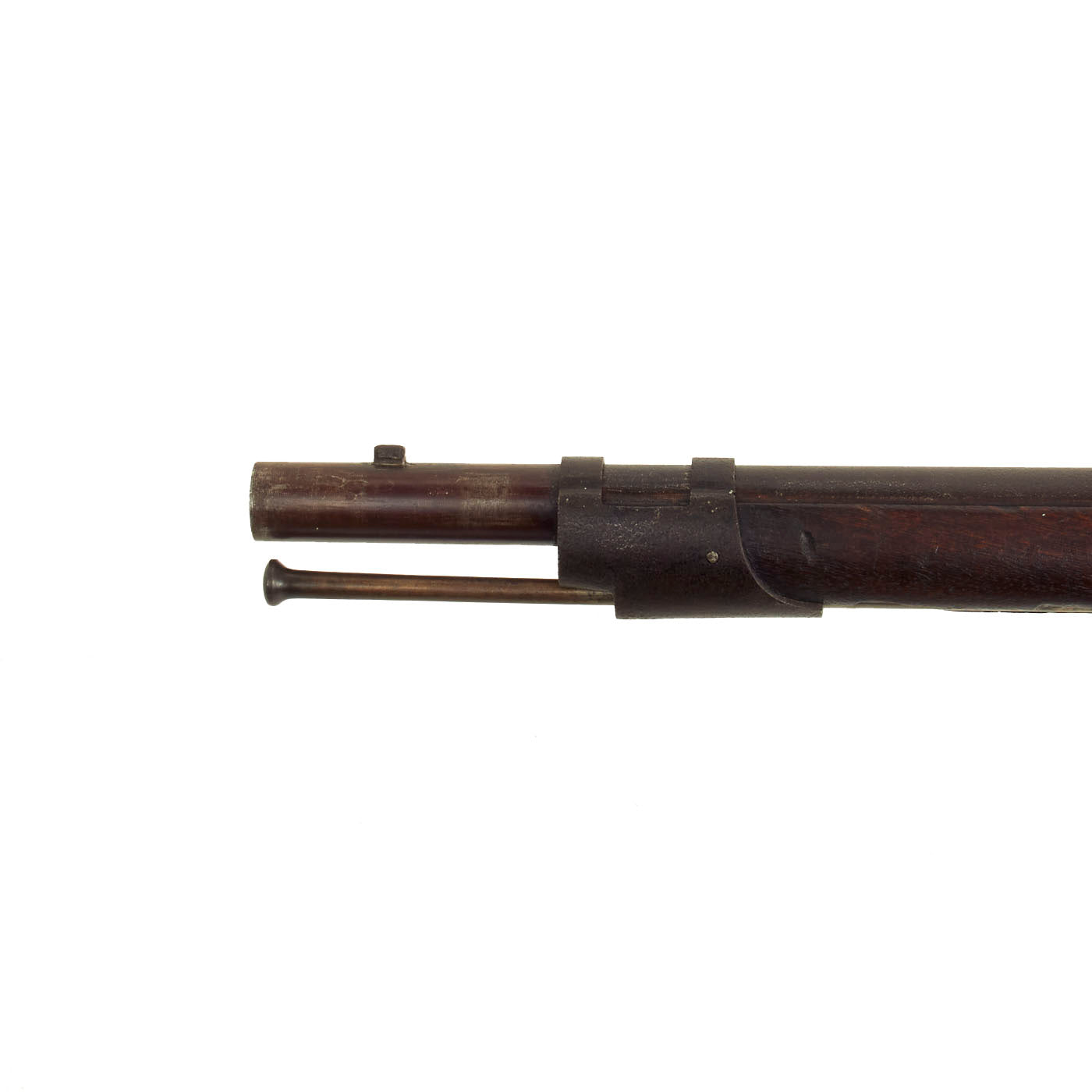 The .52" bore of the barrel is in very good condition, showing strong lands and grooves with a partly bright finish. There is some light fouling and oxidation in the grooves, as too be expected during the days of black powder. Of interest is that the rifling stops about 1 1/2 inches from the muzzle, which was part of the design, and seen both on the original flintlock and percussion examples. These were originally produced with for a .525" ball when in the early Type I flintlock design, with some later examples being in a larger .69" caliber.
