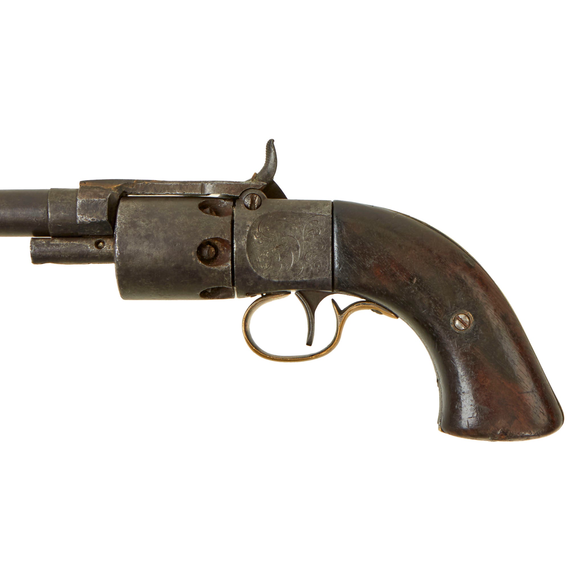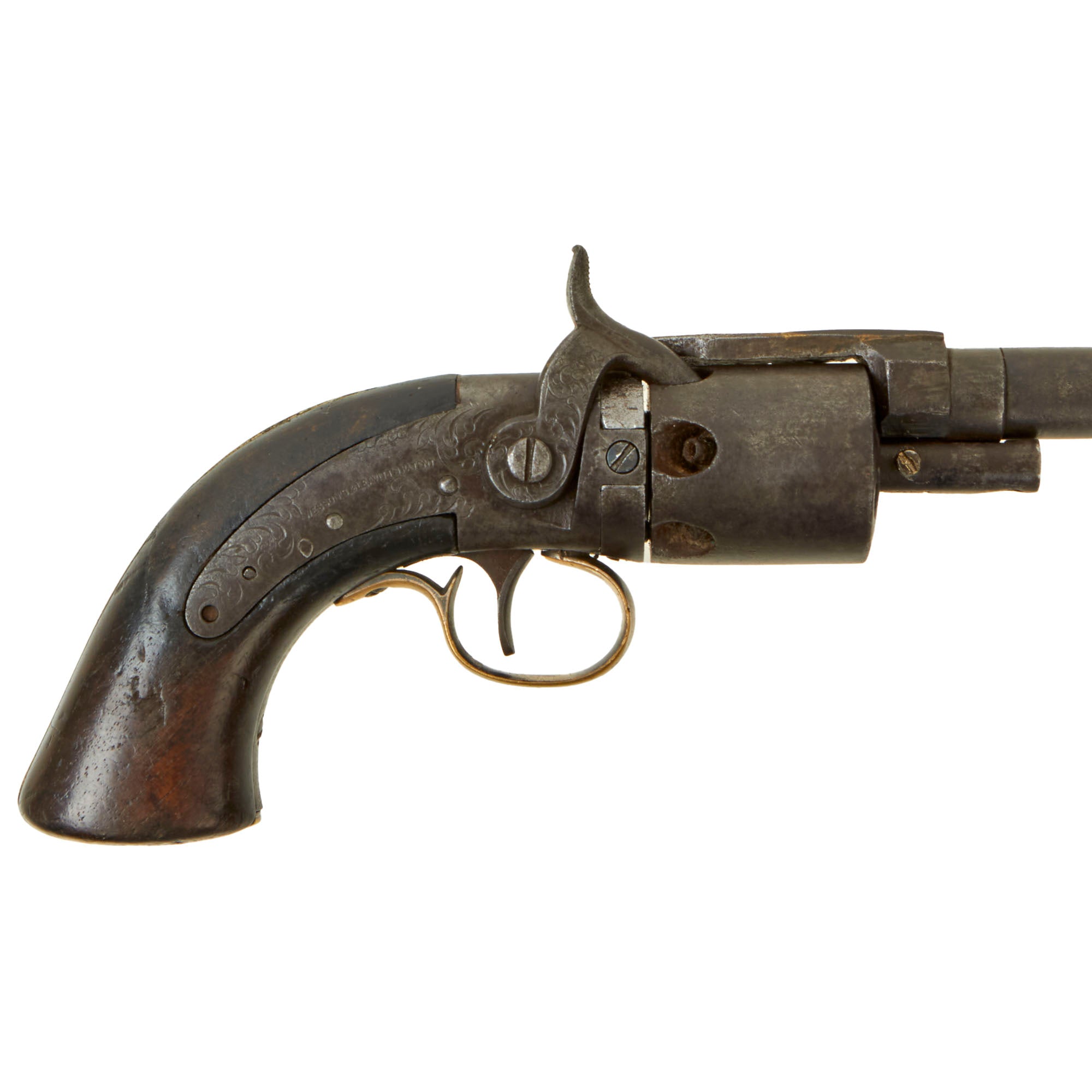 Original Item. Only One Available. Now this is a REAL piece of firearms history! Introduced by the newly incorporated Massachusetts Arms Company in 1850, the Wesson & Leavitt Patent percussion revolvers were the first real competitor to Samuel Colt. These were produced in a larger .40cal "Dragoon Model", and the smaller .31cal "Belt Model" revolvers, which is what we have here.