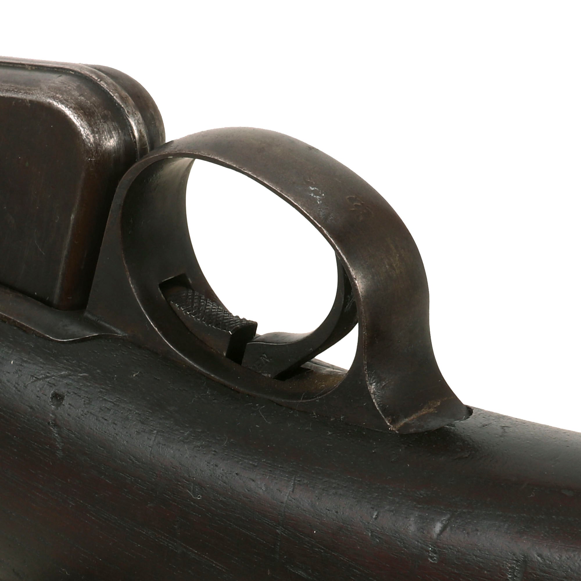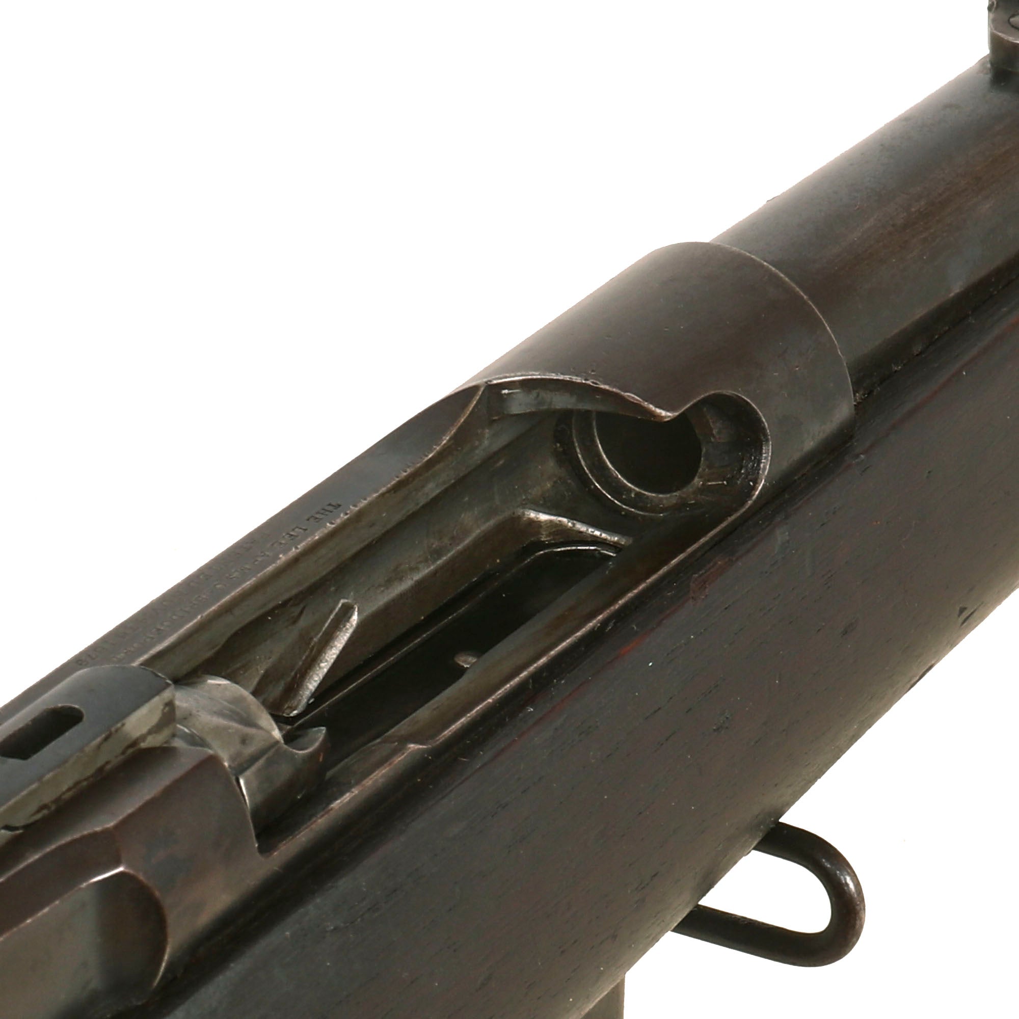 To the right of these the top of the receiver is stamped with serial number 543, which is also consistent with the 2nd order placed by the Navy for these rifles, which had the serial number range of approximately 400-1000. There is also an HN inspection stamp at the front of the magazine well, for government inspector Henry Nettleton.