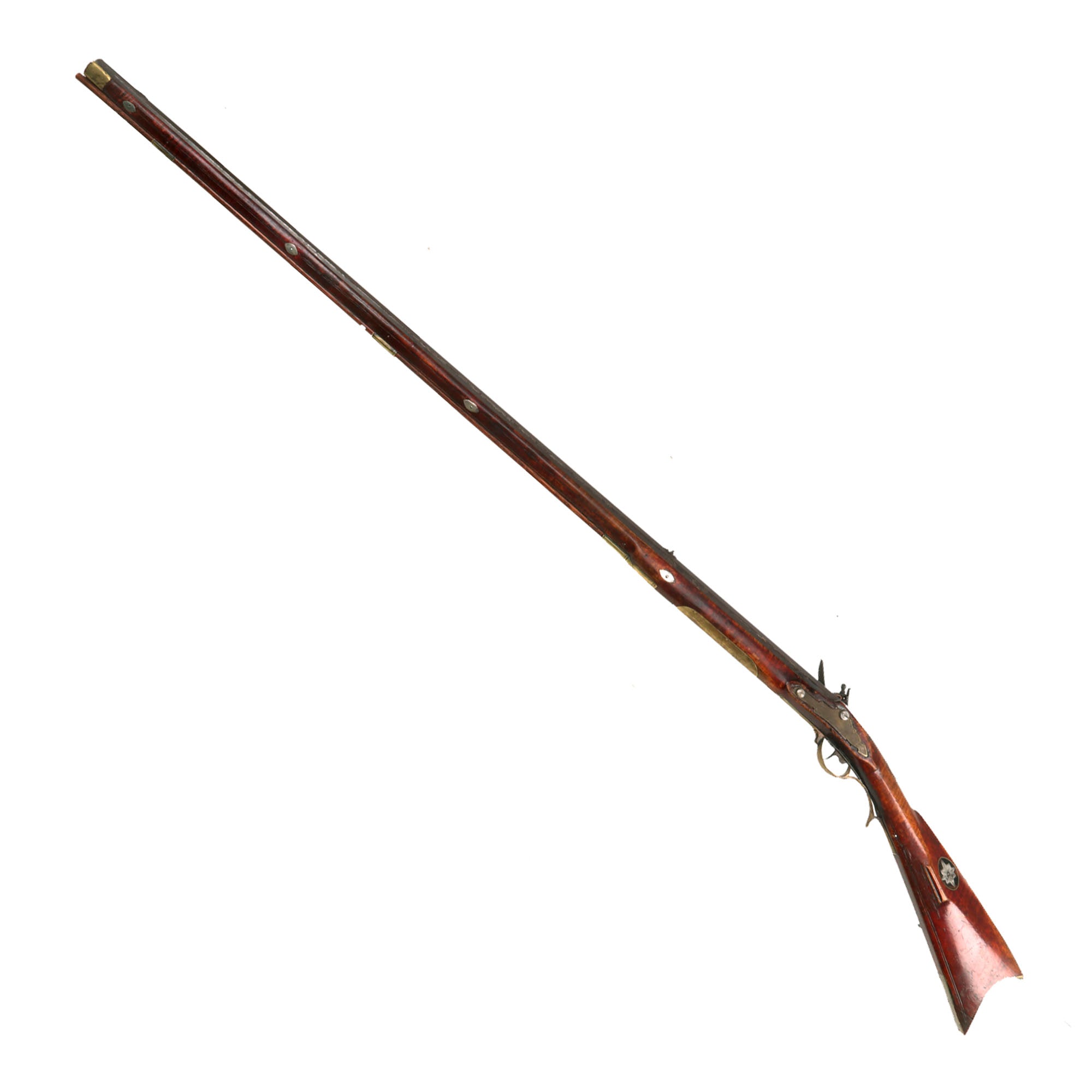 Original Item: One-of-a-kind. Well this is a real treat! This is a wonderful late 18th Century U.S. "Pennsylvania" Long Rifle, sometimes called a "Kentucky Rifle". The thin stock with a gently curved butt is gives a shape of one of the most elegant weapons of the 18th Century. The Eastern Pennsylvania area had been originally been settled by immigrants from the German States, as well as those from nearby Moravia in what is today the Czech republic. The guns produced show the unmistakable influence of Central European firearms. The style then spread Westward, and eventually made its way down to the Ohio River valley into the Kentucky area.