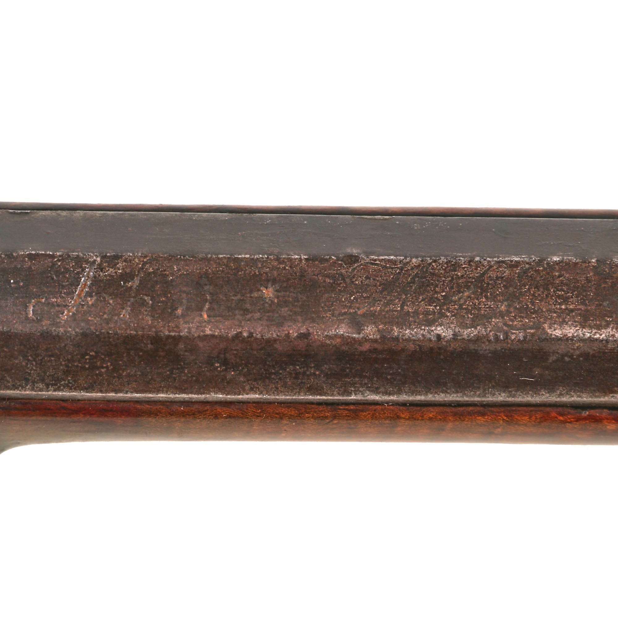 This incredible example is signed on the top of the barrel John * Moll, who operated in the Northampton and Lehigh county areas of Eastern Pennsylvania, in the late 18th and early 19th centuries. Johannes Moll, the Moll family patriarch, first appeared on the tax assessment of “Northampton Town” (Allentown) for the year 1764, and his son (John Moll Sr. / II) would take over the business, and we believe this rifle is from the second generation. The family would go on to produce many other famous gunsmiths in the area. To see a nice list of all the members of the Moll family in the Lehigh / Northampton area, please see this lovely page at the Kentucky Rifle Foundation website: Northampton - Lehigh Gunsmiths. You will notice there are SEVEN well-known gunsmiths from the Moll family.