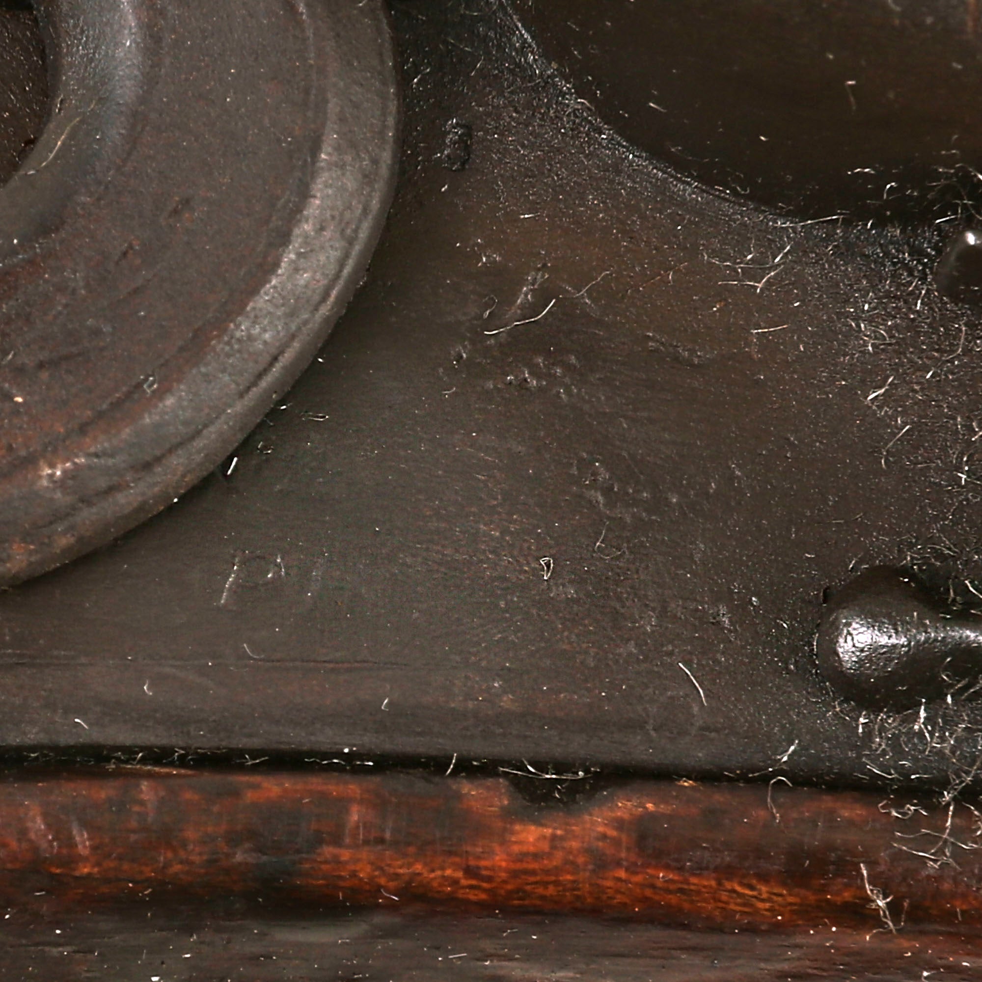 Condition of the rifle is very good, showing some old repairs to the stock around the lock and breech, but no major damage. The finish shows some of the original reddish varnish used during the late 18th / early 19th century, though other areas have become worn, and were possibly refinished. We have left the rifle untouched except for a quick wipe down to preserve its long history. We checked the lock, and it is functional, but does not appear to have a half cock position. The lock screws and tang screw all appear to be recent fabricated replacements, and it is very possible that some components inside the lock were replaced and/or serviced. There is a display replacement cleaning rod under the barrel, which is fitted with a simple notch rear sight and nickel blade front sight.