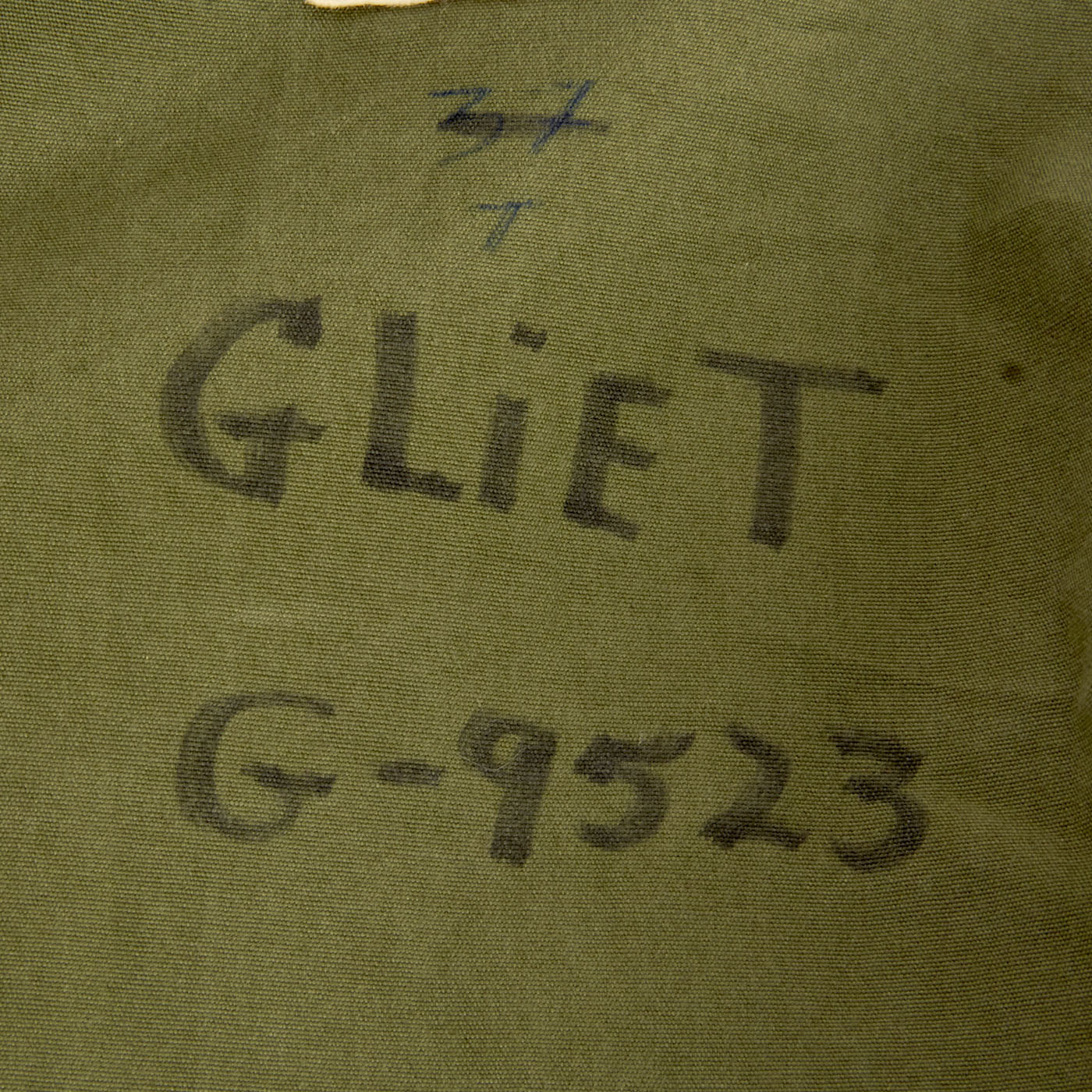 The jacket is in very good condition, complete with all tags and buttons. Size is marked “Medium-Short”, and the DSA contract date is 1964. The original owner’s name, Gilet, is written inside the coat in two places, along with a partial service number. We have not conducted any research on the original owner, but there is enough here to get started and be put in the right direction possibly if one so desired.