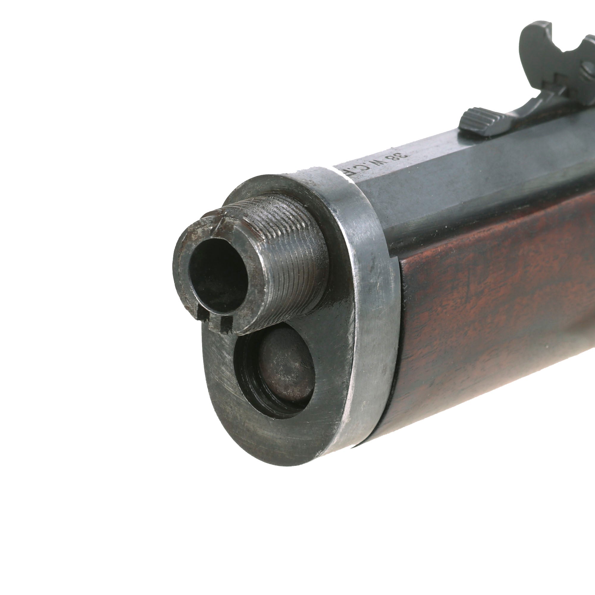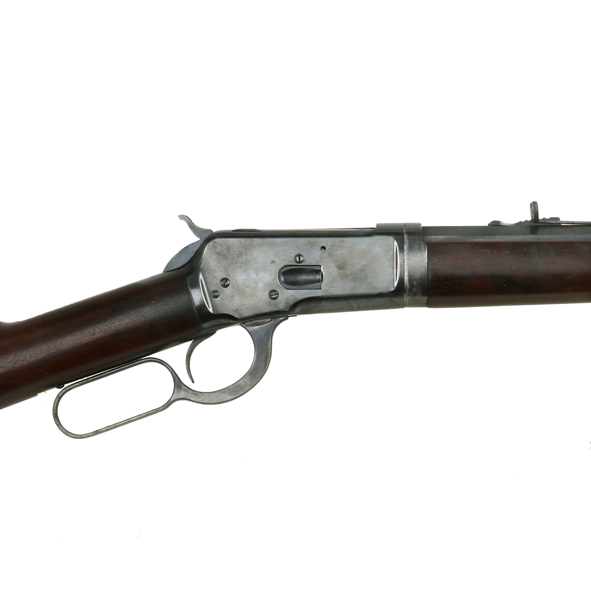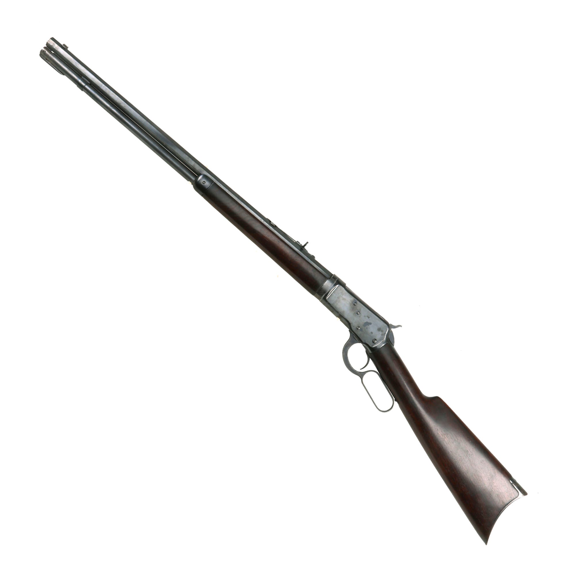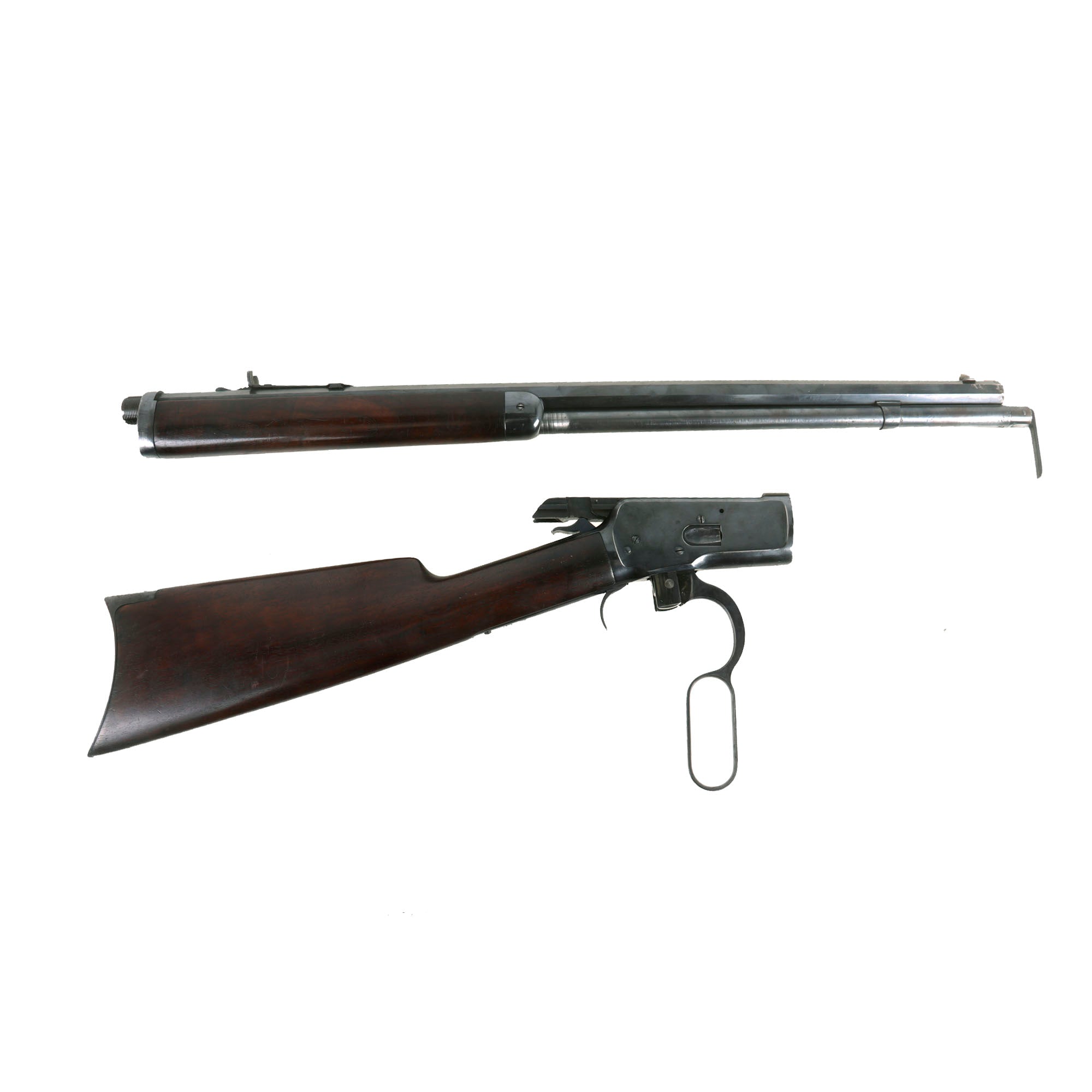Original Item: Only One Available. This is something that we have never had before! The Winchester Model 1892, known as "John Wayne's favorite gun", was designed by John Browning to be a smaller and lighter version of the Model 1886. As part of this, it was available in a rarely seen "Takedown" version, which would easily fit into a smaller case for transportation. The design features a magazine tube that unscrews from the front, and then the barrel can be removed. The barrel is held in the receiver by interrupted threads, so it only needs to be turned 90 degrees to be unlocked. Really a design ahead of its time!