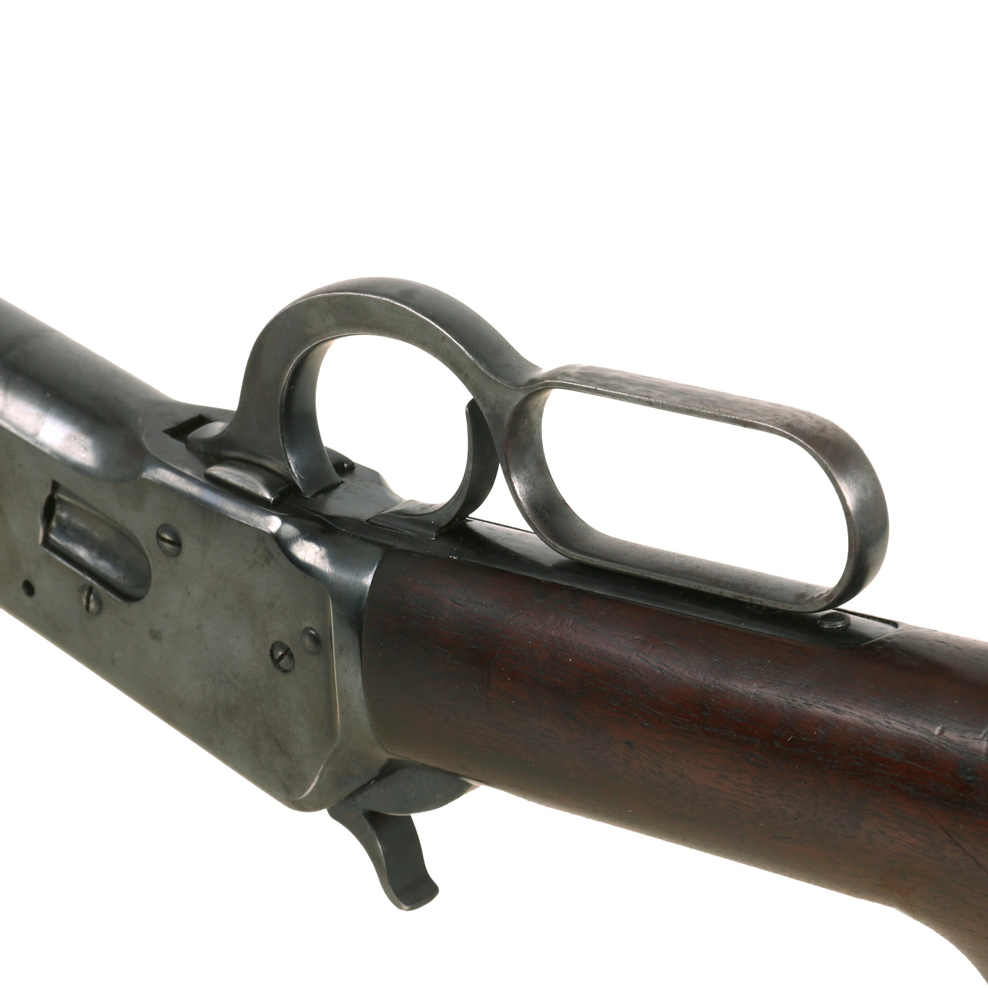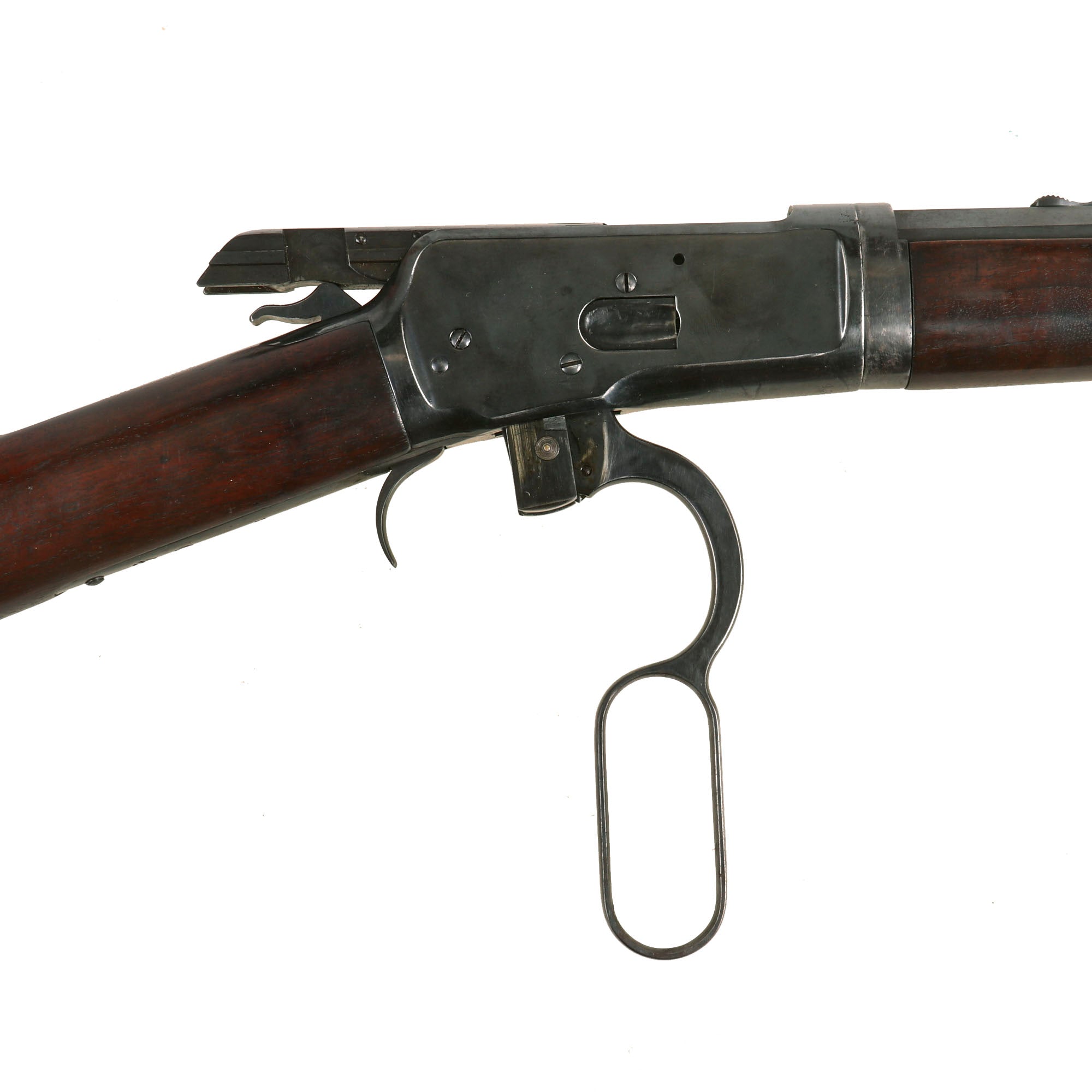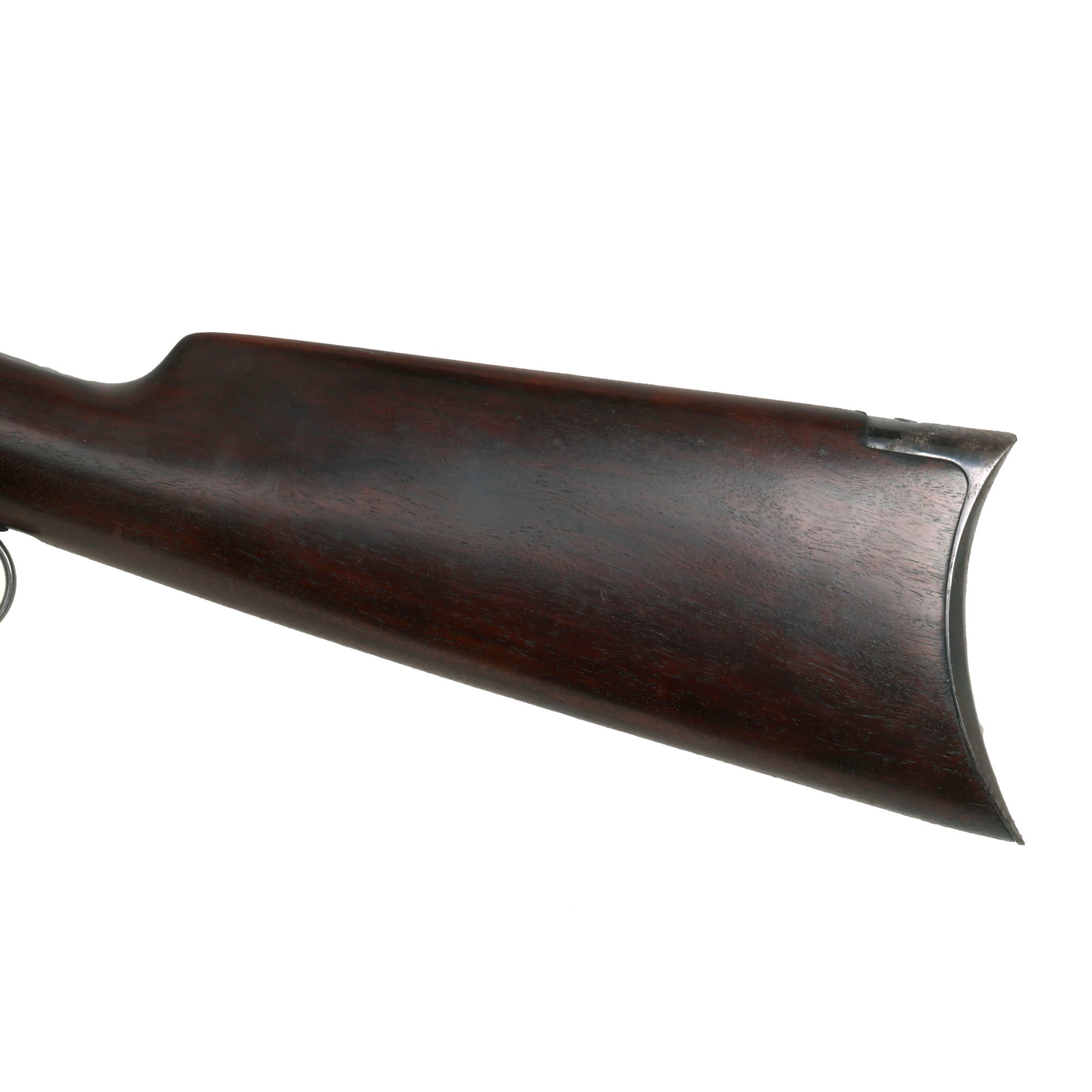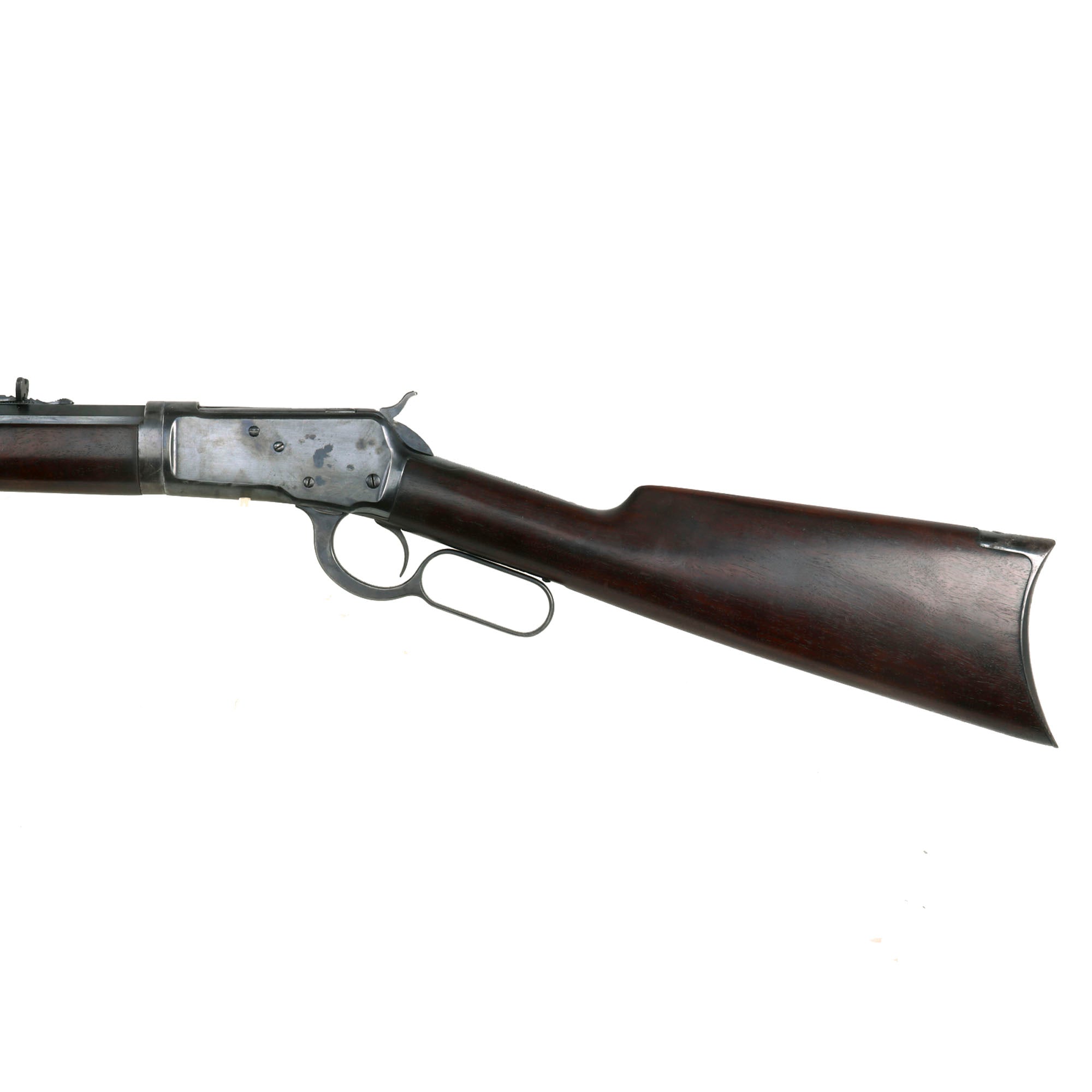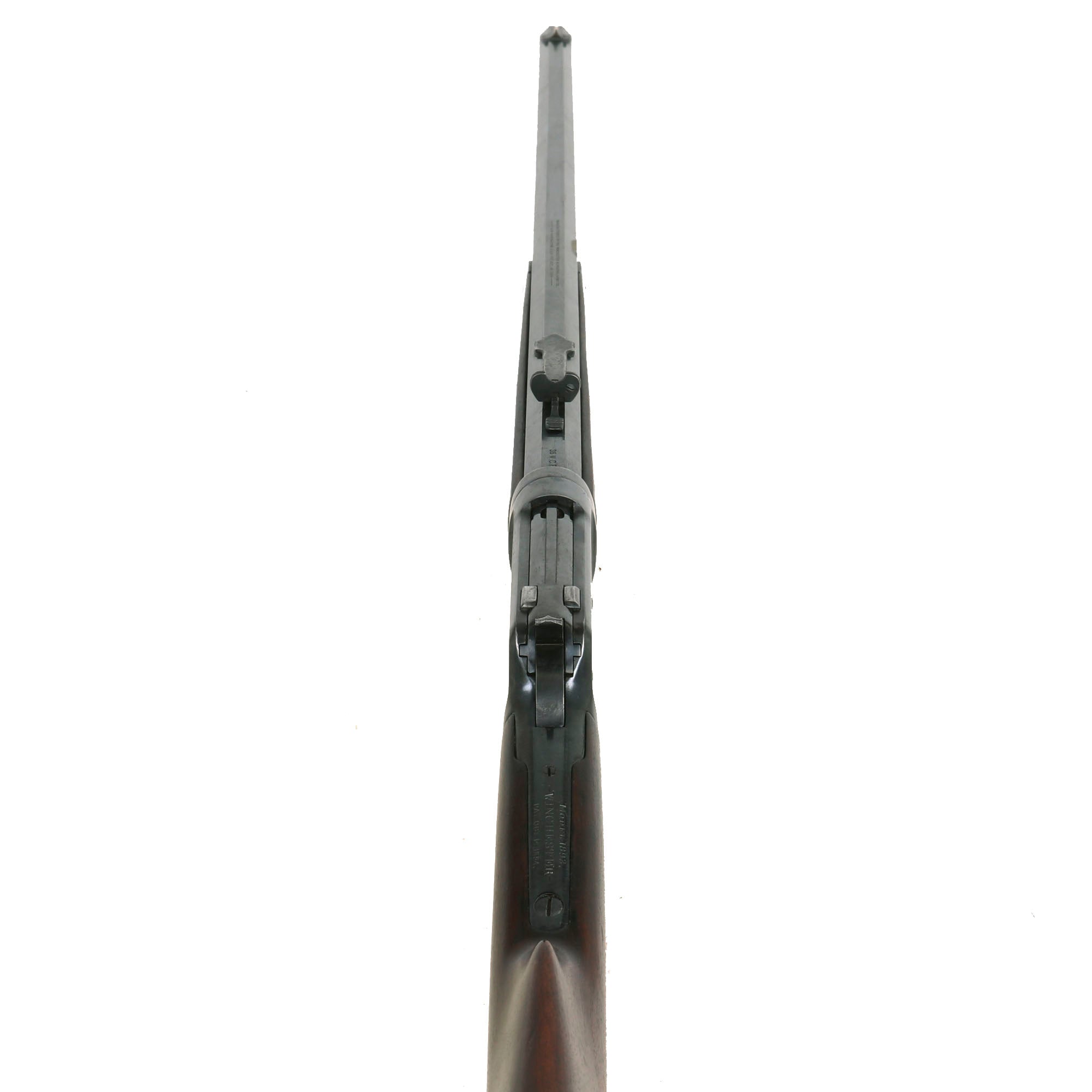 Original Item: Only One Available. This is something that we have never had before! The Winchester Model 1892, known as "John Wayne's favorite gun", was designed by John Browning to be a smaller and lighter version of the Model 1886. As part of this, it was available in a rarely seen "Takedown" version, which would easily fit into a smaller case for transportation. The design features a magazine tube that unscrews from the front, and then the barrel can be removed. The barrel is held in the receiver by interrupted threads, so it only needs to be turned 90 degrees to be unlocked. Really a design ahead of its time!