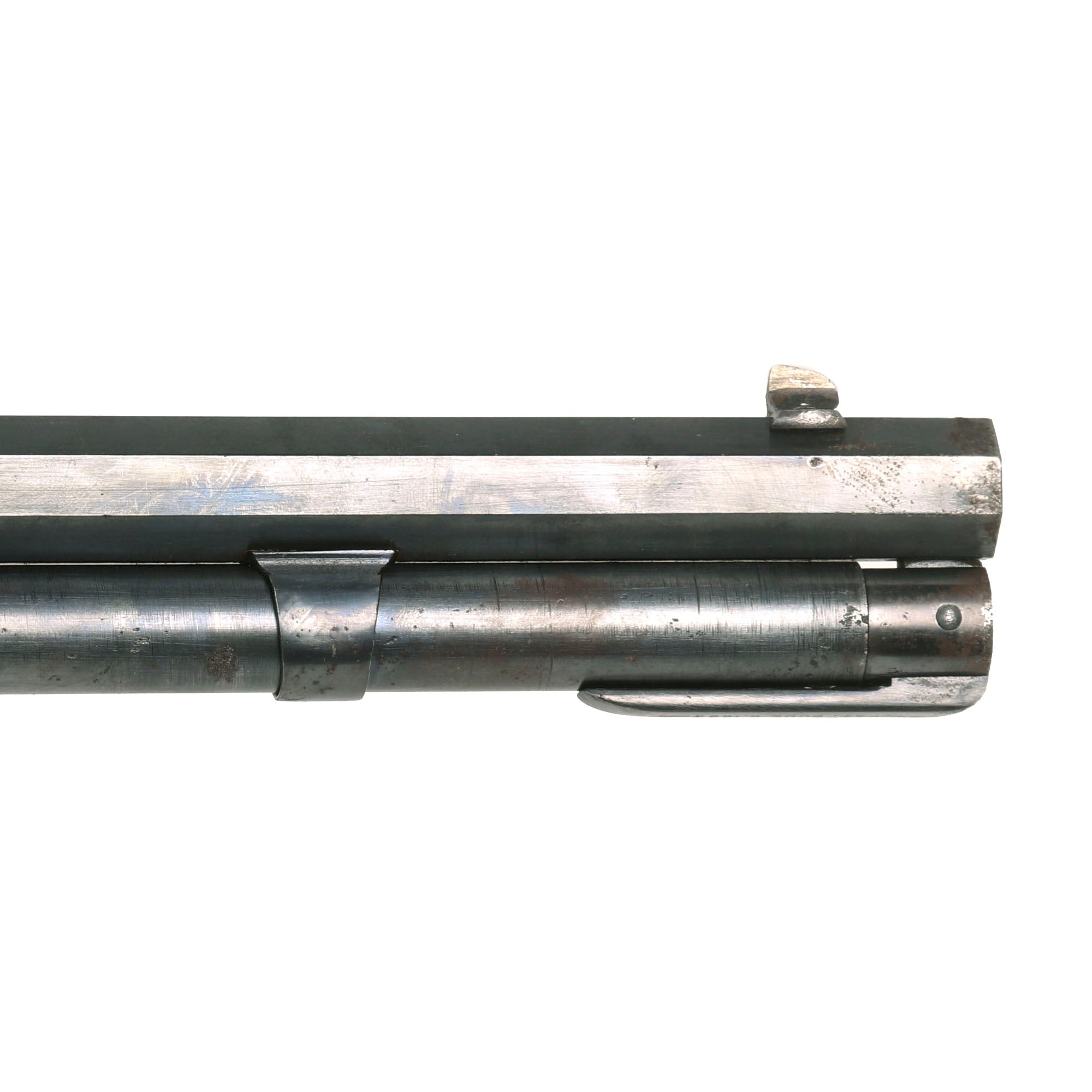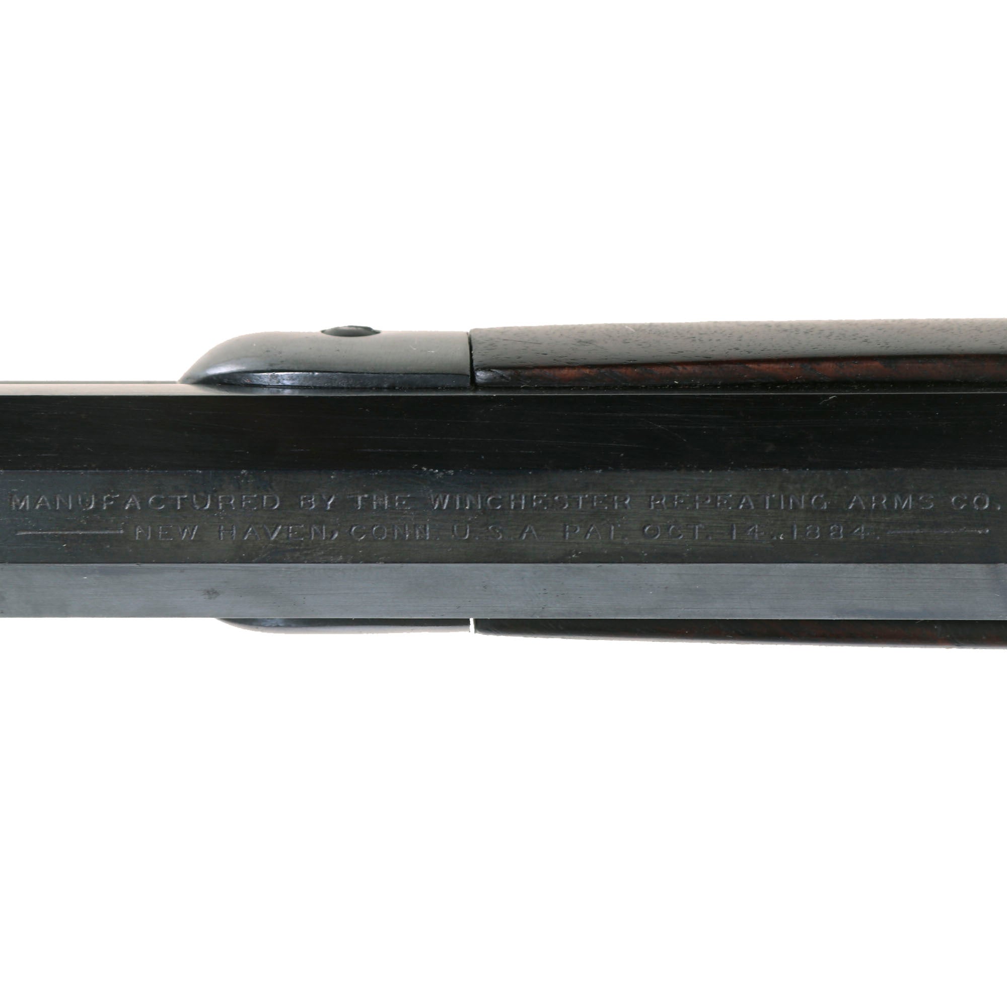 This excellent example of a Winchester Model 1892 Takedown Rifle is in the popular .38-40 caliber (Marked 38 W.C.F above the chamber) with a desirable 24 inch octagonal barrel and full-length magazine tube. Features the classic front sight with a nickel blade and the iconic "buckhorn" adjustable rear sight. Serial number 43295 denotes year of manufacture as 1894, the third year of production.
