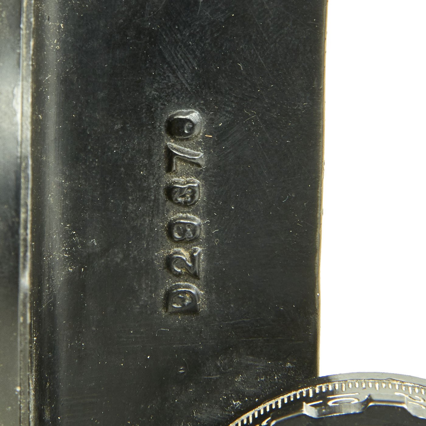 This fine example of the M1 scope is fully marked, with the black finish almost completely intact, with just some wear around the edges. The mounting bracket dovetail is still intact, and mounted on the bottom of the sight. The numbers on the range and traverse adjustments are all still clear, and the left side of the sight still has the manufacturer’s markings on a data plate: