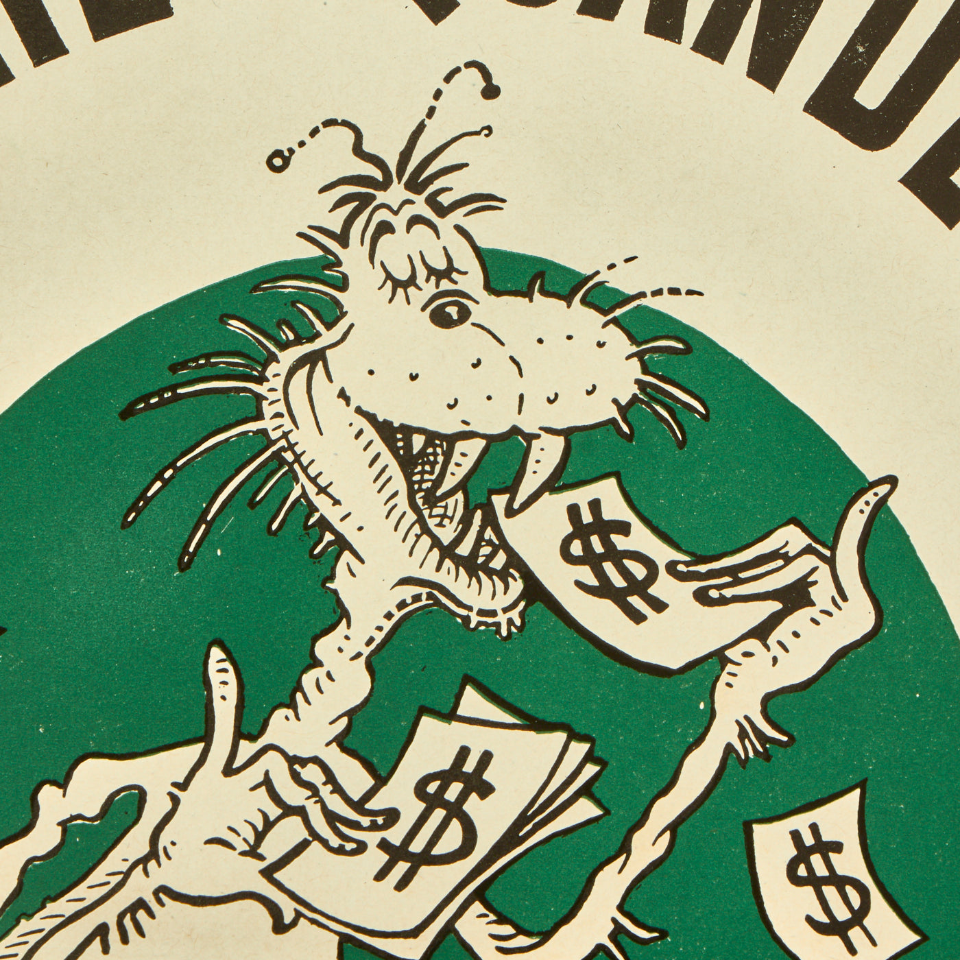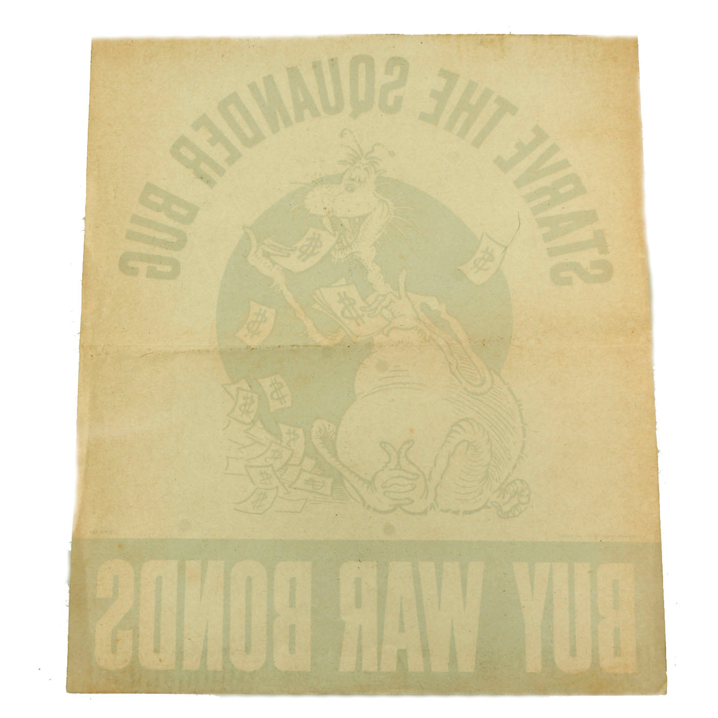 Original Item: Only One Available. These posters with the early artwork of Dr. Seuss (Theodor Seuss Geisel) featuring his rendition of “The Squanderer Bug” are some of the absolute rarest of U.S. Posters of World War Two. This particular poster dates from 1943, and measures approximately 11 ½” x 15 ½”. The Poster comes in excellent original condition, with great color an only minor wear. No tape or pinhole marks are on the poster at all. One minor crease across the center of the poster, which cross slightly over the original shipping crease. This is an exceptionally rare poster, and in excellent condition to boot!